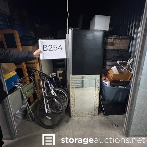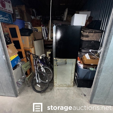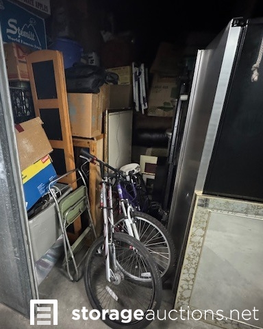 Bicycle, Refrigerator, Suitcases, Household Furniture, Artwork, Bed Frame, Boxes, Plastic Totes, Vinyl Records, Couches, File Cabinet, Chairs, Beach Chairs.