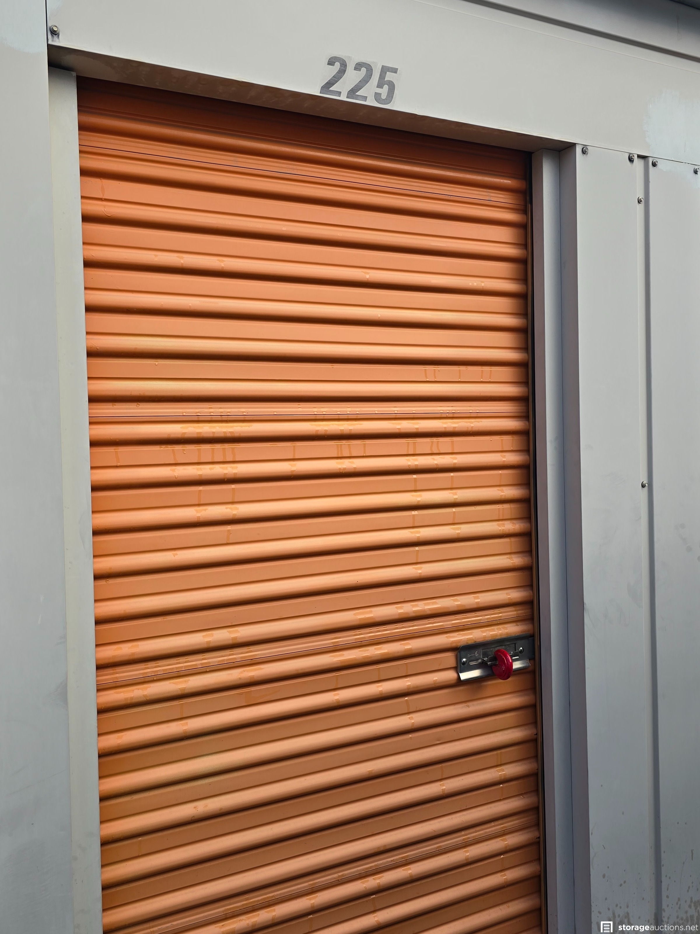Additional Terms: **Tenants bidding on their own unit do not alleviate their debt obligation and will still owe the full balance due on the unit.** 1. Auction units must be paid in Cash Only at the facility where the unit is located. 2. Cleaning Deposit paid in Cash and only returned after approved inspection of unit. 3. Auction Buyer needs to fill out facility buyer's agreement. 4. Auction buyer must show ID or have letter stating buyer's representative name and they must show ID to gain access to unit. 5. Auction Buyers must contact the storage facility office where the unit is located within 72 hours after the auction ends. 6. Buyer must clean unit out during office hours only. No gate access code will be given out. 7. Contact facility immediately when auction ends, to make arrangements to pay for and pick up the unit. 8. You must have a Paid Invoice in order to pick up unit. 9. You must be 18 years old to bid. 10. You must provide a valid photo I.D. to the Site Manager. 11. You must bring your own lock to secure the unit. 12. You will not be allowed to enter the storage unit or touch any items prior to bidding. 13. Sales are final and bids are for the entire unit. 14. The Auctioneer has final say on all issues, including whether to refuse a bid if a bidder has disrupted an auction or violated any rules. 15. Immediate cash payment is required when you purchase a unit. 16. You have 72 hours to remove the contents entirely and broom sweep the unit. 17. A $50 refundable cleaning deposit is also charged on every unit you buy. 18. You must remove all of the contents and trash from the unit and facility grounds. 19. You are not allowed to use the dumpsters on the facility property. 20. Please advise the manager once you have completely emptied the unit. The manager will inspect that the unit is clean and then refund your cleaning deposit. 21. Smoking is prohibited on storage facility properties. 22. No Pets allowed at facility 23. Respect the Property, Managers, Tenants and other Buyers at all times.