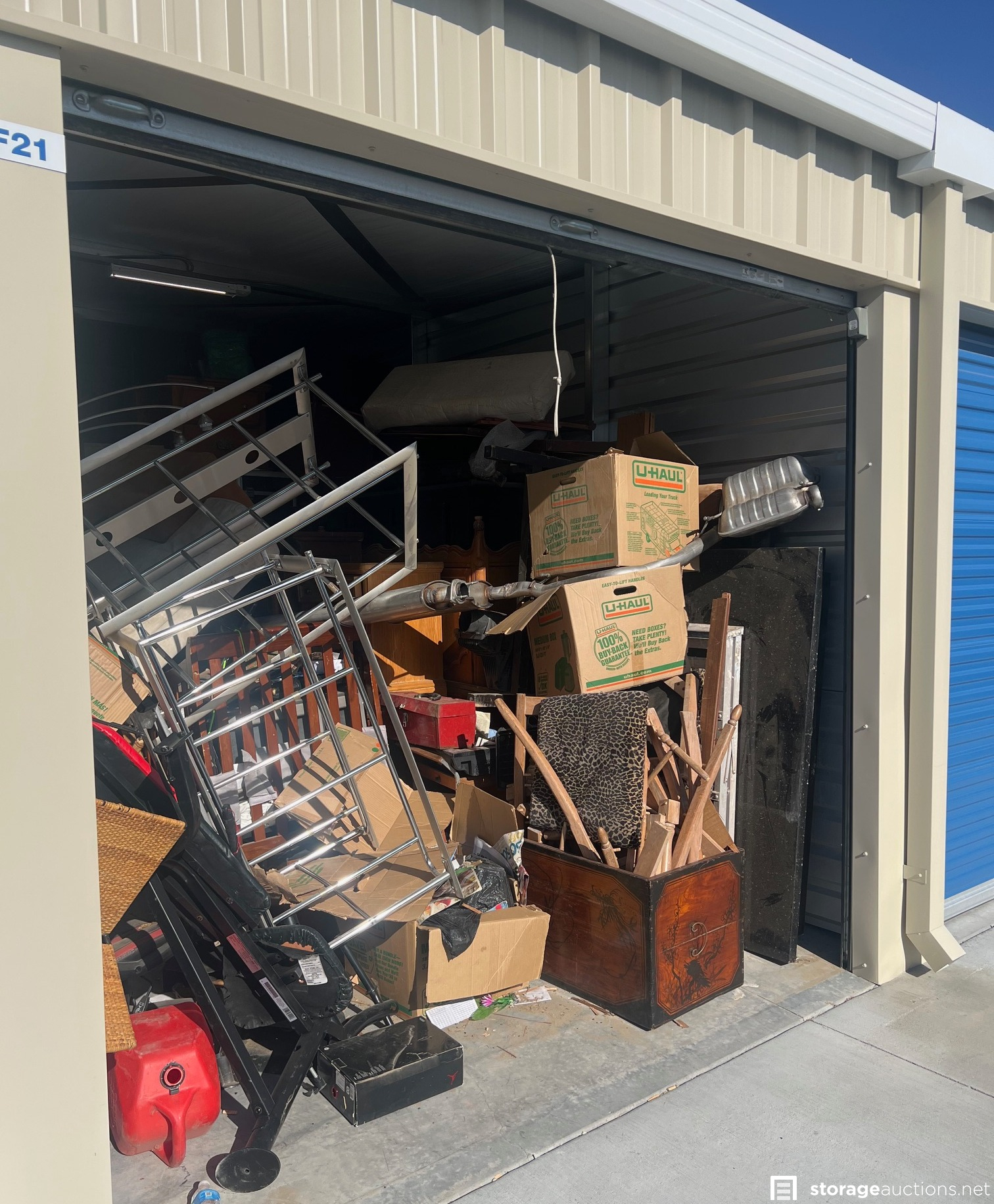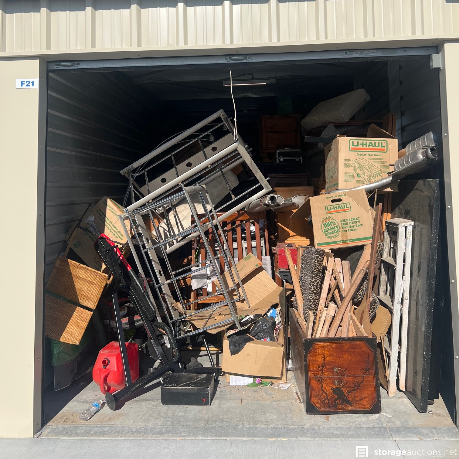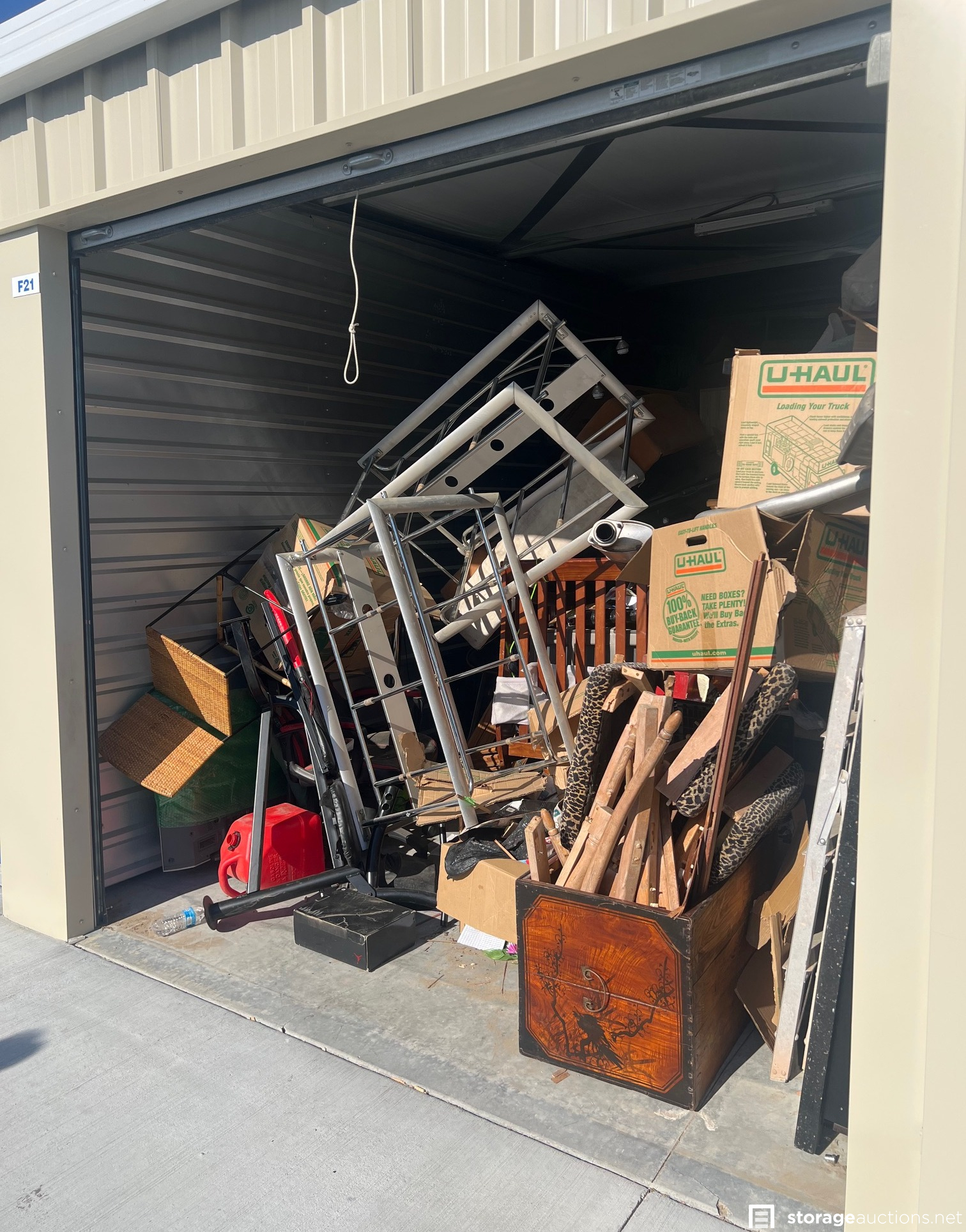 Additional Terms: **NOTICE - Defaulted tenant has legal right to cure account, thus cancelling the auction, up until cash payment is received from the winning bidder.** Buyers must be 18 years old to bid and pay winning bid. Winning bidder must pay within 48 hours in person. Cash or money order only. $200 deposit. If paying with money order, deposit must be on a separate money order. Unit must be cleaned out within 72 hours after payment. Deposit will be returned after unit is cleaned out. If unit is not cleaned out after 72 hours, unit will be considered abandoned and deposit will be kept by the storage facility. Must have a paid confirmation and valid photo ID to pick up contents of unit. All sales are final, all sales are AS IS for the entire content of unit, unless otherwise specified. Items containing personal information found with in unit must be returned to the office upon clean-out of the unit. No dumping, No pets allowed. All auction unit(s) are subject to cancellation by the storage facility.