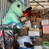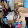 Large stuffed unicorn (1), micelleanous boxes, kitchenware, crafting items, art pieces, holiday decor, clothing, bags, suitcase, swiffer, laundry baskets, totes.