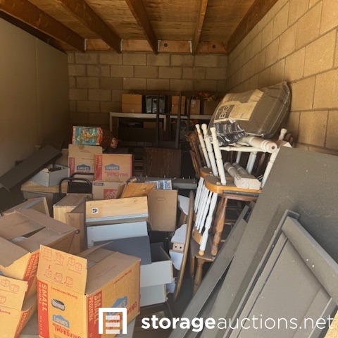 Additional Terms: VERY IMPORTANT - READ BEFORE YOU BID: -ALL ALCOHOL WILL BE REMOVED AFTER SALE -Contact the facility immediately when auction ends to arrange payment for and pick up of the unit contents - You will not be allowed to enter the storage unit or touch any items prior to bidding -StorageAuction.net has final say on all issues including whether to refuse a bid if a bidder has disrupted an auction or violated our Terms of Use PAYMENT AND TERMS: -Buyers must be at least 18 years old to bid -You must have a Paid Invoice in order to pick up unit contents -If you have an Unpaid Invoice, please update your credit card in your account and click Pay Now to generate a Paid Invoice -You must provide a valid Photo I.D. to the Site Manager -A refundable cleaning deposit may also be charged -Sales tax will be charged at the facility's office at the time of purchase unless a copy of a resale license is provided. -Immediate payment is required prior to gaining access to the unit -Sales are final and bids are for the entire unit -You must bring your own lock to secure the unit PICK UP AND DISPOSAL: -You must remove all contents and broom sweep the unit within the required clean-out time -You are not allowed to use the on-site dumpsters -If you would like to rent the unit after the auction, the manager can assist you -Smoking is prohibited on the property -Please advise the manager once you have completely emptied the unit. The manager will inspect that the unit is clean and then refund your cleaning deposit -Do not park in customer parking -No pets allowed at facility -Respect the property, managers, tenants, and other buyers at all times. Please do not show up to the facility with out making the proper arrangements -PERSONAL ITEMS FOUND WITHIN THE UNIT SHOULD BE RETURNED TO THE SITE MANAGER IMMEDIATELY. Thank you!