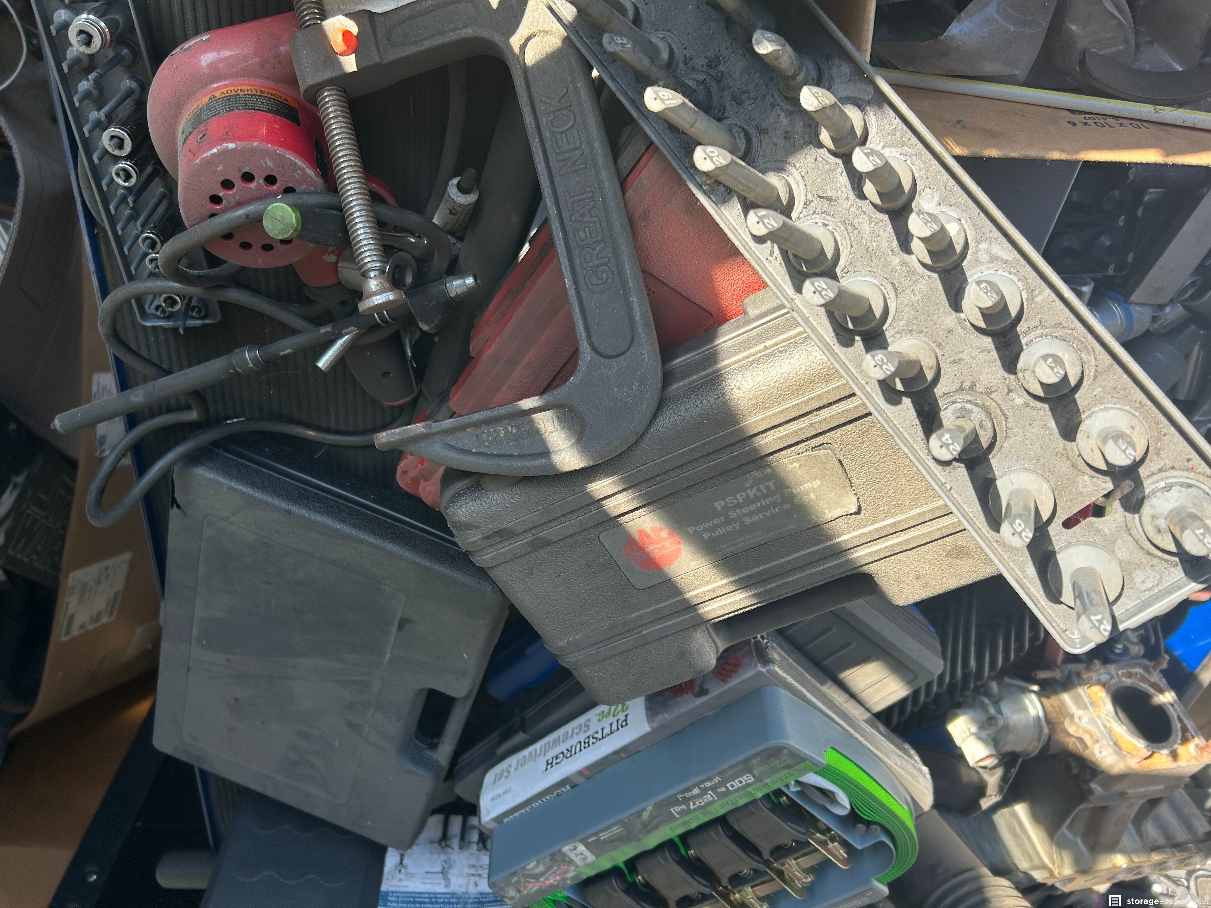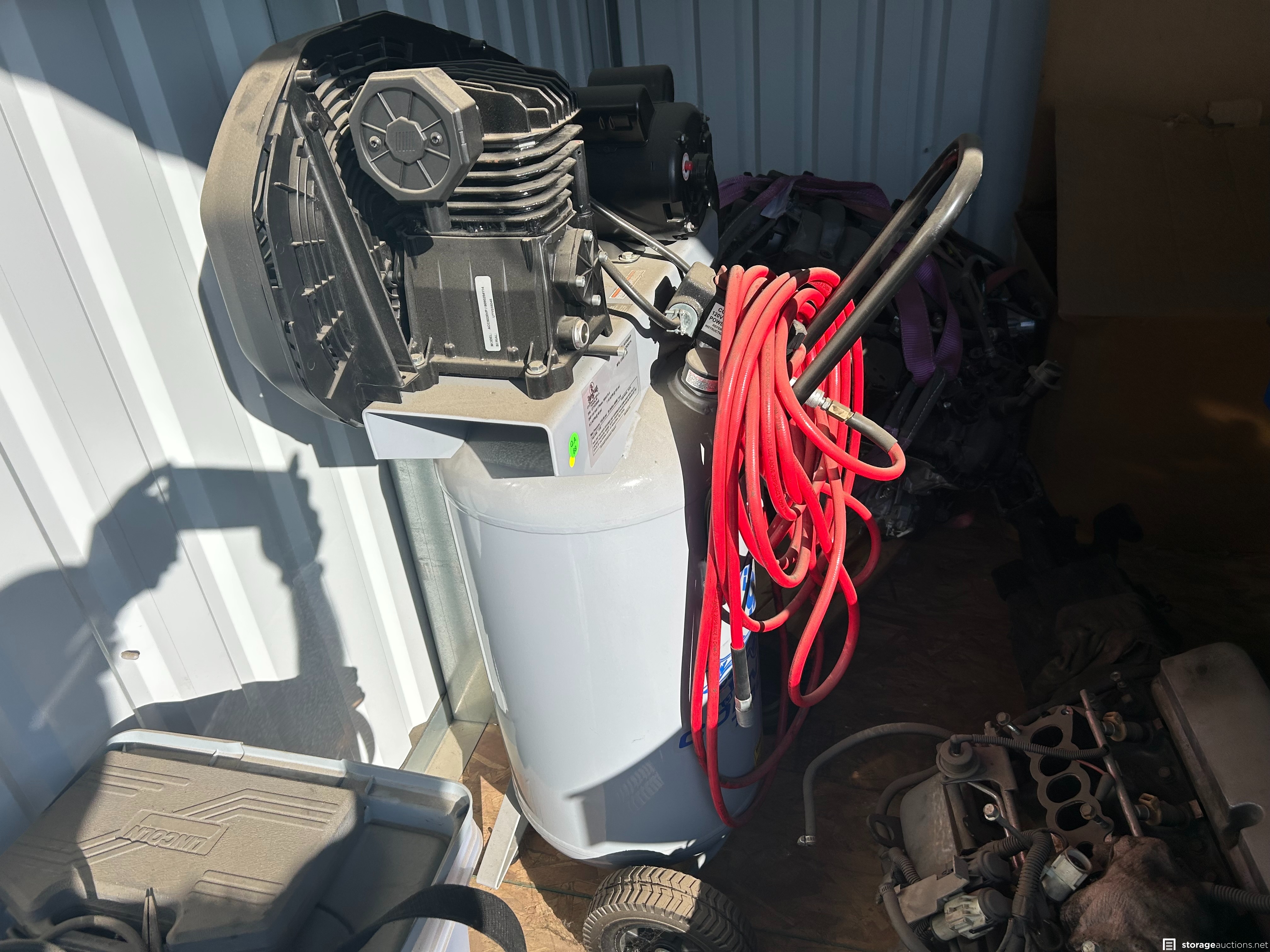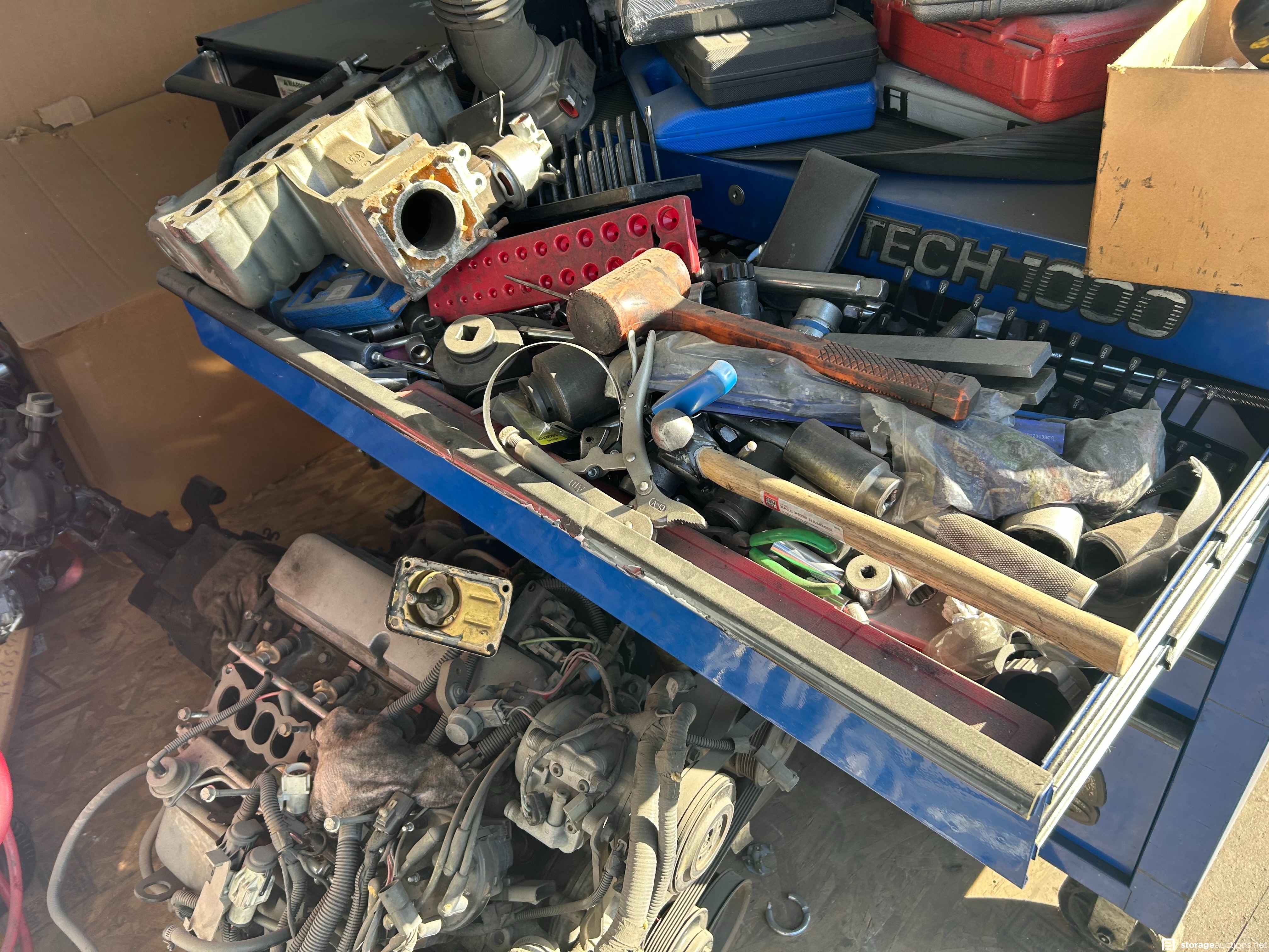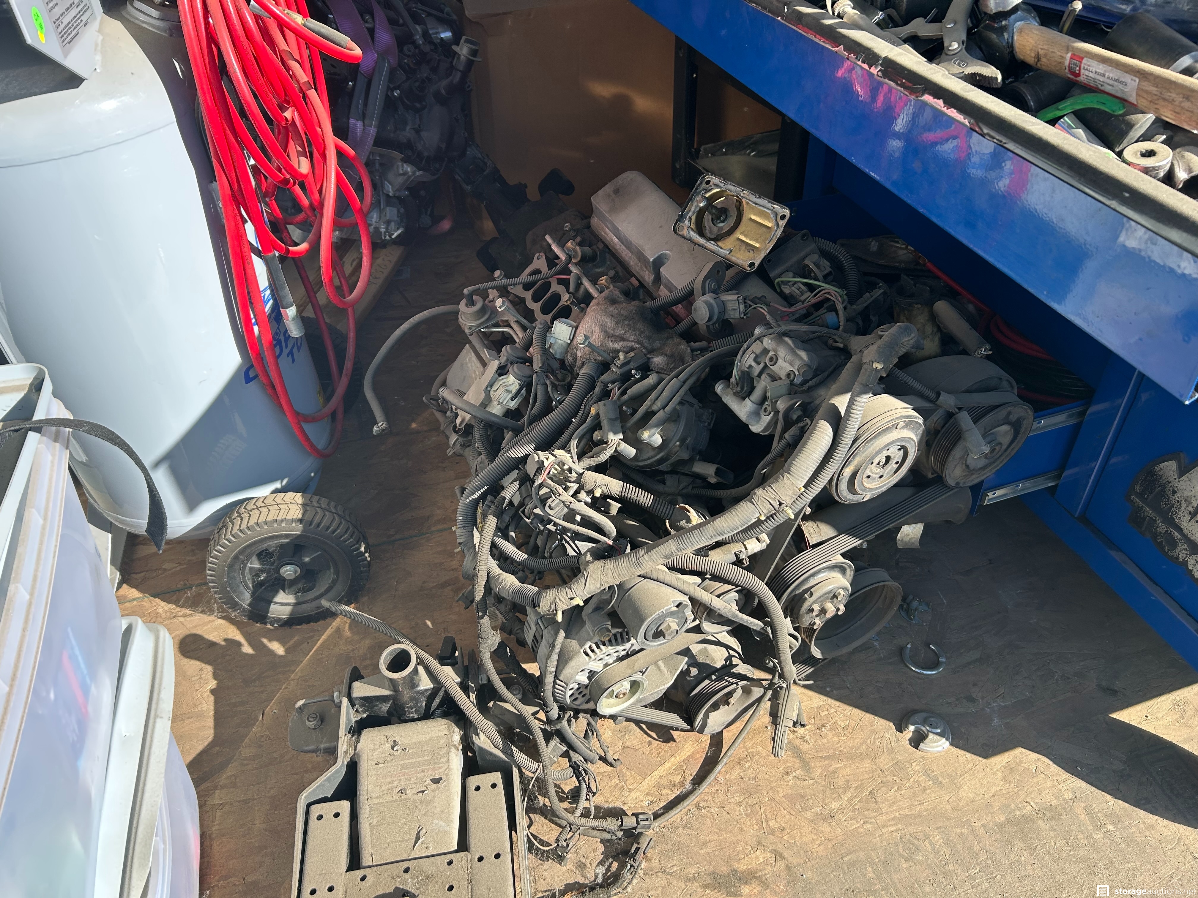 Auto parts, ice chest, wheels and tires, muffler, tools, exercise equip, air compressor, motors, mac toolbox, cornell toolbox, shoes, snap on tools, tool boxes new tools, electric scooter vacuum, totes.