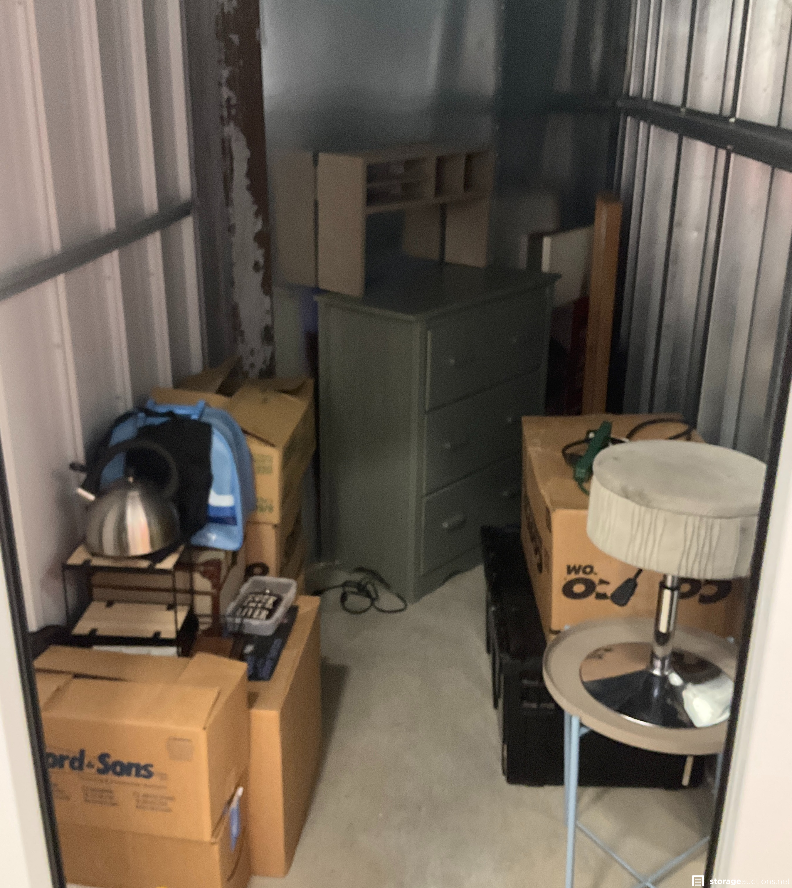 Additional Terms: 1. We reserve the right to refuse service to anyone at any time for any reason. Auctions are public, but do not guarantee that all the members of the public can participate. 2. TERMS: CASH ONLY on award of bid. All units must be paid for immediately no later than 5:00 pm on the day that Auction Bid is accepted. Winning bidder must appear in person with valid ID to pay and arrange for the clearance of the unit contents. 3. At discretion of Auctioneer, a minimum $200.00 refundable cleaning deposit per unit is required. CASH ONLY. The Storage Facility may charge a higher deposit on extra-large units. Do not use the facility's dumpsters for trash. All items must be removed from the premises within 72 hours from winning bid. 4. Bidder agrees, understands and abides by all rules and regulations posted by the facility. The Bidder shall have access to the facility and the unit only during posted office hours 10am to 5pm Monday through Saturday. 5. All units are sold "AS IS, WHERE IS." Storageauctions.net, Facility Owner, Manager, or Agent makes no guarantees as to the contents of units. Box buyers: beware of the possibility that all boxes may be full of trash or empty. If so, they are still yours since unit is sold "AS IS." Newspaper legal ad may not agree with the goods in the unit. Do not speculate on what may be in the units. In accordance to Federal laws we are restricted from selling Alcohol, Tobacco, Firearms, Explosives and Controlled Substances. You are required to surrender these items to the Storage Co. and they will be surrendered to the proper authorities. 6. All sales are final. No refunds, exchanges, or credits of any kind will be made. 7. All personal papers (birth certificates, tax records, pictures, yearbooks, checking account information, etc.) found in storage unit should be returned to the storage company. If any of these terms are unacceptable or offensive to you, do not participate in the sale. 8. Bidder shall be responsible for anyone who is acting on behalf of bidder in any capacity and shall indemnify the storage facility, its Owner, Managers, and Agents, and Employees, etc. for any action whatsoever that may be born in any manner and hereby waive any claims against the storage facility. This waiver and responsibility shall also include any personal property damage, property damage to the self-storage facility, its representatives, employees, occupants and customers. 9. The storage company is not responsible for losses due to fire, theft, vandalism, mysterious disappearances or any other events. Bidder shall provide insurance for losses incurred before, during and after sale. 10. The storage company reserves the right to bid. 11. Storage Company's liability for undeliverable units is limited to monies collected for purchase of unit(s) and cleaning deposit(s) only. The Storage Company will make all reasonable efforts to deliver unit or units to successful bidders. Bidder does not own these items until they are totally removed from the facility. The facility can claim items at any time without notice until they are totally removed. Any items that have been abandoned after 72 hours will be construed as abandoned property. Storage Company reserves the right to refuse to rent Storage Units to Auction Buyers. Bidder will not be refunded bid price and/or cleaning deposit. 12. The ultimate responsibility of the unit being emptied and cleaned is that of the buyer. The buyer is responsible no matter what arrangements have been made to have the unit emptied. Legal action will be taken against the buyer, for costs and/or time involved in cleaning any debris left behind. The bidder hereby agrees that the terms and conditions above as part of the Auction Terms & Conditions.