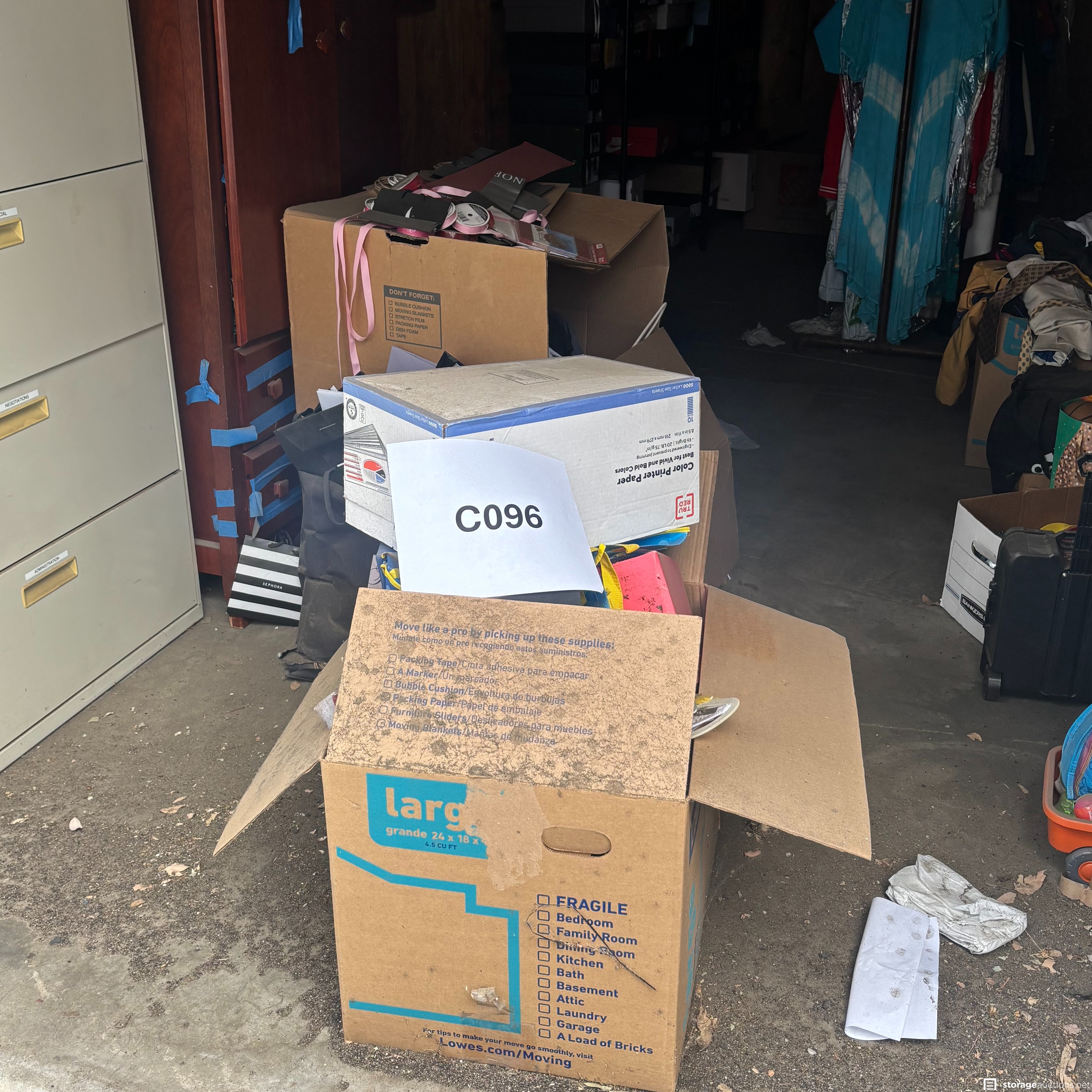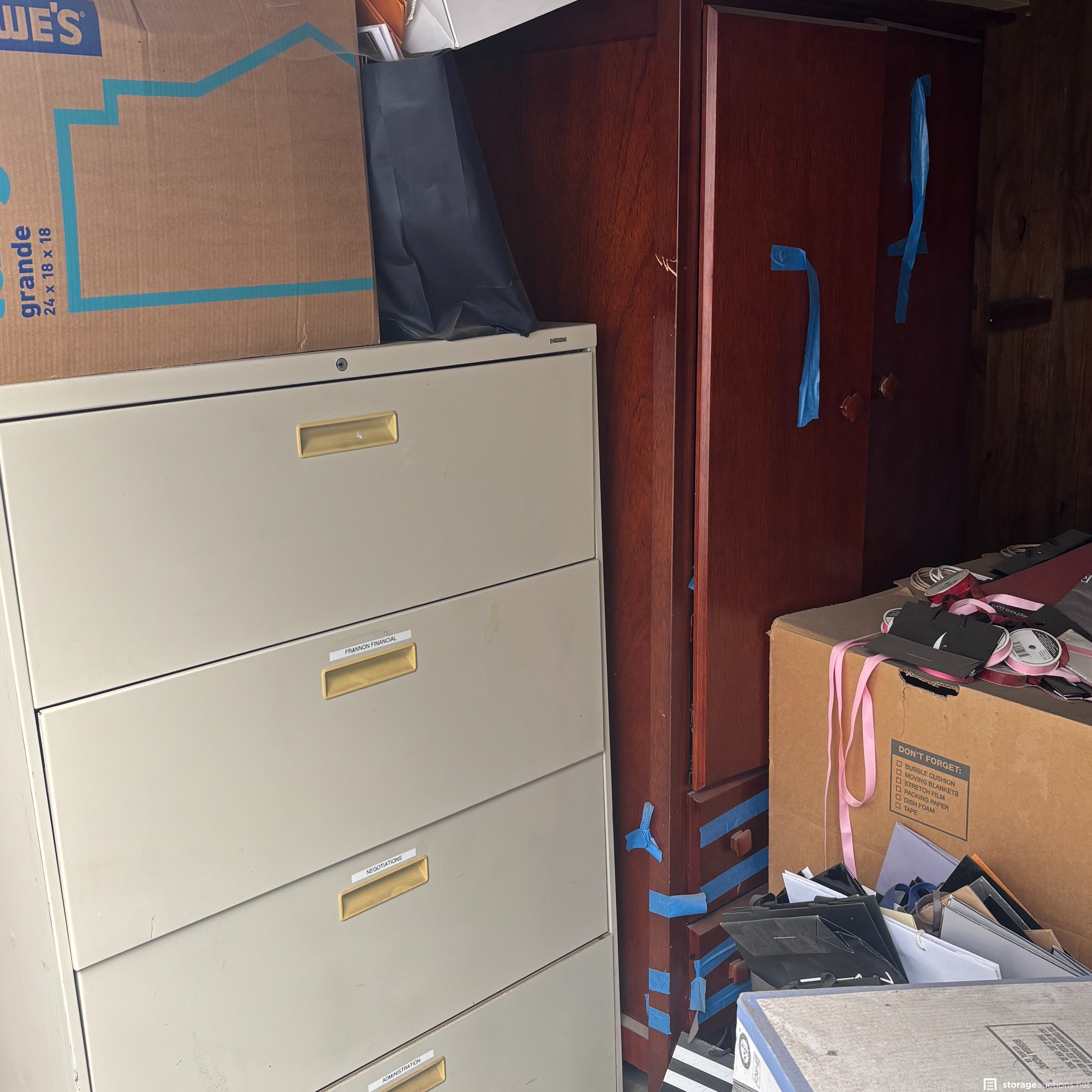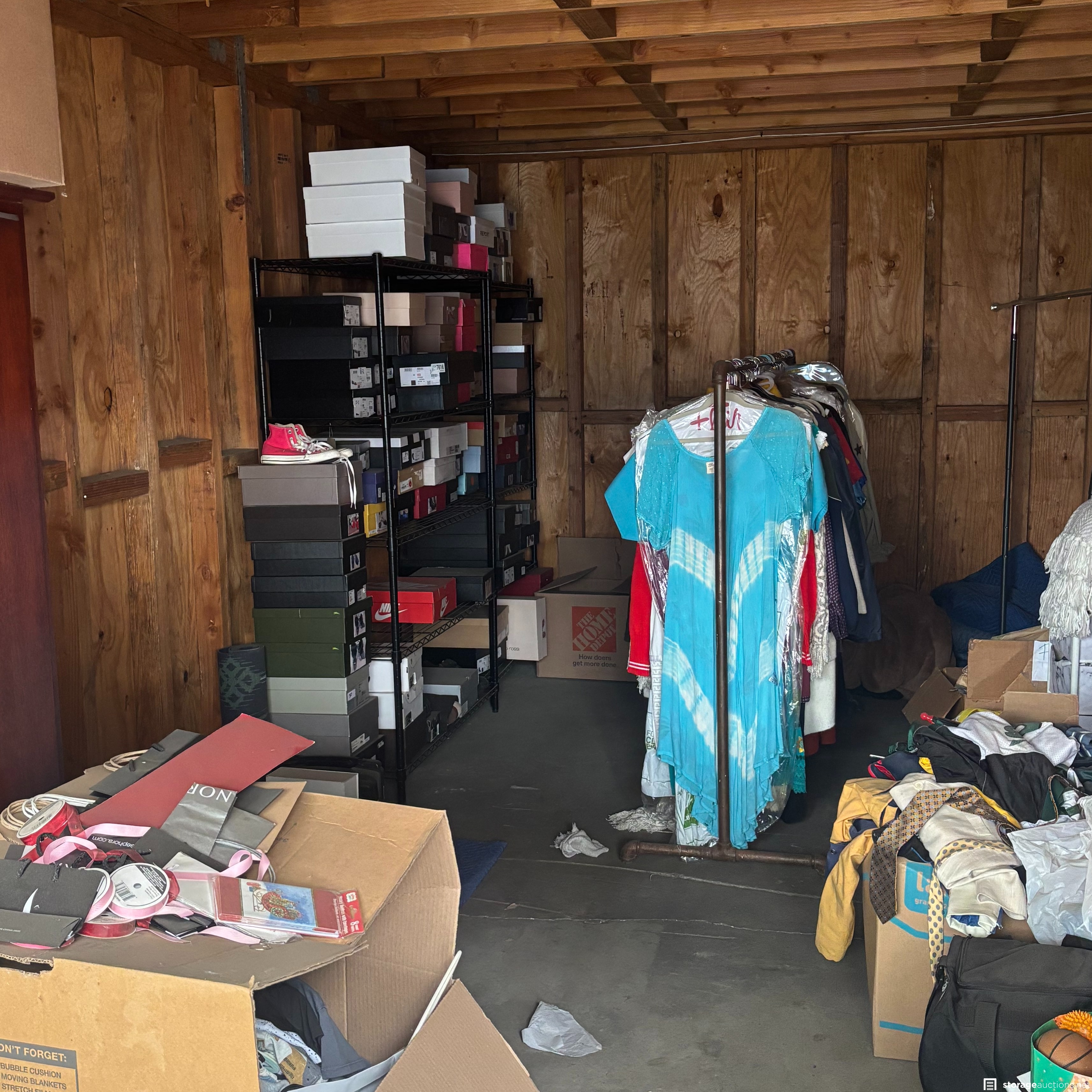 Clothes, Furniture, Filing Cabinet, Boxes, and Miscellaneous Items