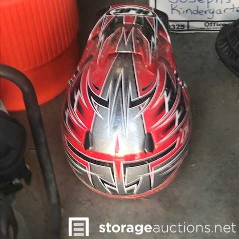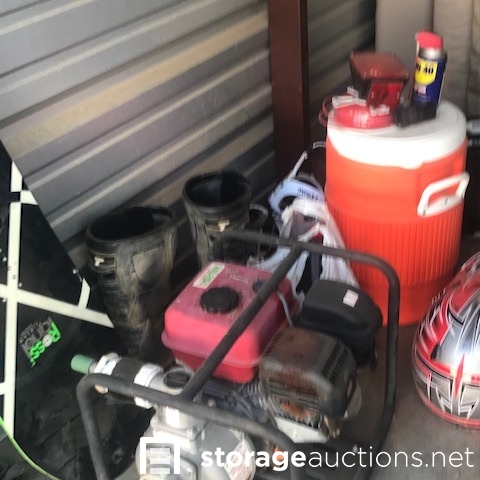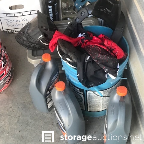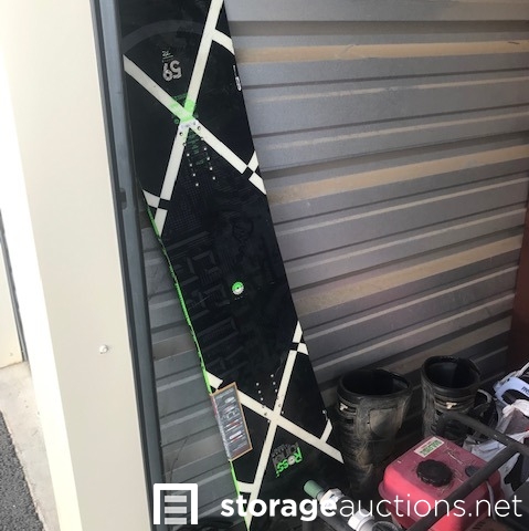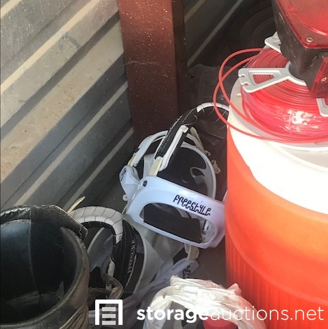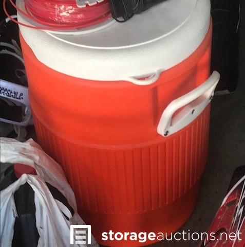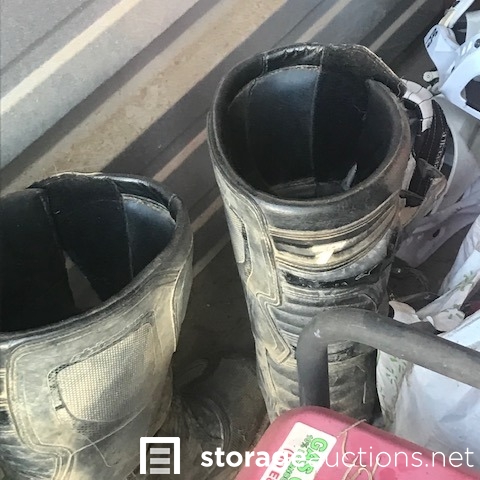 Motocross boots, motocross helmet, couch, pump, Igloo water cooler, snowboard