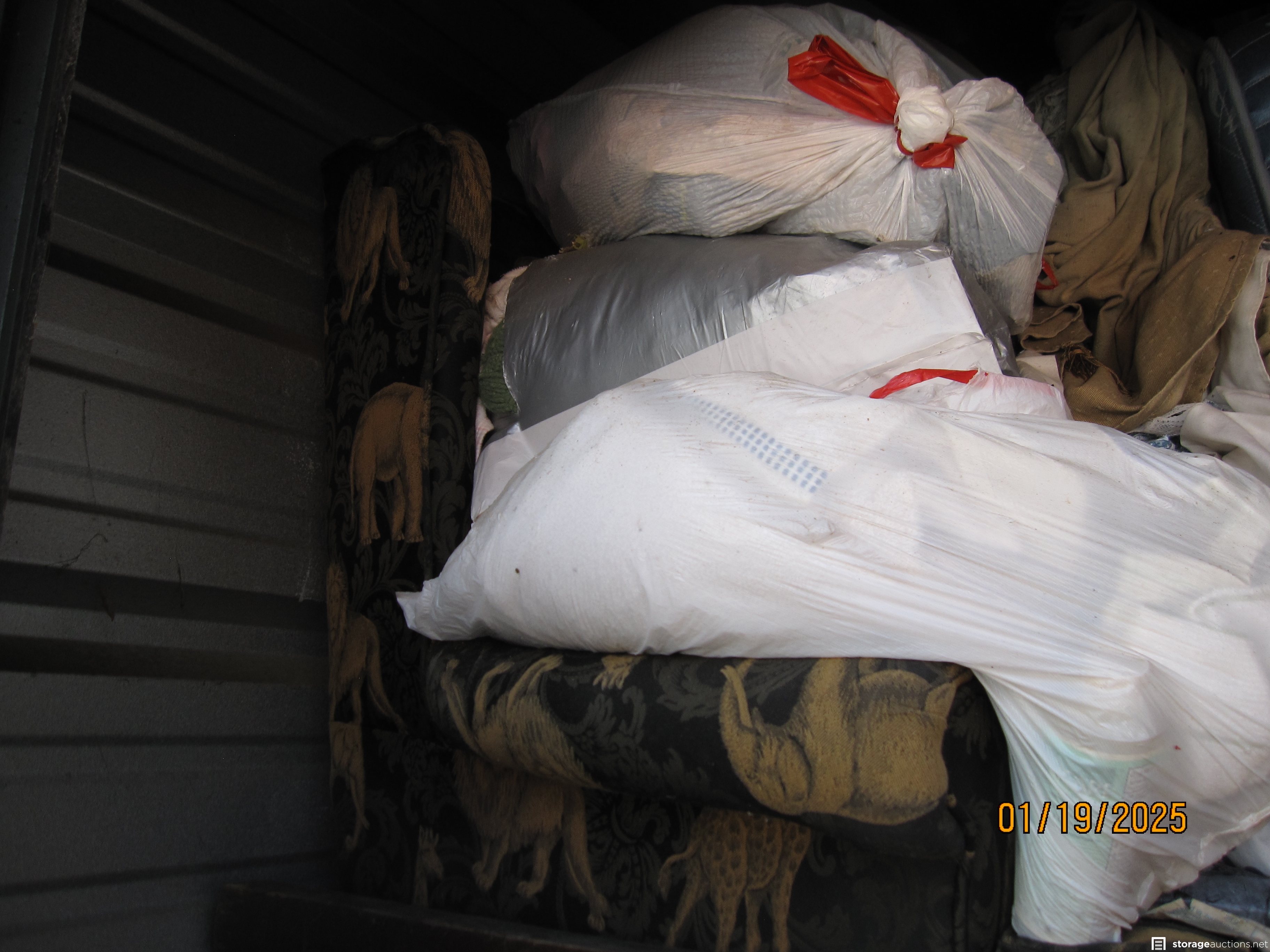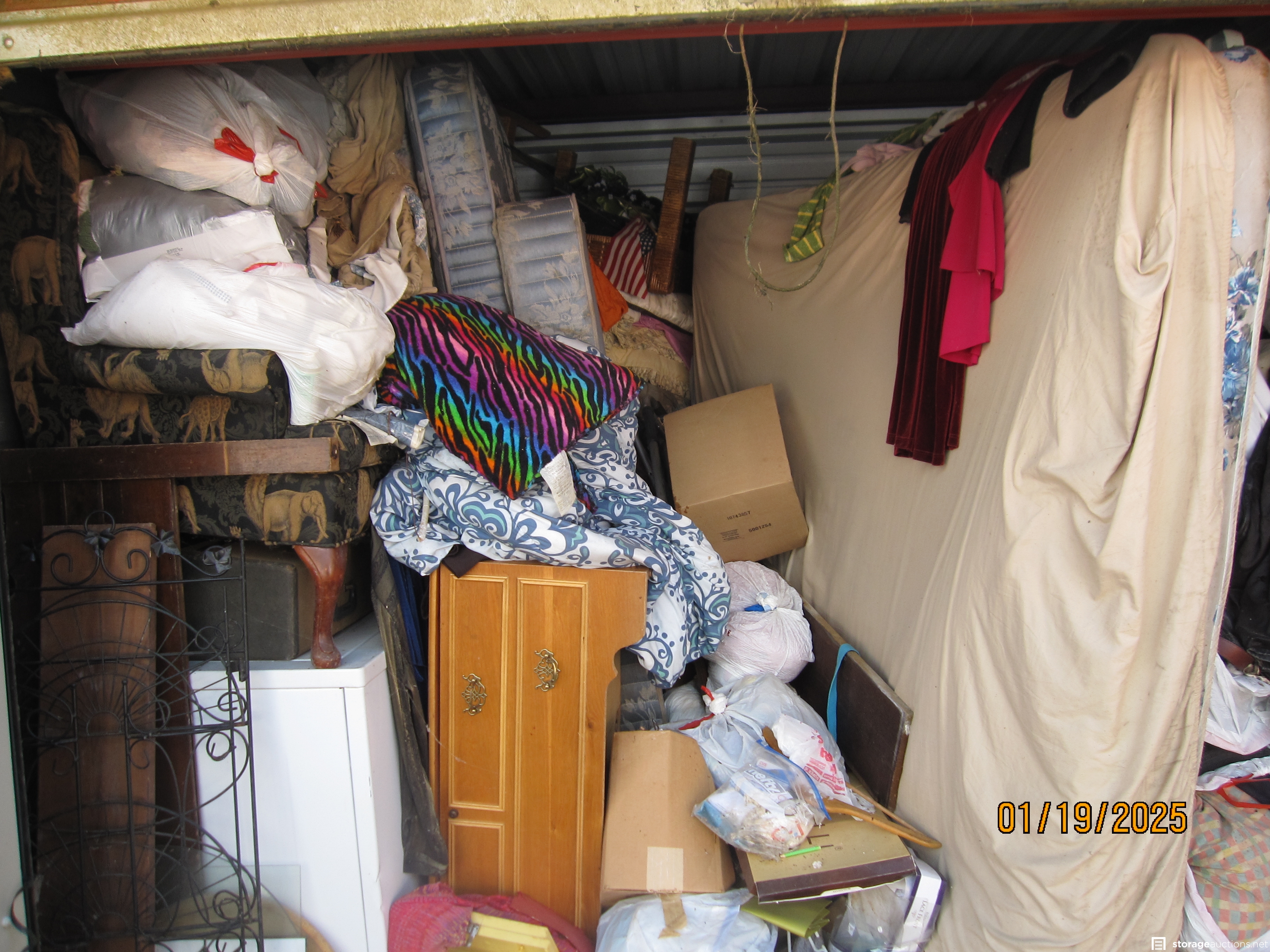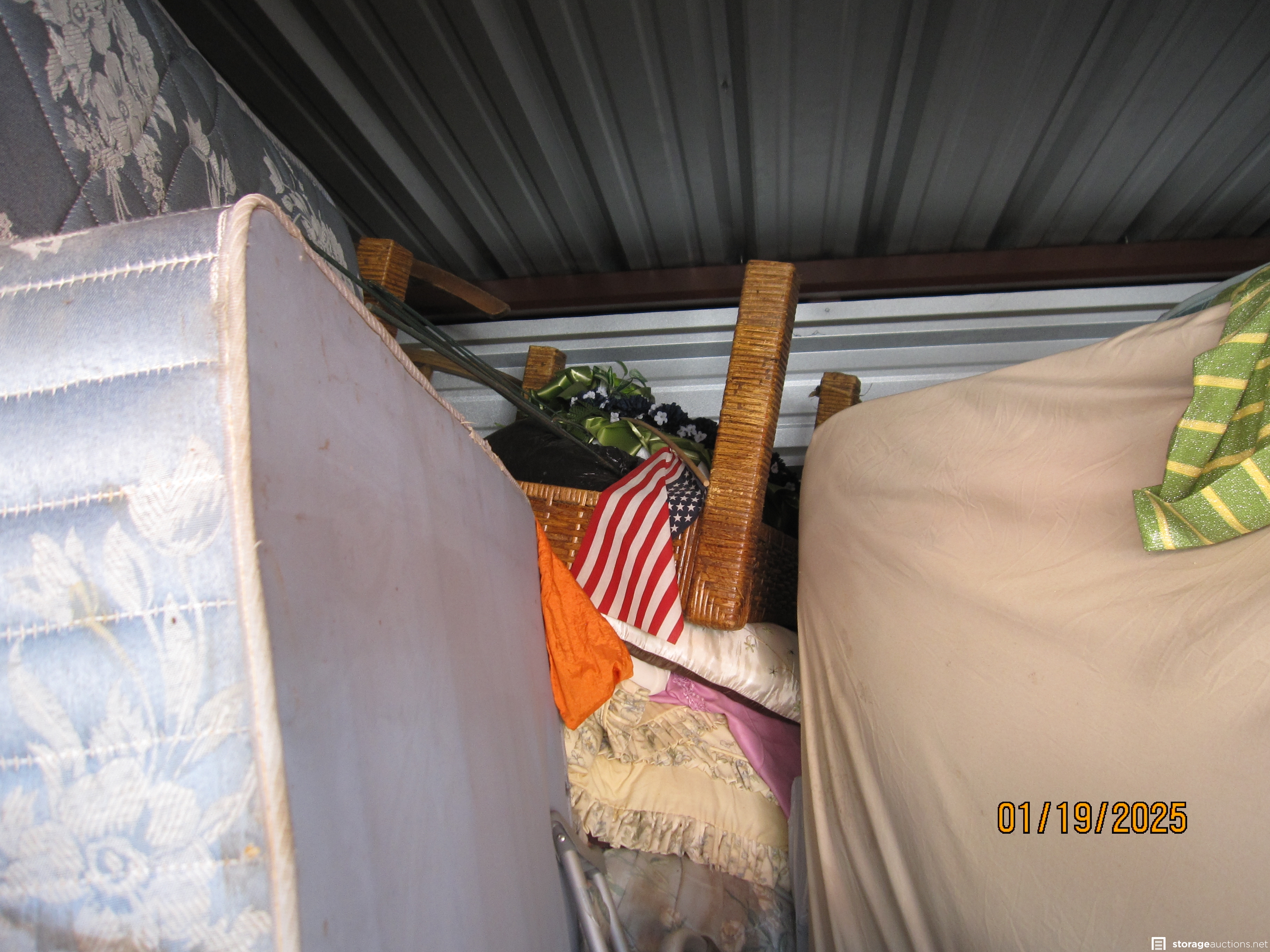 This unit is packed full of household, most of which you can't see because of so much in the unit. I can see appliances that look like a washer and dryer, some wicker tables, maybe coffee and end and a whole lot of house furnishings, accessories, and decorations. No telling what is hidden behind and under what you can see.