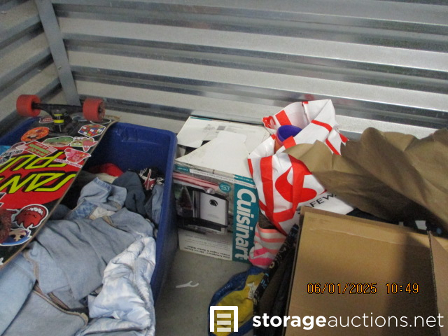 Additional Terms: 1. We reserve the right to refuse service to anyone at any time for any reason. Auctions are public, but do not guarantee that all the members of the public can participate. 2. TERMS: CASH ONLY on award of bid. All units must be paid for immediately no later than 5:00 pm on the day that Auction Bid is accepted. Winning bidder must appear in person with valid ID to pay and arrange for the clearance of the unit contents. 3. At discretion of Auctioneer, a minimum $200.00 refundable cleaning deposit per unit is required. CASH ONLY. The Storage Facility may charge a higher deposit on extra-large units. Do not use the facility???s dumpsters for trash. All items must be removed from the premises within 72 hours from winning bid. 4. Bidder agrees, understands and abides by all rules and regulations posted by the facility. The Bidder shall have access to the facility and the unit only during posted office hours 9am to 6pm Monday through Saturday. 5. All units are sold ???AS IS, WHERE IS.??? Storageauctions.net, Facility Owner, Manager, or Agent makes no guarantees as to the contents of units. Box buyers: beware of the possibility that all boxes may be full of trash or empty. If so, they are still yours since unit is sold ???AS IS.??? Newspaper legal ad may not agree with the goods in the unit. Do not speculate on what may be in the units. In accordance to Federal laws we are restricted from selling Alcohol, Tobacco, Firearms, Explosives and Controlled Substances. You are required to surrender these items to the Storage Co. and they will be surrendered to the proper authorities. 6. All sales are final. No refunds, exchanges, or credits of any kind will be made. 7. All personal papers (birth certificates, tax records, pictures, yearbooks, checking account information, etc.) found in storage unit should be returned to the storage company. If any of these terms are unacceptable or offensive to you, do not participate in the sale. 8. Bidder shall be responsible for anyone who is acting on behalf of bidder in any capacity and shall indemnify the storage facility, its Owner, Managers, and Agents, and Employees, etc. for any action whatsoever that may be born in any manner and hereby waive any claims against the storage facility. This waiver and responsibility shall also include any personal property damage, property damage to the self-storage facility, its representatives, employees, occupants and customers. 9. The storage company is not responsible for losses due to fire, theft, vandalism, mysterious disappearances or any other events. Bidder shall provide insurance for losses incurred before, during and after sale. 10. The storage company reserves the right to bid. 11. Storage Company???s liability for undeliverable units is limited to monies collected for purchase of unit(s) and cleaning deposit(s) only. The Storage Company will make all reasonable efforts to deliver unit or units to successful bidders. Bidder does not own these items until they are totally removed from the facility. The facility can claim items at any time without notice until they are totally removed. Any items that have been abandoned after 72 hours will be construed as abandoned property. Storage Company reserves the right to refuse to rent Storage Units to Auction Buyers. Bidder will not be refunded bid price and/or cleaning deposit. 12. The ultimate responsibility of the unit being emptied and cleaned is that of the buyer. The buyer is responsible no matter what arrangements have been made to have the unit emptied. Legal action will be taken against the buyer, for costs and/or time involved in cleaning any debris left behind. The bidder hereby agrees that the terms and conditions above as part of the Auction Terms & Conditions.