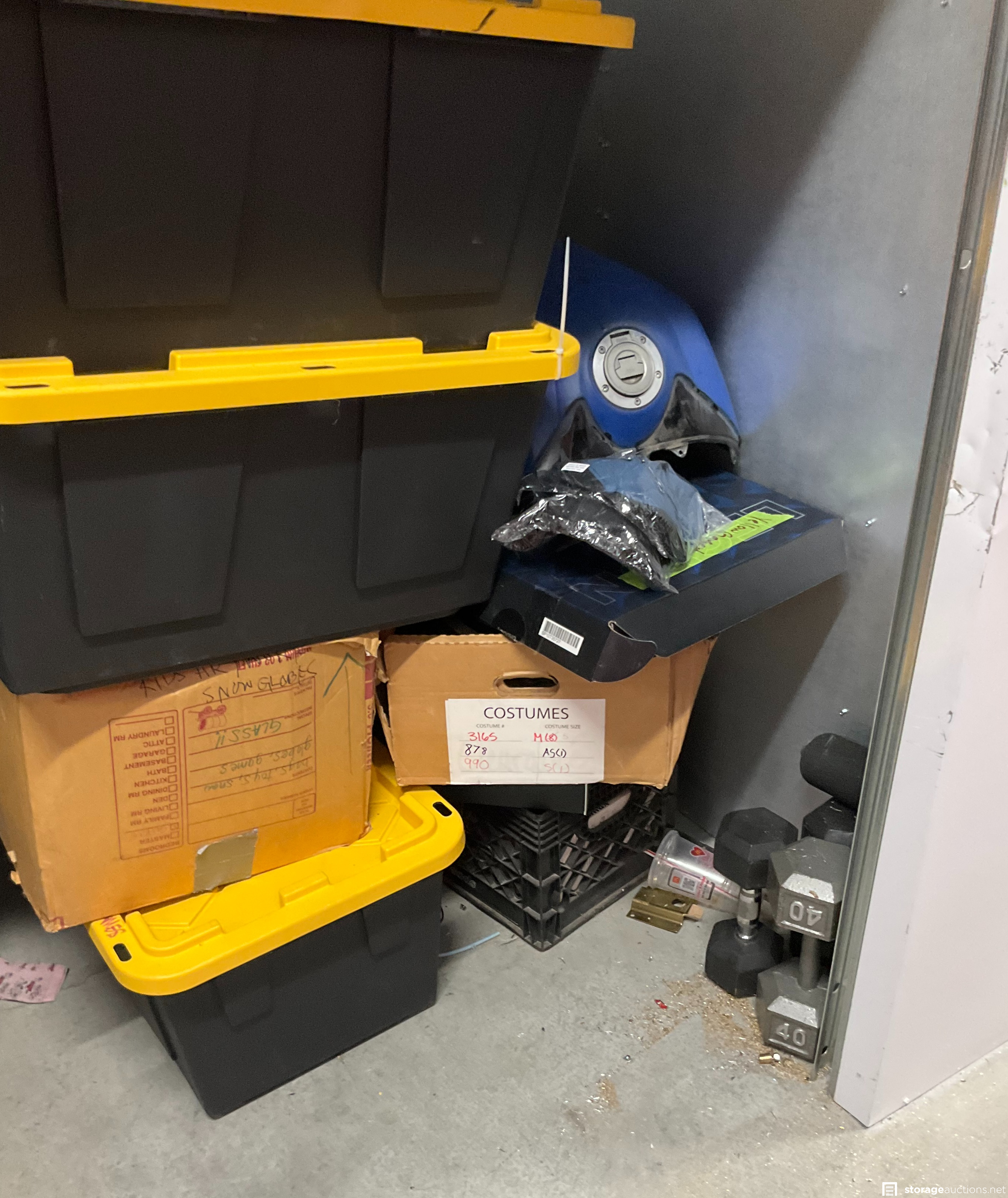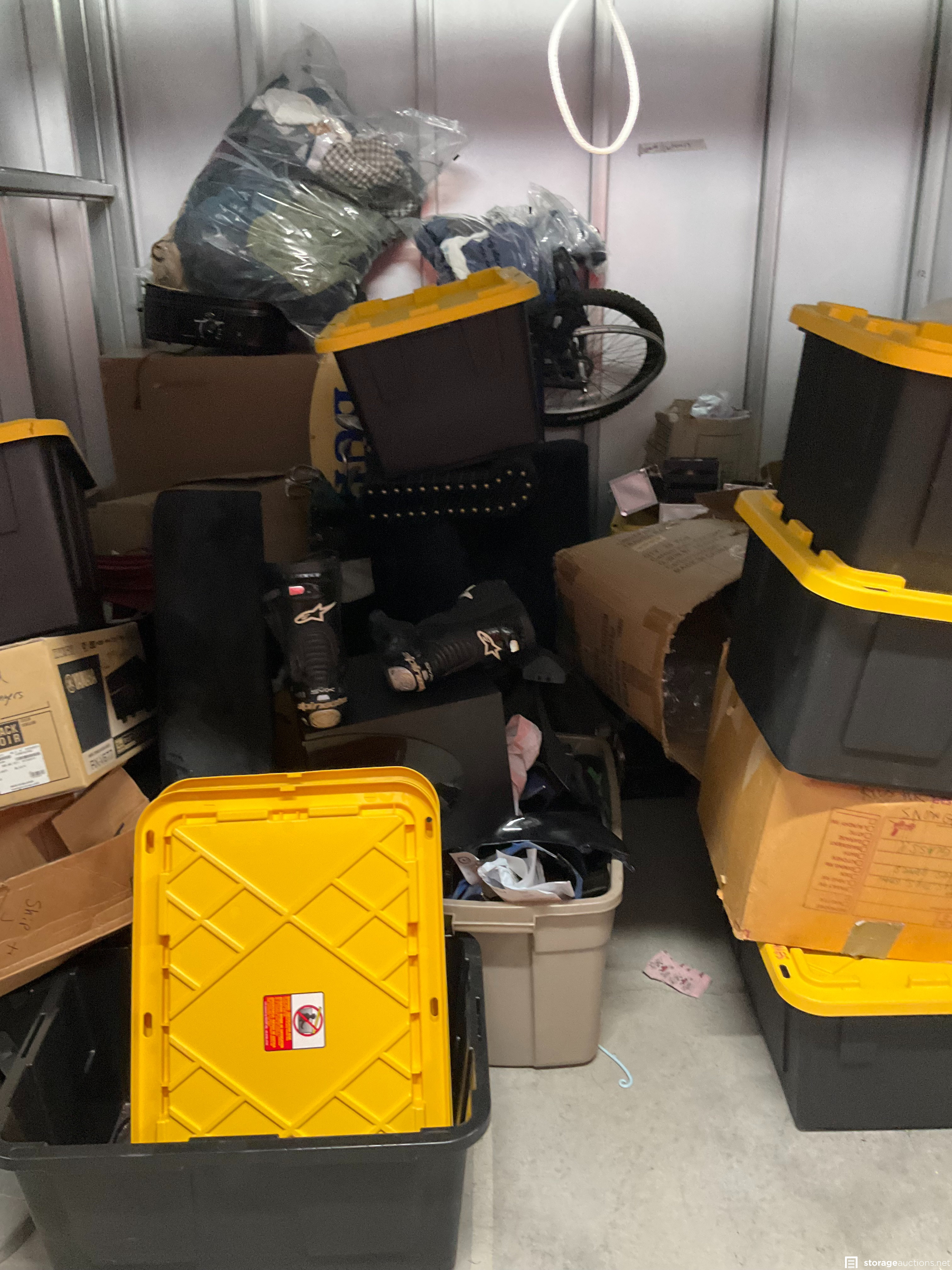 Additional Terms: 1. We reserve the right to refuse service to anyone at any time for any reason. Auctions are public, but do not guarantee that all the members of the public can participate. 2. TERMS: CASH ONLY on award of bid. All units must be paid for immediately no later than 5:00 pm on the day that Auction Bid is accepted. Winning bidder must appear in person with valid ID to pay and arrange for the clearance of the unit contents. 3. At discretion of Auctioneer, a minimum $200.00 refundable cleaning deposit per unit is required. CASH ONLY. The Storage Facility may charge a higher deposit on extra-large units. Do not use the facility???s dumpsters for trash. All items must be removed from the premises within 72 hours from winning bid. 4. Bidder agrees, understands and abides by all rules and regulations posted by the facility. The Bidder shall have access to the facility and the unit only during posted office hours 9am to 6pm Monday through Saturday. 5. All units are sold ???AS IS, WHERE IS.??? Storageauctions.net, Facility Owner, Manager, or Agent makes no guarantees as to the contents of units. Box buyers: beware of the possibility that all boxes may be full of trash or empty. If so, they are still yours since unit is sold ???AS IS.??? Newspaper legal ad may not agree with the goods in the unit. Do not speculate on what may be in the units. In accordance to Federal laws we are restricted from selling Alcohol, Tobacco, Firearms, Explosives and Controlled Substances. You are required to surrender these items to the Storage Co. and they will be surrendered to the proper authorities. 6. All sales are final. No refunds, exchanges, or credits of any kind will be made. 7. All personal papers (birth certificates, tax records, pictures, yearbooks, checking account information, etc.) found in storage unit should be returned to the storage company. If any of these terms are unacceptable or offensive to you, do not participate in the sale. 8. Bidder shall be responsible for anyone who is acting on behalf of bidder in any capacity and shall indemnify the storage facility, its Owner, Managers, and Agents, and Employees, etc. for any action whatsoever that may be born in any manner and hereby waive any claims against the storage facility. This waiver and responsibility shall also include any personal property damage, property damage to the self-storage facility, its representatives, employees, occupants and customers. 9. The storage company is not responsible for losses due to fire, theft, vandalism, mysterious disappearances or any other events. Bidder shall provide insurance for losses incurred before, during and after sale. 10. The storage company reserves the right to bid. 11. Storage Company???s liability for undeliverable units is limited to monies collected for purchase of unit(s) and cleaning deposit(s) only. The Storage Company will make all reasonable efforts to deliver unit or units to successful bidders. Bidder does not own these items until they are totally removed from the facility. The facility can claim items at any time without notice until they are totally removed. Any items that have been abandoned after 72 hours will be construed as abandoned property. Storage Company reserves the right to refuse to rent Storage Units to Auction Buyers. Bidder will not be refunded bid price and/or cleaning deposit. 12. The ultimate responsibility of the unit being emptied and cleaned is that of the buyer. The buyer is responsible no matter what arrangements have been made to have the unit emptied. Legal action will be taken against the buyer, for costs and/or time involved in cleaning any debris left behind. The bidder hereby agrees that the terms and conditions above as part of the Auction Terms & Conditions.