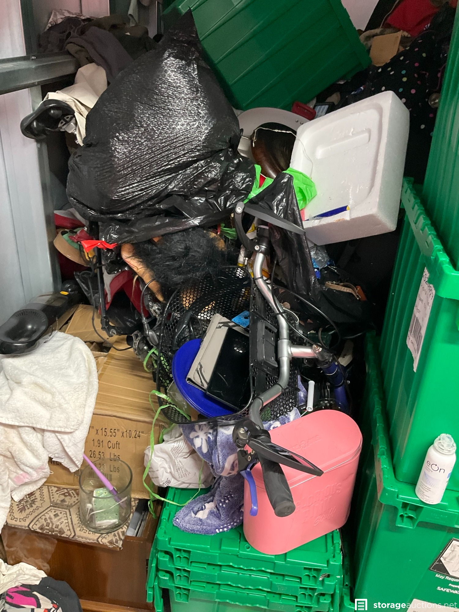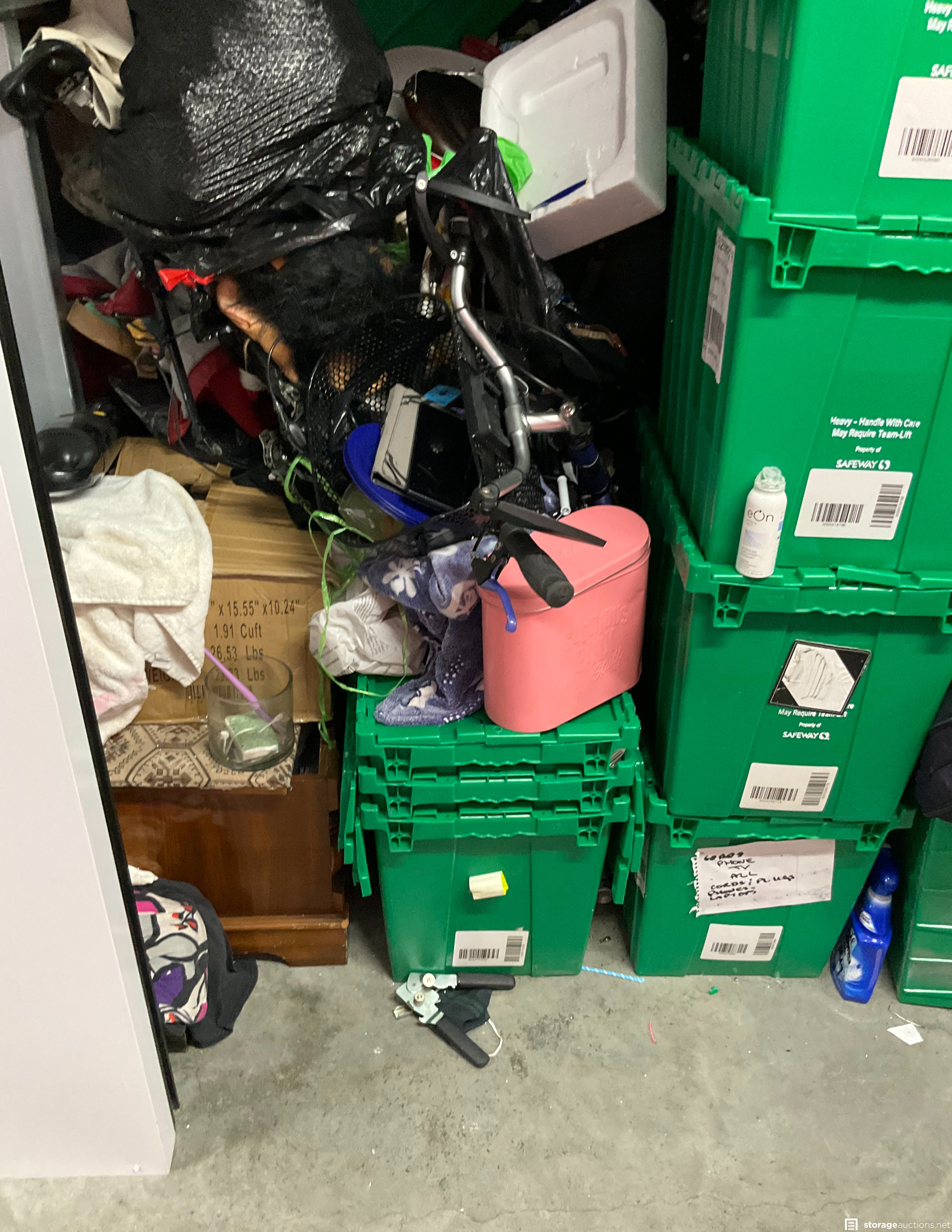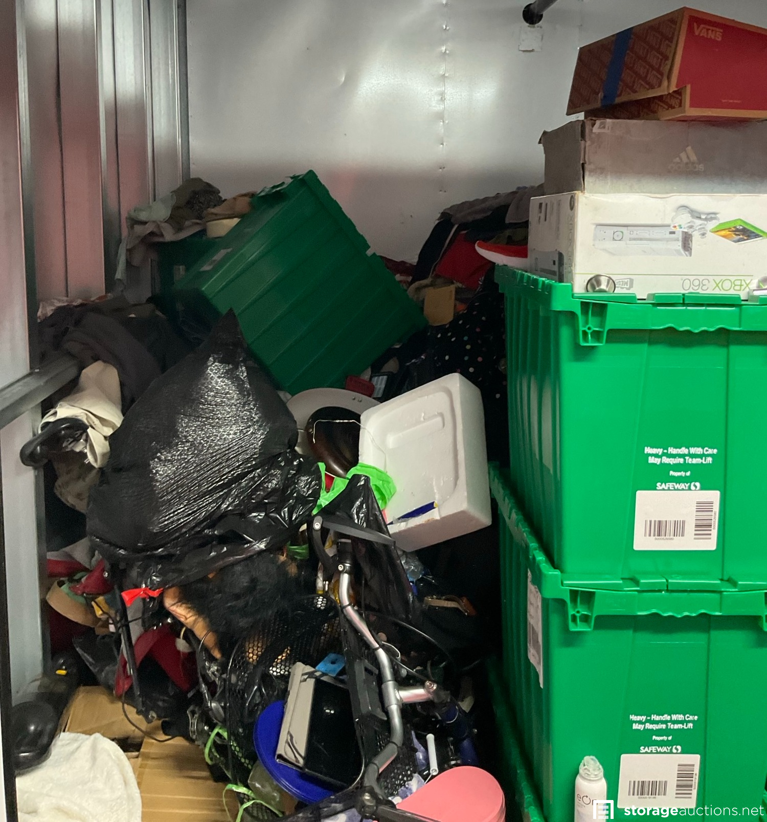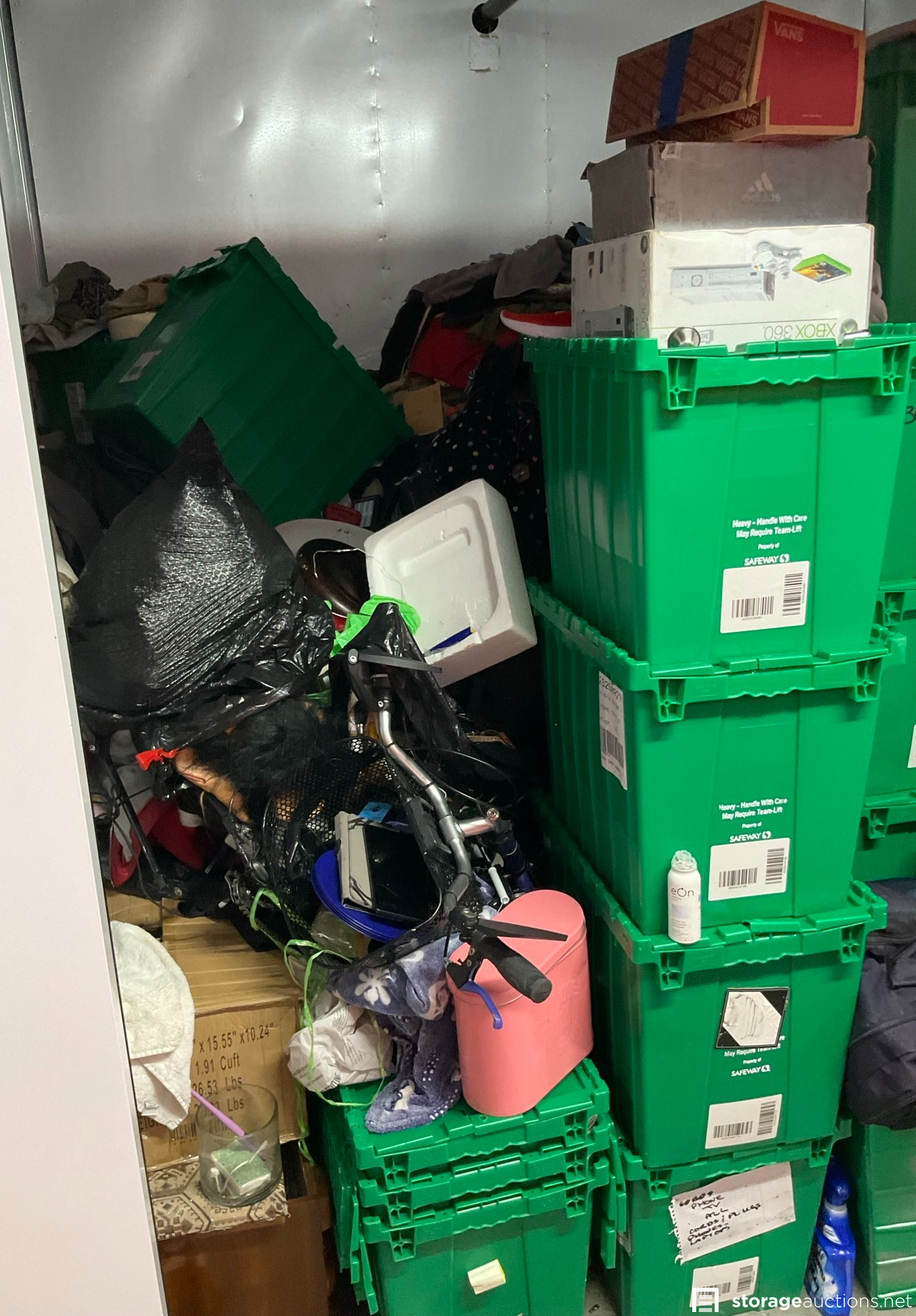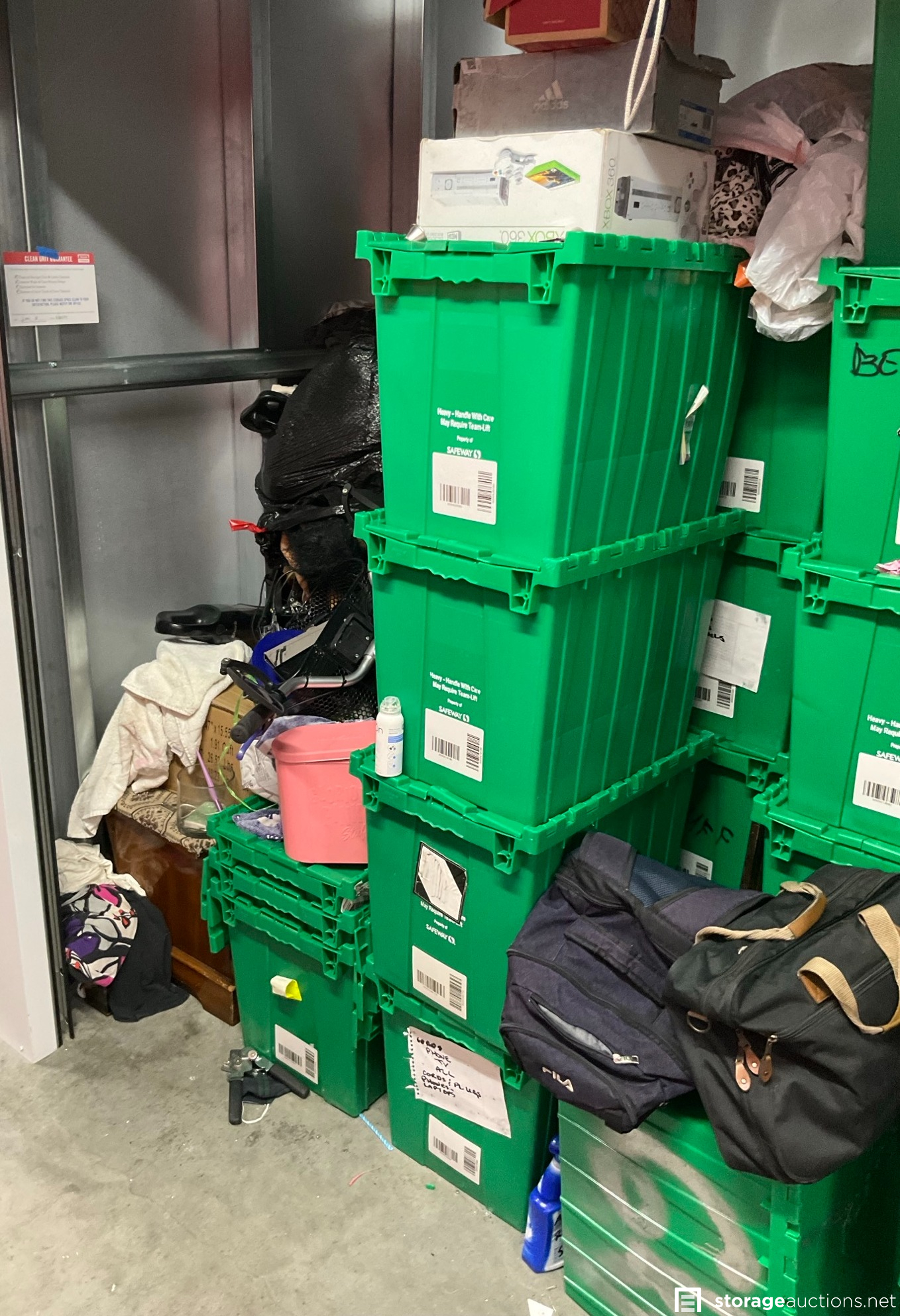 Additional Terms: 1. We reserve the right to refuse service to anyone at any time for any reason. Auctions are public, but do not guarantee that all the members of the public can participate. 2. TERMS: CASH ONLY on award of bid. All units must be paid for immediately no later than 5:00 pm on the day that Auction Bid is accepted. Winning bidder must appear in person with valid ID to pay and arrange for the clearance of the unit contents. 3. At discretion of Auctioneer, a minimum $200.00 refundable cleaning deposit per unit is required. CASH ONLY. The Storage Facility may charge a higher deposit on extra-large units. Do not use the facility???s dumpsters for trash. All items must be removed from the premises within 72 hours from winning bid. 4. Bidder agrees, understands and abides by all rules and regulations posted by the facility. The Bidder shall have access to the facility and the unit only during posted office hours 9am to 6pm Monday through Saturday. 5. All units are sold ???AS IS, WHERE IS.??? Storageauctions.net, Facility Owner, Manager, or Agent makes no guarantees as to the contents of units. Box buyers: beware of the possibility that all boxes may be full of trash or empty. If so, they are still yours since unit is sold ???AS IS.??? Newspaper legal ad may not agree with the goods in the unit. Do not speculate on what may be in the units. In accordance to Federal laws we are restricted from selling Alcohol, Tobacco, Firearms, Explosives and Controlled Substances. You are required to surrender these items to the Storage Co. and they will be surrendered to the proper authorities. 6. All sales are final. No refunds, exchanges, or credits of any kind will be made. 7. All personal papers (birth certificates, tax records, pictures, yearbooks, checking account information, etc.) found in storage unit should be returned to the storage company. If any of these terms are unacceptable or offensive to you, do not participate in the sale. 8. Bidder shall be responsible for anyone who is acting on behalf of bidder in any capacity and shall indemnify the storage facility, its Owner, Managers, and Agents, and Employees, etc. for any action whatsoever that may be born in any manner and hereby waive any claims against the storage facility. This waiver and responsibility shall also include any personal property damage, property damage to the self-storage facility, its representatives, employees, occupants and customers. 9. The storage company is not responsible for losses due to fire, theft, vandalism, mysterious disappearances or any other events. Bidder shall provide insurance for losses incurred before, during and after sale. 10. The storage company reserves the right to bid. 11. Storage Company???s liability for undeliverable units is limited to monies collected for purchase of unit(s) and cleaning deposit(s) only. The Storage Company will make all reasonable efforts to deliver unit or units to successful bidders. Bidder does not own these items until they are totally removed from the facility. The facility can claim items at any time without notice until they are totally removed. Any items that have been abandoned after 72 hours will be construed as abandoned property. Storage Company reserves the right to refuse to rent Storage Units to Auction Buyers. Bidder will not be refunded bid price and/or cleaning deposit. 12. The ultimate responsibility of the unit being emptied and cleaned is that of the buyer. The buyer is responsible no matter what arrangements have been made to have the unit emptied. Legal action will be taken against the buyer, for costs and/or time involved in cleaning any debris left behind. The bidder hereby agrees that the terms and conditions above as part of the Auction Terms & Conditions.