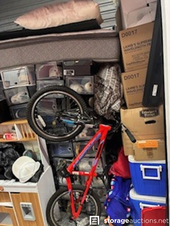 Additional Terms: 1. We reserve the right to refuse service to anyone at any time for any reason. Auctions are public, but do not guarantee that all the members of the public can participate. 2. TERMS: CASH ONLY on award of bid. All units must be paid for immediately no later than 5:00 pm on the day that Auction Bid is accepted. Winning bidder must appear in person with valid ID to pay and arrange for the clearance of the unit contents. 3. At discretion of Auctioneer, a minimum $200.00 refundable cleaning deposit per unit is required. CASH ONLY. The Storage Facility may charge a higher deposit on extra-large units. Do not use the facility???s dumpsters for trash. All items must be removed from the premises within 72 hours from winning bid. 4. Bidder agrees, understands and abides by all rules and regulations posted by the facility. The Bidder shall have access to the facility and the unit only during posted office hours 9am to 6 pm Monday through Saturday. 5. All units are sold ???AS IS, WHERE IS.??? Storageauctions.net, Facility Owner, Manager, or Agent makes no guarantees as to the contents of units. Box buyers: beware of the possibility that all boxes may be full of trash or empty. If so, they are still yours since unit is sold ???AS IS.??? Newspaper legal ad may not agree with the goods in the unit. Do not speculate on what may be in the units. In accordance to Federal laws we are restricted from selling Alcohol, Tobacco, Firearms, Explosives and Controlled Su bstances. You are required to surrender these items to the Storage Co. and they will be surrendered to the proper authorities. 6. All sales are final. No refunds, exchanges, or credits of any kind will be made. 7. All personal papers (birth certificates, tax records, pictures, yearbooks, checking account information, etc.) found in storage unit should be returned to the storage company. If any of these terms are unacceptable or offensive to you, do not participate in the sale. 8. Bidder shall be responsible for anyone who is acting on behalf of bidder in any capacity and shall indemnify the storage facility, its Owner, Managers, and Agents, and Employees, etc. for any action whatsoever that may be born in any manner and hereby waive any claims against the storage facility. This waiver and responsibility shall also include any personal property damage, property damage to the self-storage facility, its representatives, employees, occupants and customers. 9. The storage company is not responsible for losses due to fire, theft, vandalism, mysterious disappearances or any other events. Bidder shall provide insurance for losses incurred before, during and after sale. 10. The storage company reserves the right to bid. 11. Storage Company???s liability for undeliverable units is limited to monies collected for purchase of unit(s) and cleaning deposit(s) only. The Storage Company will make all reasonable efforts to deliver unit or units to successful bidders. Bidder does not own these items until they are totally removed from the facility. The facility can claim items at any time without notice until they are totally removed. Any items that have been abandoned after 72 hours will be construed as abandoned property. Storage Company reserves the right to refuse to rent Storage Units to Auction Buyers. Bidder will not be refunded bid price and/or cleaning deposit. 12. The ultimate responsibility of the unit being emptied and cleaned is that of the buyer. The buyer is responsible no matter what arrangements have been made to have the unit emptied. Legal action will be taken against the buyer, for costs and/or time involved in cleaning any debris left behind. The bidder hereby agrees that the terms and conditions above as part of the Auction Terms & Conditions.