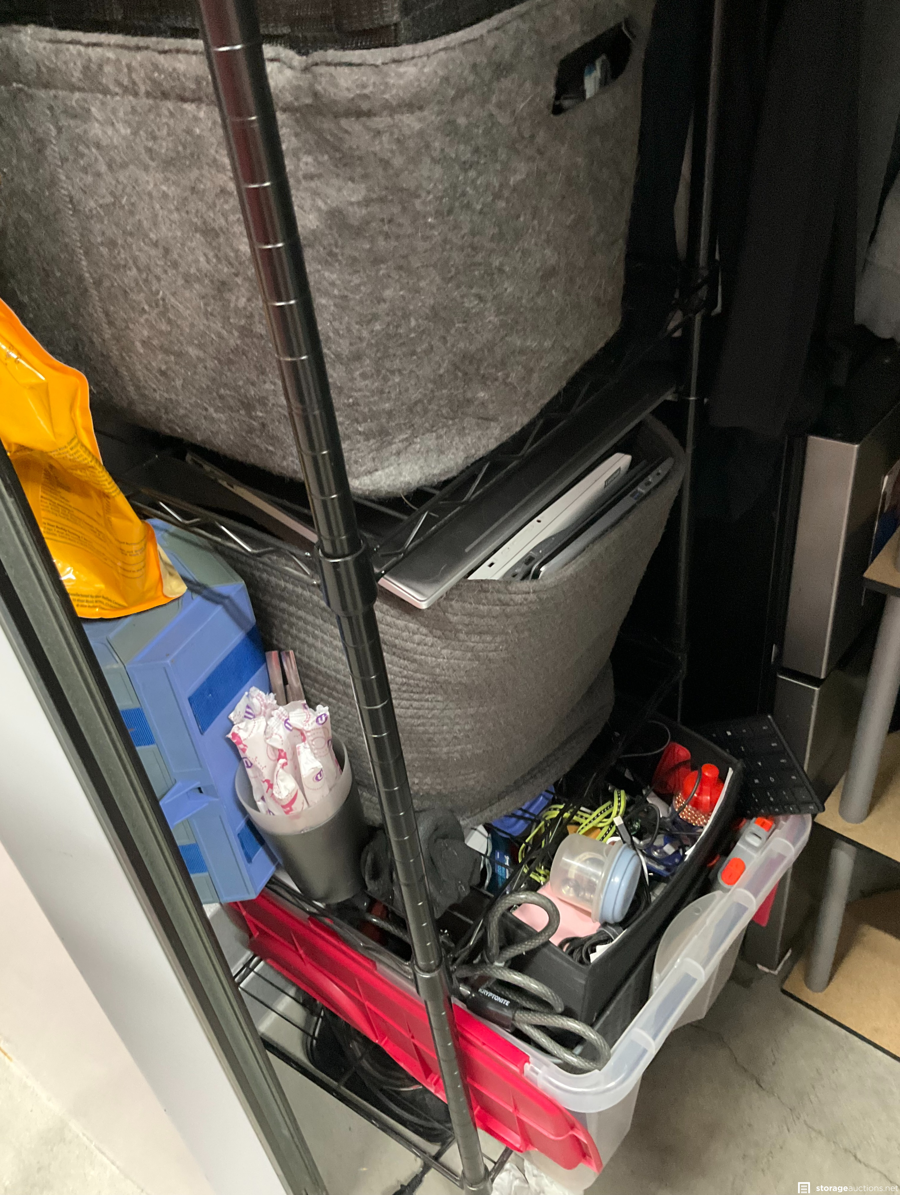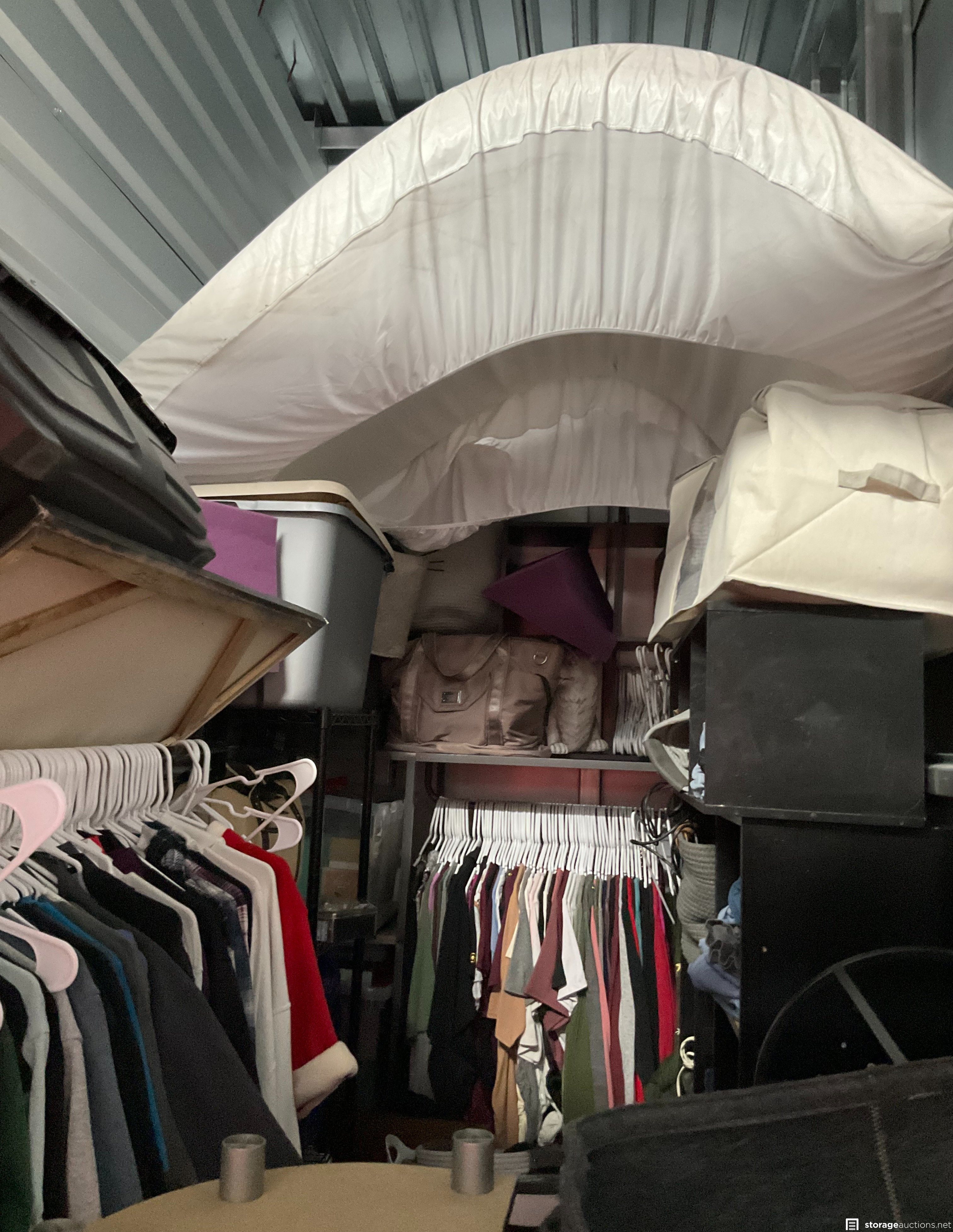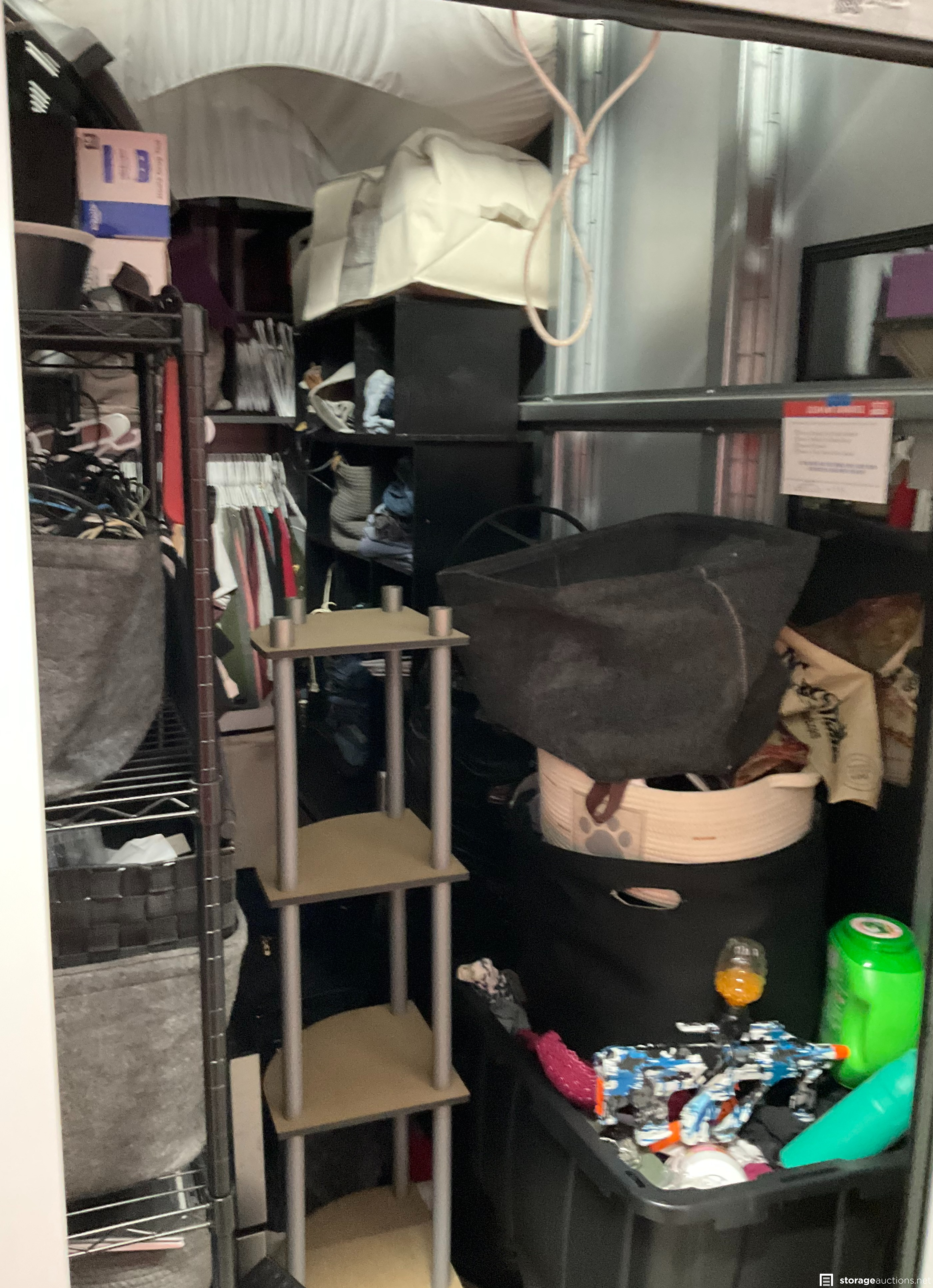 Shoes, Storage Bins, Plastic Totes, Mirror, Mattress, Metal Rack, Clothing, Misc Items, Animal Carrier, Laptop, Duffle Bag