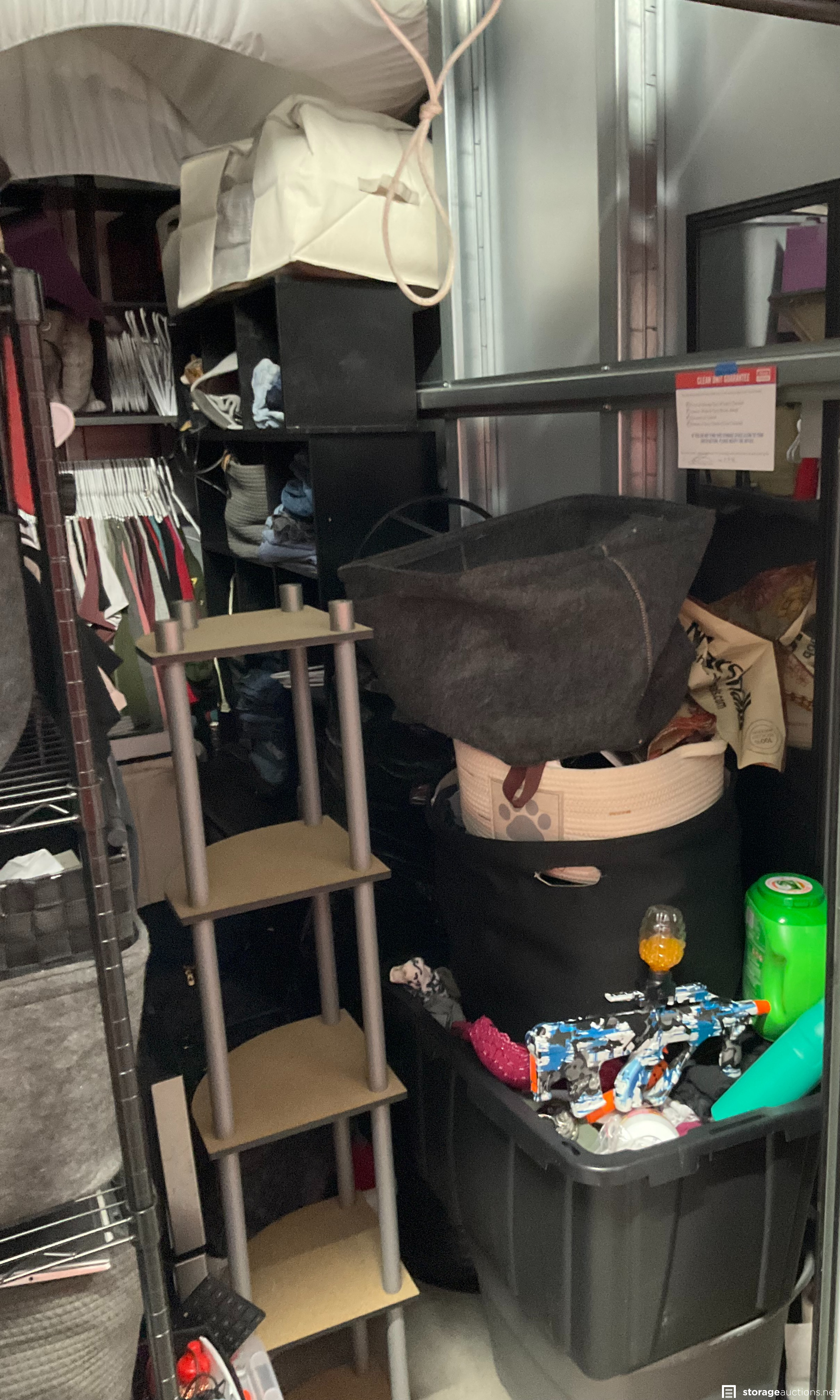 Additional Terms: 1. We reserve the right to refuse service to anyone at any time for any reason. Auctions are public, but do not guarantee that all the members of the public can participate. 2. TERMS: CASH ONLY on award of bid. All units must be paid for immediately no later than 5:00 pm on the day that Auction Bid is accepted. Winning bidder must appear in person with valid ID to pay and arrange for the clearance of the unit contents. 3. At discretion of Auctioneer, a minimum $200.00 refundable cleaning deposit per unit is required. CASH ONLY. The Storage Facility may charge a higher deposit on extra-large units. Do not use the facility???s dumpsters for trash. All items must be removed from the premises within 72 hours from winning bid. 4. Bidder agrees, understands and abides by all rules and regulations posted by the facility. The Bidder shall have access to the facility and the unit only during posted office hours 9am to 6pm Monday through Saturday. 5. All units are sold ???AS IS, WHERE IS.??? Storageauctions.net, Facility Owner, Manager, or Agent makes no guarantees as to the contents of units. Box buyers: beware of the possibility that all boxes may be full of trash or empty. If so, they are still yours since unit is sold ???AS IS.??? Newspaper legal ad may not agree with the goods in the unit. Do not speculate on what may be in the units. In accordance to Federal laws we are restricted from selling Alcohol, Tobacco, Firearms, Explosives and Controlled Substances. You are required to surrender these items to the Storage Co. and they will be surrendered to the proper authorities. 6. All sales are final. No refunds, exchanges, or credits of any kind will be made. 7. All personal papers (birth certificates, tax records, pictures, yearbooks, checking account information, etc.) found in storage unit should be returned to the storage company. If any of these terms are unacceptable or offensive to you, do not participate in the sale. 8. Bidder shall be responsible for anyone who is acting on behalf of bidder in any capacity and shall indemnify the storage facility, its Owner, Managers, and Agents, and Employees, etc. for any action whatsoever that may be born in any manner and hereby waive any claims against the storage facility. This waiver and responsibility shall also include any personal property damage, property damage to the self-storage facility, its representatives, employees, occupants and customers. 9. The storage company is not responsible for losses due to fire, theft, vandalism, mysterious disappearances or any other events. Bidder shall provide insurance for losses incurred before, during and after sale. 10. The storage company reserves the right to bid. 11. Storage Company???s liability for undeliverable units is limited to monies collected for purchase of unit(s) and cleaning deposit(s) only. The Storage Company will make all reasonable efforts to deliver unit or units to successful bidders. Bidder does not own these items until they are totally removed from the facility. The facility can claim items at any time without notice until they are totally removed. Any items that have been abandoned after 72 hours will be construed as abandoned property. Storage Company reserves the right to refuse to rent Storage Units to Auction Buyers. Bidder will not be refunded bid price and/or cleaning deposit. 12. The ultimate responsibility of the unit being emptied and cleaned is that of the buyer. The buyer is responsible no matter what arrangements have been made to have the unit emptied. Legal action will be taken against the buyer, for costs and/or time involved in cleaning any debris left behind. The bidder hereby agrees that the terms and conditions above as part of the Auction Terms & Conditions.