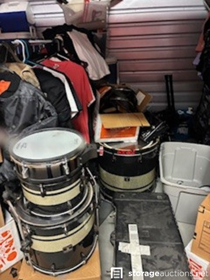 Appears to have Drums,Guitar,Clothes,Boxes,Coolers.Skateboard.,