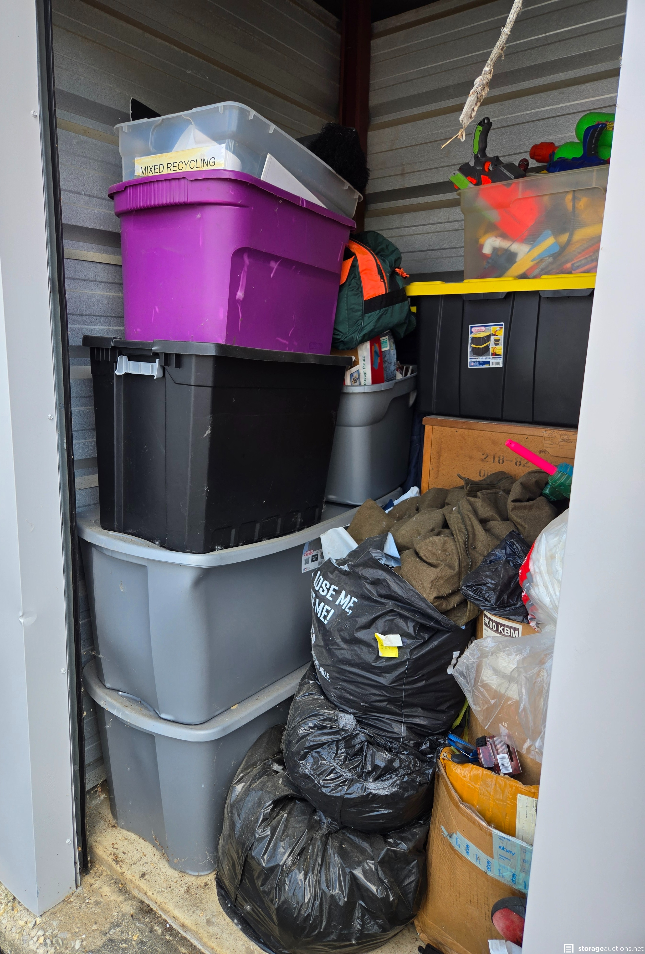 Additional Terms: VEHICLES NOT INCLUDED IN SALE!!!!!! 1. We reserve the right to refuse service to anyone at any time for any reason. Auctions are public, but do not guarantee that all the members of the public can participate. 2. TERMS: CASH ONLY on award of bid. All units must be paid for immediately no later than 5:00 pm on the day that Auction Bid is accepted. Winning bidder must appear in person with valid ID to pay and arrange for the clearance of the unit contents. 3. At discretion of Auctioneer, a minimum $200.00 refundable cleaning deposit per unit is required. CASH ONLY. The Storage Facility may charge a higher deposit on extra-large units. Do not use the facility's dumpsters for trash. All items must be removed from the premises within 72 hours from winning bid. 4. Bidder agrees, understands and abides by all rules and regulations posted by the facility. The Bidder shall have access to the facility and the unit only during posted office hours 9am to 6pm Monday through Saturday. 5. All units are sold AS IS, WHERE IS. Storageauctions.net, Facility Owner, Manager, or Agent makes no guarantees as to the contents of units. Box buyers: beware of the possibility that all boxes may be full of trash or empty. If so, they are still yours since unit is sold AS IS. Newspaper legal ad may not agree with the goods in the unit. Do not speculate on what may be in the units. In accordance to Federal laws we are restricted from selling Alcohol, Tobacco, Firearms, Explosives and Controlled Substances. You are required to surrender these items to the Storage Co. and they will be surrendered to the proper authorities. 6. All sales are final. No refunds, exchanges, or credits of any kind will be made. 7. All personal papers (birth certificates, tax records, pictures, yearbooks, checking account information, etc.) found in storage unit should be returned to the storage company. If any of these terms are unacceptable or offensive to you, do not participate in the sale. 8. Bidder shall be responsible for anyone who is acting on behalf of bidder in any capacity and shall indemnify the storage facility, its Owner, Managers, and Agents, and Employees, etc. for any action whatsoever that may be born in any manner and hereby waive any claims against the storage facility. This waiver and responsibility shall also include any personal property damage, property damage to the self-storage facility, its representatives, employees, occupants and customers. 9. The storage company is not responsible for losses due to fire, theft, vandalism, mysterious disappearances or any other events. Bidder shall provide insurance for losses incurred before, during and after sale. 10. The storage company reserves the right to bid. 11. Storage Company's liability for undeliverable units is limited to monies collected for purchase of unit(s) and cleaning deposit(s) only. The Storage Company will make all reasonable efforts to deliver unit or units to successful bidders. Bidder does not own these items until they are totally removed from the facility. The facility can claim items at any time without notice until they are totally removed. Any items that have been abandoned after 72 hours will be construed as abandoned property. Storage Company reserves the right to refuse to rent Storage Units to Auction Buyers. Bidder will not be refunded bid price and/or cleaning deposit. 12. The ultimate responsibility of the unit being emptied and cleaned is that of the buyer. The buyer is responsible no matter what arrangements have been made to have the unit emptied. Legal action will be taken against the buyer, for costs and/or time involved in cleaning any debris left behind. The bidder hereby agrees that the terms and conditions above as part of the Auction Terms & Conditions.