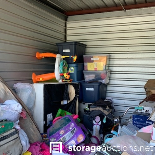 Additional Terms: VERY IMPORTANT - READ BEFORE YOU BID: Contact the facility immediately when auction ends to arrange payment for and pick up of the unit contents -You will not be allowed to enter the storage unit or touch any items prior to bidding -StorageAuction.net has final say on all issues including whether to refuse a bid if a bidder has disrupted an auction or violated our Terms of Use PAYMENT AND TERMS: -Buyers must be at least 18 years old to bid -You must have a Paid Invoice in order to pick up unit contents -If you have an Unpaid Invoice, please update your credit card in your account and click Pay Now to generate a Paid Invoice -You must provide a valid Photo I.D. to the Site Manager -A refundable cleaning deposit may also be charged -Sales tax will be charged at the facility's office at the time of purchase unless a copy of a resale license is provided.-Immediate payment is required prior to gaining access to the unit -Sales are final and bids are for the entire unit -You must bring your own lock to secure the unit PICK UP AND DISPOSAL: -You must remove all contents and broom sweep the unit within the required clean-out time -You are not allowed to use the on-site dumpsters -If you would like to rent the unit after the auction, the manager can assist you -Smoking is prohibited on the property -Please advise the manager once you have completely emptied the unit. The manager will inspect that the unit is clean and then refund your cleaning deposit -Do not park in customer parking -No pets allowed at the facility -Respect the property, managers, tenants, and other buyers at all times. Thank You