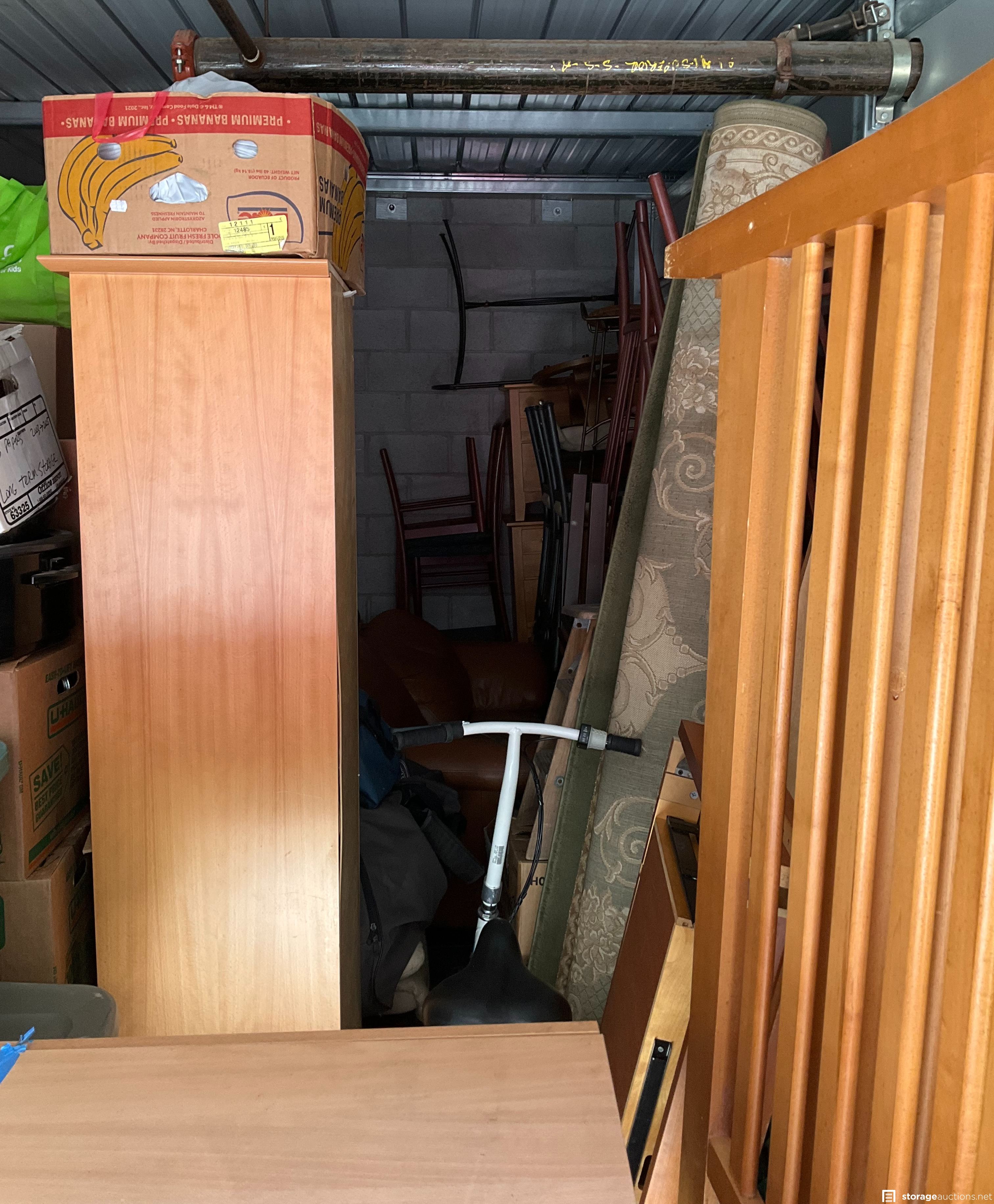Additional Terms: 1. We reserve the right to refuse service to anyone at any time for any reason. Auctions are public, but do not guarantee that all the members of the public can participate. 2. TERMS: CASH ONLY on award of bid. All units must be paid for immediately no later than 5:30 pm on the day that Auction Bid is accepted. Winning bidder must appear in person with valid ID to pay and arrange for the clearance of the unit contents. 3. At discretion of Auctioneer, a minimum $200.00 refundable cleaning deposit per unit is required. CASH ONLY. The Storage Facility may charge a higher deposit on extra-large units. Do not use the facility???s dumpsters for trash. All items must be removed from the premises within 72 hours from winning bid. 4. Bidder agrees, understands and abides by all rules and regulations posted by the facility. The Bidder shall have access to the facility and the unit only during posted office hours 9:30am to 5:30pm Monday through Friday, Saturday 10am to 4pm and closed on Sunday. 5. All units are sold ???AS IS, WHERE IS.??? Storageauctions.net, Facility Owner, Manager, or Agent makes no guarantees as to the contents of units. Box buyers: beware of the possibility that all boxes may be full of trash or empty. If so, they are still yours since unit is sold ???AS IS.??? Newspaper legal ad may not agree with the goods in the unit. Do not speculate on what may be in the units. In accordance to Federal laws we are restricted from selling Alcohol, Tobacco, Firearms, Explosives and Controlled Substances. You are required to surrender these items to the Storage Co. and they will be surrendered to the proper authorities. 6. All sales are final. No refunds, exchanges, or credits of any kind will be made. 7. All personal papers (birth certificates, tax records, pictures, yearbooks, checking account information, etc.) found in storage unit should be returned to the storage company. If any of these terms are unacceptable or offensive to you, do not participate in the sale. 8. Bidder shall be responsible for anyone who is acting on behalf of bidder in any capacity and shall indemnify the storage facility, its Owner, Managers, and Agents, and Employees, etc. for any action whatsoever that may be born in any manner and hereby waive any claims against the storage facility. This waiver and responsibility shall also include any personal property damage, property damage to the self-storage facility, its representatives, employees, occupants and customers. 9. The storage company is not responsible for losses due to fire, theft, vandalism, mysterious disappearances or any other events. Bidder shall provide insurance for losses incurred before, during and after sale. 10. The storage company reserves the right to bid. 11. Storage Company???s liability for undeliverable units is limited to monies collected for purchase of unit(s) and cleaning deposit(s) only. The Storage Company will make all reasonable efforts to deliver unit or units to successful bidders. Bidder does not own these items until they are totally removed from the facility. The facility can claim items at any time without notice until they are totally removed. Any items that have been abandoned after 72 hours will be construed as abandoned property. Storage Company reserves the right to refuse to rent Storage Units to Auction Buyers. Bidder will not be refunded bid price and/or cleaning deposit. 12. The ultimate responsibility of the unit being emptied and cleaned is that of the buyer. The buyer is responsible no matter what arrangements have been made to have the unit emptied. Legal action will be taken against the buyer, for costs and/or time involved in cleaning any debris left behind. The bidder hereby agrees that the terms and conditions above as part of the Auction Terms & Conditions.