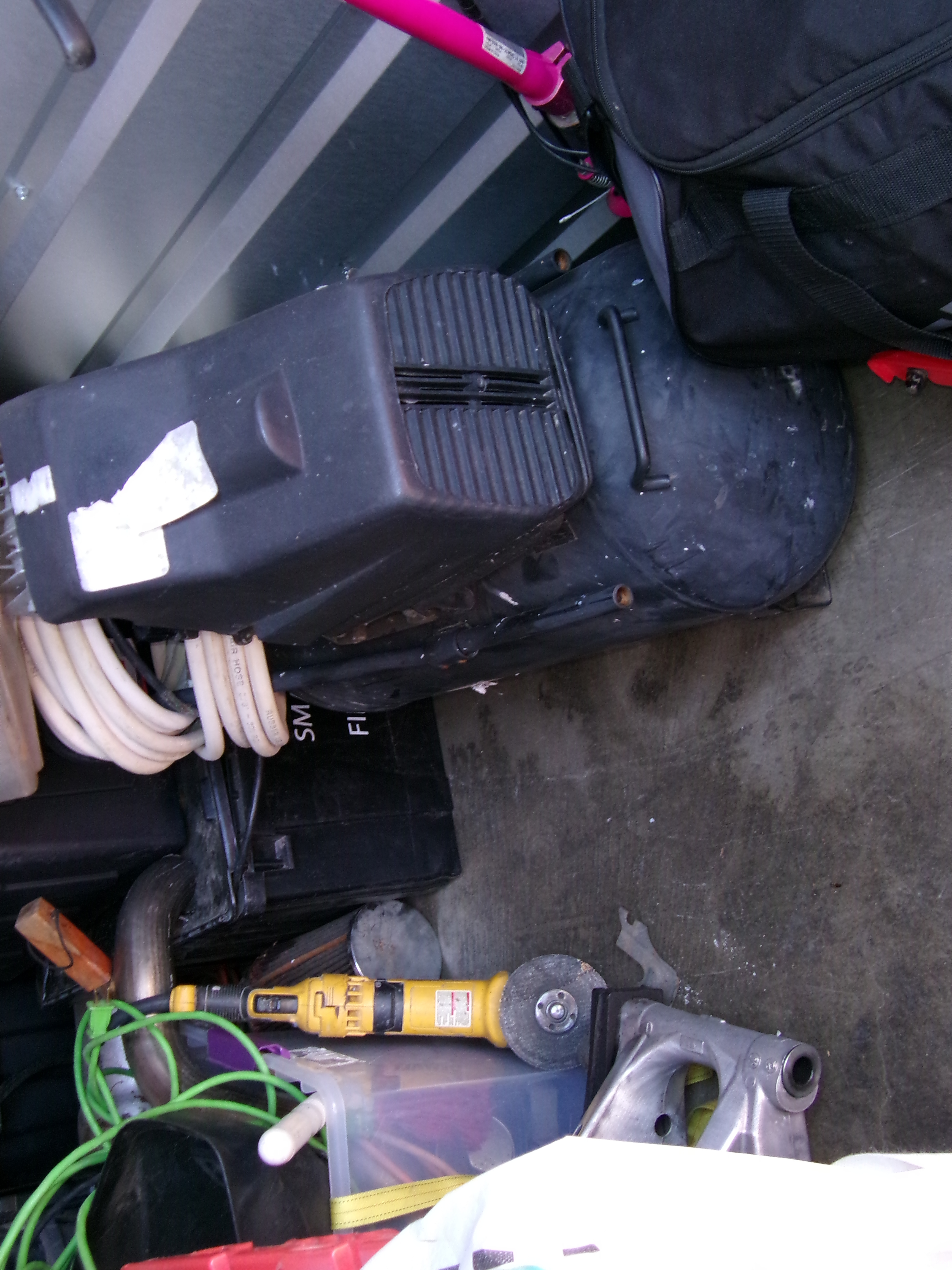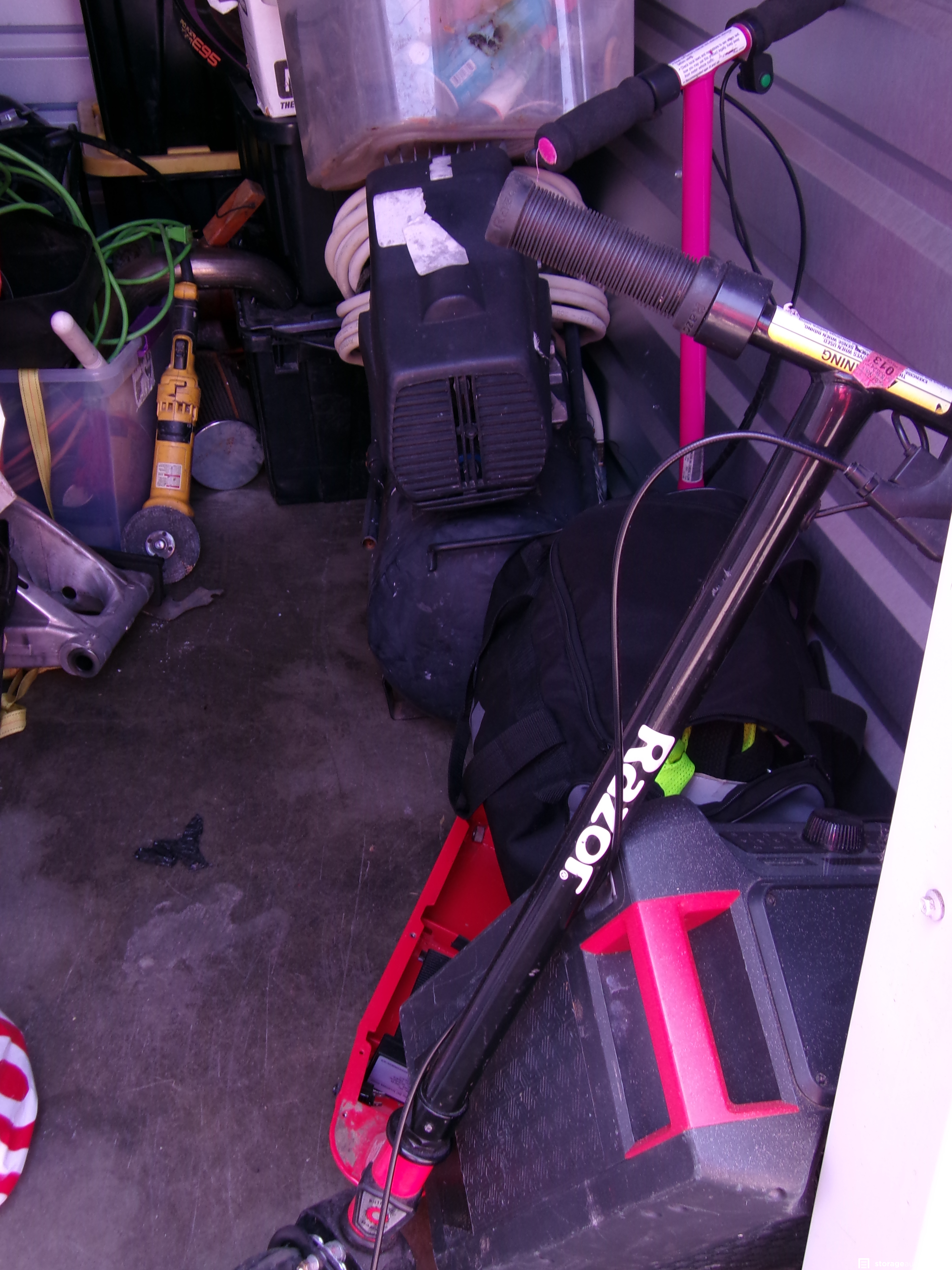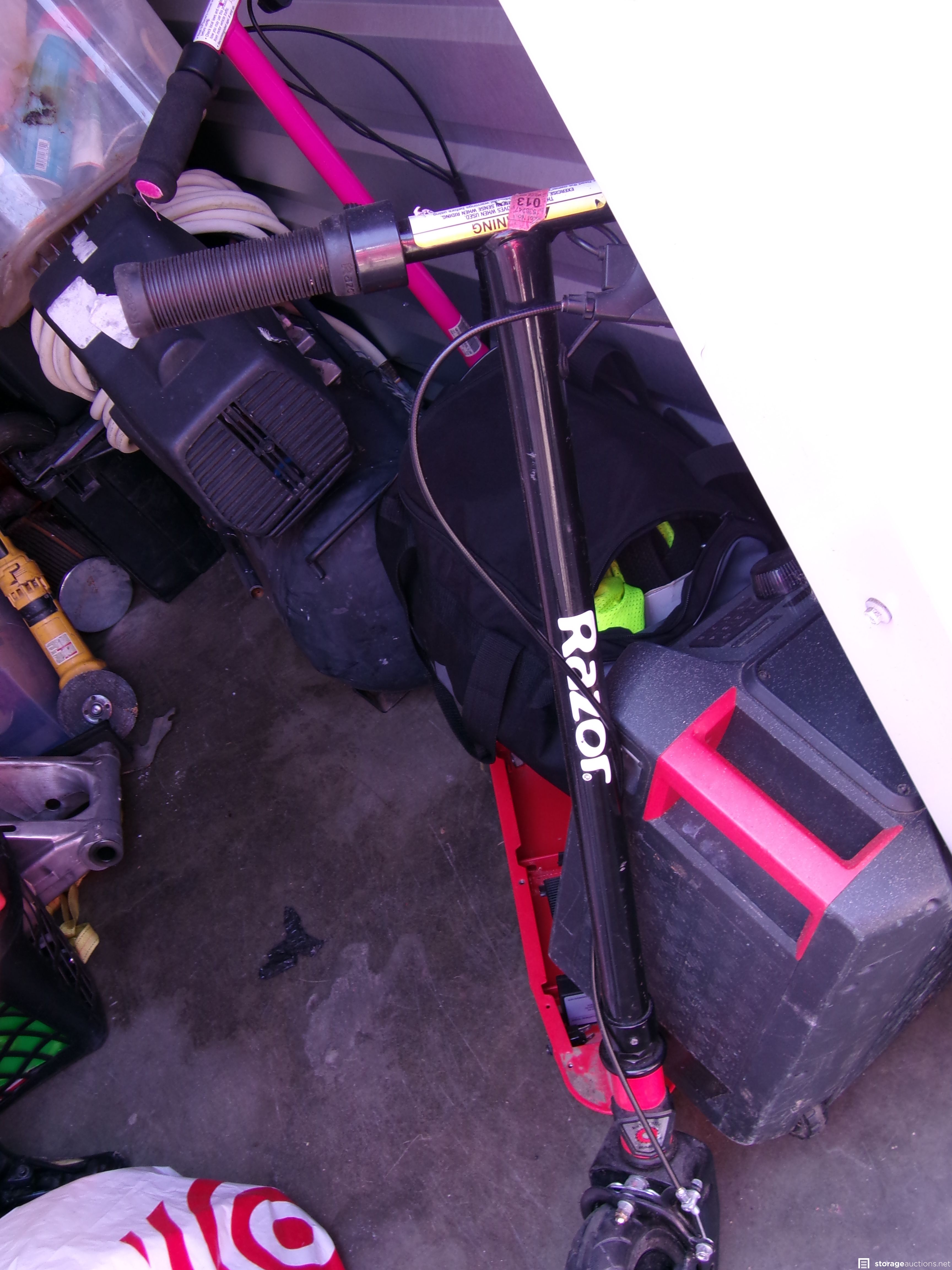 Scooters, Tools, Compressor, Speaker, Totes, Shoes, Duffle Bag, Car Battery, Wires
