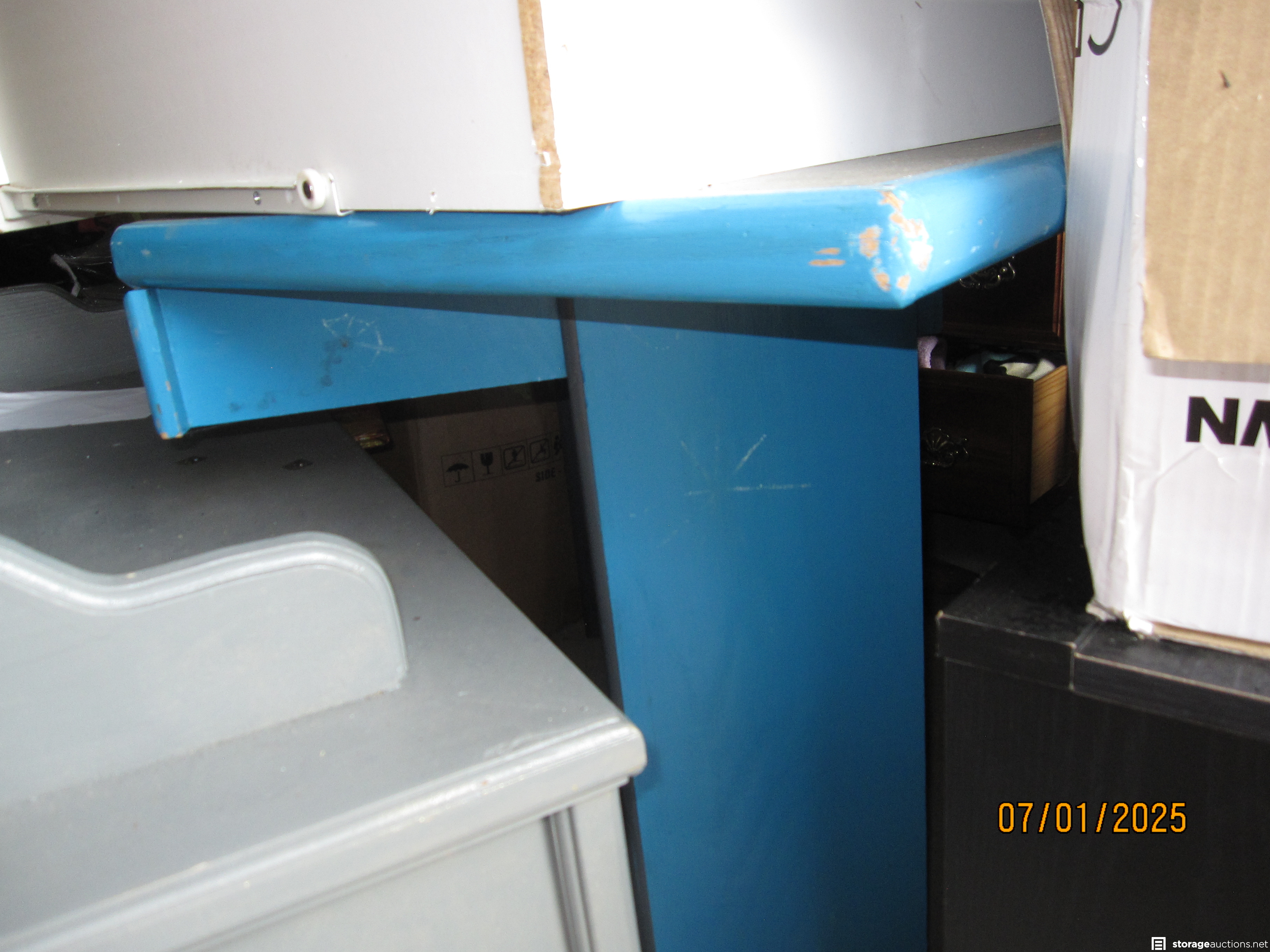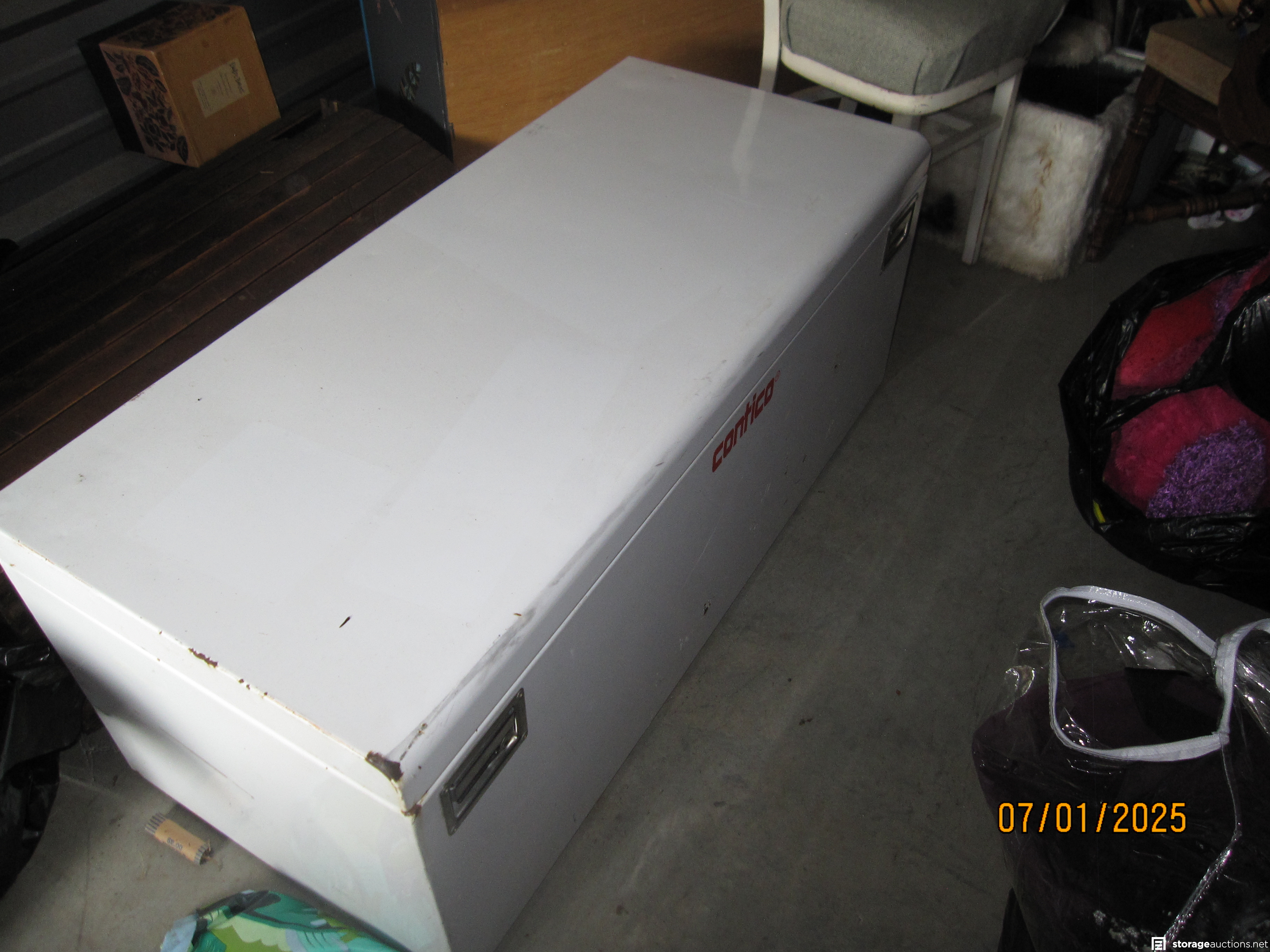 Furniture, household decoration, chests, tile top table, steel truck box, freezer, assorted...
