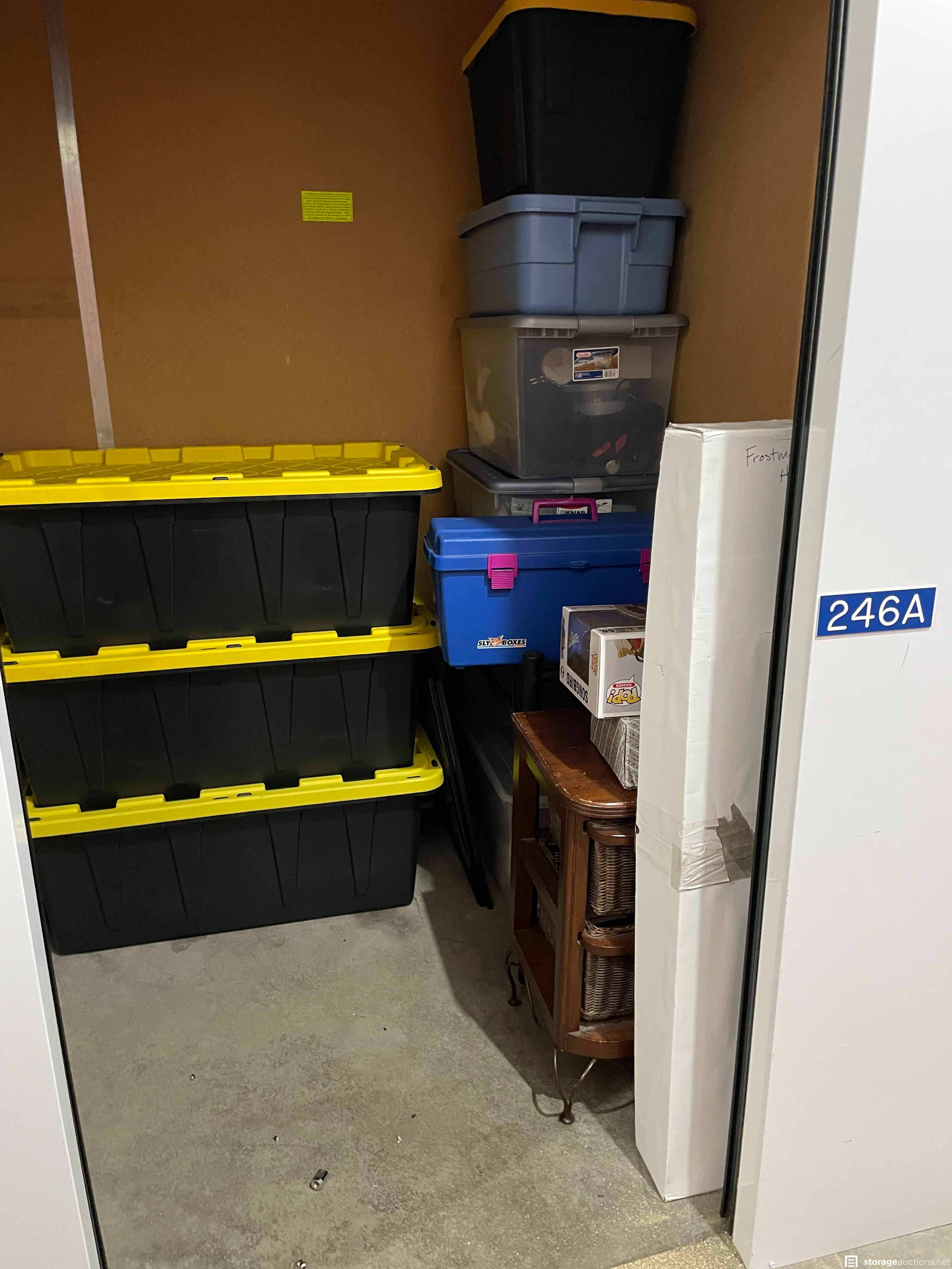 Additional Terms: 1. We reserve the right to refuse service to anyone at any time for any reason. Auctions are public, but do not guarantee that all the members of the public can participate. 2. TERMS: CASH ONLY on award of bid. All units must be paid for immediately no later than 5:30 pm on the day that Auction Bid is accepted. Winning bidder must appear in person with valid ID to pay and arrange for the clearance of the unit contents. 3. At discretion of Auctioneer, a minimum $200.00 refundable cleaning deposit per unit is required. CASH ONLY. The Storage Facility may charge a higher deposit on extra-large units. Do not use the facility???s dumpsters for trash. All items must be removed from the premises within 72 hours from winning bid. 4. Bidder agrees, understands and abides by all rules and regulations posted by the facility. The Bidder shall have access to the facility and the unit only during posted office hours 9:30am to 5:30pm Monday through Saturday. 5. All units are sold ???AS IS, WHERE IS.??? Storagetreasure.com, Facility Owner, Manager, or Agent makes no guarantees as to the contents of units. Box buyers: beware of the possibility that all boxes may be full of trash or empty. If so, they are still yours since unit is sold ???AS IS.??? Newspaper legal ad may not agree with the goods in the unit. Do not speculate on what may be in the units. In accordance to Federal laws, we are restricted from selling Alcohol, Tobacco, Firearms, Explosives and Controlled Substances. You are required to surrender these items to the Storage Co. and they will be surrendered to the proper authorities. 6. All sales are final. No refunds, exchanges, or credits of any kind will be made. 7. All personal papers (birth certificates, tax records, pictures, yearbooks, checking account information, etc.) found in storage unit should be returned to the storage company. If any of these terms are unacceptable or offensive to you, do not participate in the sale. 8. Bidder shall be responsible for anyone who is acting on behalf of bidder in any capacity and shall indemnify the storage facility, its Owner, Managers, and Agents, and Employees, etc. for any action whatsoever that may be born in any manner and hereby waive any claims against the storage facility. This waiver and responsibility shall also include any personal property damage, property damage to the Self-Storage facility, its representatives, employees, occupants and customers. 9. The storage company is not responsible for losses due to fire, theft, vandalism, mysterious disappearances or any other events. Bidder shall provide insurance for losses incurred before, during and after sale. 10. The storage company reserves the right to bid. 11. Storage Company???s liability for undeliverable units is limited to monies collected for purchase of unit(s) and cleaning deposit(s) only. The Storage Company will make all reasonable efforts to deliver unit or units to successful bidders. Bidder does not own these items until they are totally removed from the facility. The facility can claim items at any time without notice until they are totally removed. Any items that have been abandoned after 72 hours will be construed as abandoned property. Storage Company reserves the right to refuse to rent Storage Units to Auction Buyers. Bidder will not be refunded bid price and/or cleaning deposit. 12. The ultimate responsibility of the unit being emptied and cleaned is that of the buyer. The buyer is responsible no matter what arrangements have been made to have the unit emptied. Legal action will be taken against the buyer, for costs and/or time involved in cleaning any debris left behind. The bidder hereby agrees that the terms and conditions above as part of the Auction Terms & Conditions.