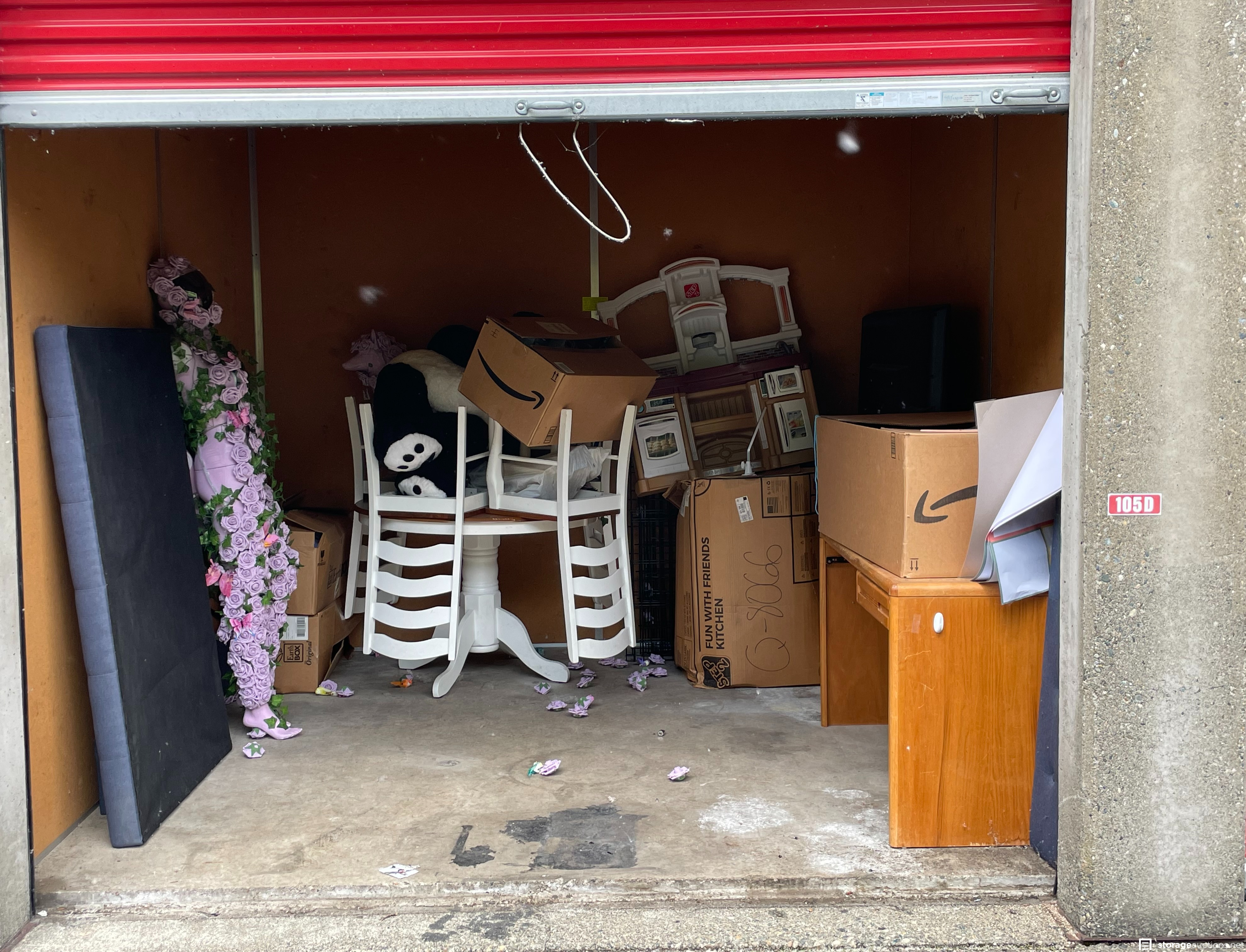 Additional Terms: 1. We reserve the right to refuse service to anyone at any time for any reason. Auctions are public, but do not guarantee that all the members of the public can participate. 2. TERMS: CASH ONLY on award of bid. All units must be paid for immediately no later than 5:30 pm on the day that Auction Bid is accepted. Winning bidder must appear in person with valid ID to pay and arrange for the clearance of the unit contents. 3. At discretion of Auctioneer, a minimum $200.00 refundable cleaning deposit per unit is required. CASH ONLY. The Storage Facility may charge a higher deposit on extra-large units. Do not use the facility???s dumpsters for trash. All items must be removed from the premises within 72 hours from winning bid. 4. Bidder agrees, understands and abides by all rules and regulations posted by the facility. The Bidder shall have access to the facility and the unit only during posted office hours 9:30am to 5:30pm Monday through Saturday. 5. All units are sold ???AS IS, WHERE IS.??? Storagetreasure.com, Facility Owner, Manager, or Agent makes no guarantees as to the contents of units. Box buyers: beware of the possibility that all boxes may be full of trash or empty. If so, they are still yours since unit is sold ???AS IS.??? Newspaper legal ad may not agree with the goods in the unit. Do not speculate on what may be in the units. In accordance to Federal laws, we are restricted from selling Alcohol, Tobacco, Firearms, Explosives and Controlled Substances. You are required to surrender these items to the Storage Co. and they will be surrendered to the proper authorities. 6. All sales are final. No refunds, exchanges, or credits of any kind will be made. 7. All personal papers (birth certificates, tax records, pictures, yearbooks, checking account information, etc.) found in storage unit should be returned to the storage company. If any of these terms are unacceptable or offensive to you, do not participate in the sale. 8. Bidder shall be responsible for anyone who is acting on behalf of bidder in any capacity and shall indemnify the storage facility, its Owner, Managers, and Agents, and Employees, etc. for any action whatsoever that may be born in any manner and hereby waive any claims against the storage facility. This waiver and responsibility shall also include any personal property damage, property damage to the Self-Storage facility, its representatives, employees, occupants and customers. 9. The storage company is not responsible for losses due to fire, theft, vandalism, mysterious disappearances or any other events. Bidder shall provide insurance for losses incurred before, during and after sale. 10. The storage company reserves the right to bid. 11. Storage Company???s liability for undeliverable units is limited to monies collected for purchase of unit(s) and cleaning deposit(s) only. The Storage Company will make all reasonable efforts to deliver unit or units to successful bidders. Bidder does not own these items until they are totally removed from the facility. The facility can claim items at any time without notice until they are totally removed. Any items that have been abandoned after 72 hours will be construed as abandoned property. Storage Company reserves the right to refuse to rent Storage Units to Auction Buyers. Bidder will not be refunded bid price and/or cleaning deposit. 12. The ultimate responsibility of the unit being emptied and cleaned is that of the buyer. The buyer is responsible no matter what arrangements have been made to have the unit emptied. Legal action will be taken against the buyer, for costs and/or time involved in cleaning any debris left behind. The bidder hereby agrees that the terms and conditions above as part of the Auction Terms & Conditions.