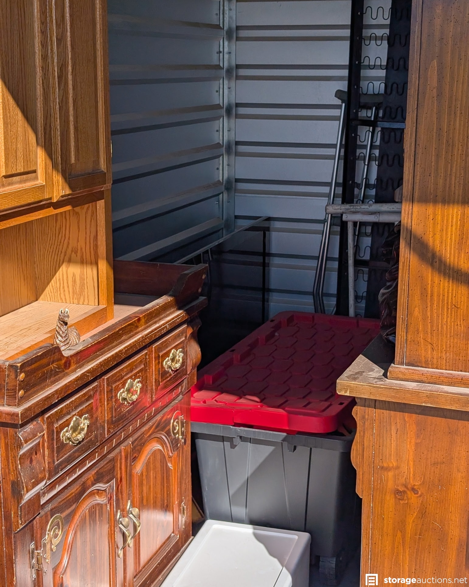 Additional Terms: **Tenants bidding on their own unit do not alleviate their debt obligation and will still owe the full balance due on the unit.** Auction units must be paid in Cash Only at the facility where the unit is located. ** Cleaning Deposit paid in Cash and only returned after approved inspection of unit. ** Auction buyer must show ID or have letter stating buyer's representative name and they must show ID to gain access to unit. **. Auction Buyers must contact the storage facility office where the unit is located within 72 hours after the auction ends to make arrangements to pay for and pick up the unit. 5** Buyer must clean unit out during office hours only. No gate access code will be given out. * You must have a Paid Invoice in order to pick up unit. * If you have an Unpaid Invoice, please update your credit card in your account and click *Pay Now* to generate a Paid Invoice. * You must be 18 years old to bid. *** You must provide a valid photo I.D. to the Site Manager. *** You must bring your own lock to secure the unit. *** You will not be allowed to enter the storage unit or touch any items prior to bidding. *** Sales are final and bids are for the entire unit. *** The Auctioneer has final say on all issues, including whether to refuse a bid if a bidder has disrupted an auction or violated any rules. *** Immediate cash payment is required when you purchase a unit. *** Sales tax may apply. If you have a resale license, bring a copy and present before payment. *** You have 72 hours to remove the contents entirely and broom sweep the unit. *** A $25 refundable cleaning deposit is also charged on every unit you buy. *** You must remove all of the contents and trash from the unit and facility grounds. *** There are no dumpsters on the facility property. *** Please advise the manager once you have completely emptied the unit. The manager will inspect that the unit is clean and then refund your cleaning deposit. *** If you would like to rent the unit after the auction, talk with manager to see if it's available. *** Smoking is prohibited on storage facility properties. *** No Pets allowed at facility *** Respect the Property, Managers, Tenants and other Buyers at all times. *** PERSONAL ITEMS FOUND WITHIN THE UNIT SHOULD BE RETURNED TO THE SITE MANAGER IMMEDIATELY. Thank you!