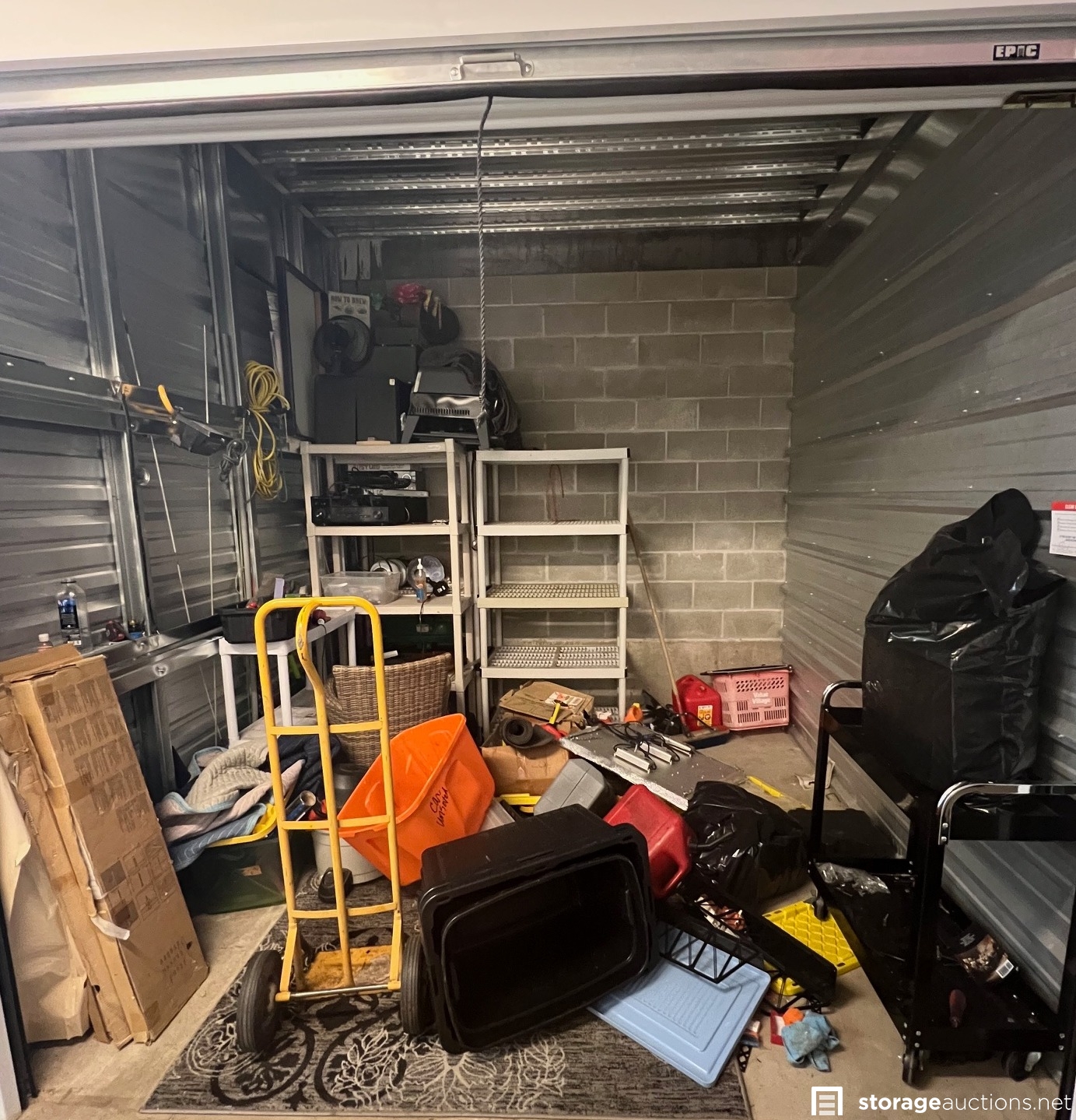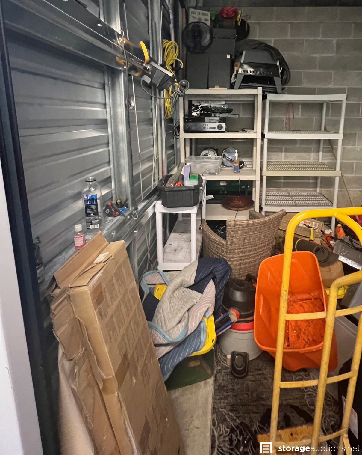 Additional Terms: AUCTION TERMS & CONDITIONS 1. We reserve the right to refuse service to anyone at any time for any reason. Auctions are public, but do not guarantee that all the members of the public can participate. 2. TERMS: EXACT CASH ONLY on award of bid. No change is availabel on site. All units must be paid for immediately no later than 5:00 pm on the day that Auction Bid is accepted. Winning bidder must appear in person with valid ID to pay and arrange for the clearance of the unit contents. 3. A $200.00 refundable cleaning deposit per unit is required. CASH ONLY. The Storage Facility may charge a higher deposit on extra-large units. Do not use the facility's dumpsters for trash. All items must be removed from the premises within 72 hours from winning bid. 4. Bidder agrees, understands and abides by all rules and regulations posted by the facility. The Bidder shall have access to the facility and the unit only during posted office hours 9:30 am to 5:30 pm Tuesday through Saturday. 5. All units are sold AS IS, WHERE IS. Storageauction.net, Facility Owner, Manager, or Agent makes no guarantees as to the contents of units. Unit buyers: beware of the possibility that all boxes may be full of trash or empty. If so, they are still yours since unit is sold AS IS. Newspaper legal ad may not agree with the goods in the unit. Do not speculate on what may be in the units. In accordance to Federal laws we are restricted from selling Alcohol, Tobacco, Firearms, Explosives and Controlled Substances. You are required to surrender these items to the Storage Co. and they will be surrendered to the proper authorities. 6. All sales are final. No refunds, exchanges, or credits of any kind will be made. 7. All personal papers (birth certificates, tax records, pictures, yearbooks, checking account information, etc.) found in storage unit should be returned to the storage company. If any of these terms are unacceptable or offensive to you, do not participate in the sale. 8. Bidder shall be responsible for anyone who is acting on behalf of bidder in any capacity and shall indemnify the storage facility, its Owner, Managers, and Agents, and Employees, etc. for any action whatsoever that may be born in any manner and hereby waive any claims against the storage facility. This waiver and responsibility shall also include any personal property damage, property damage to the self storage facility, its representatives, employees, occupants and customers. 9. The storage company is not responsible for losses due to fire, theft, vandalism, mysterious disappearances or any other events. Bidder shall provide insurance for losses incurred before, during and after sale. 10. The storage company reserves the right to bid. 11. Storage Company's liability for undeliverable units is limited to monies collected for purchase of unit(s) and cleaning deposit(s) only. The Storage Company will make all reasonable efforts to deliver unit or units to successful bidders. Bidder does not own these items until they are totally removed from the facility. The facility can claim items at any time without notice until they are totally removed. Any items that have been abandoned after 72 hours will be construed as abandoned property. Storage Company reserves the right to refuse to rent Storage Units to Auction Buyers. Bidder will not be refunded bid price and/or cleaning deposit. 12. The ultimate responsibility of the unit being emptied and cleaned is that of the buyer. The buyer is responsible no matter what arrangements have been made to have the unit emptied. Legal action will be taken against the buyer, for costs and/or time involved in cleaning any debris left behind. The bidder hereby agrees that the terms and conditions above as part of the Auction Terms & Conditions.