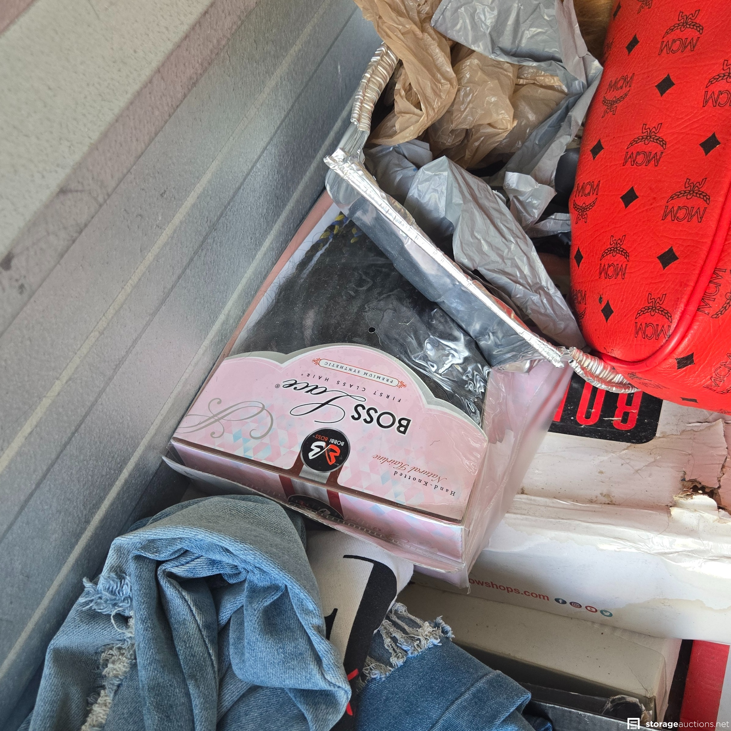 Designer handbag, handbags, clothes, shoes, bags, backpack, boxes, hair extensions, etc.