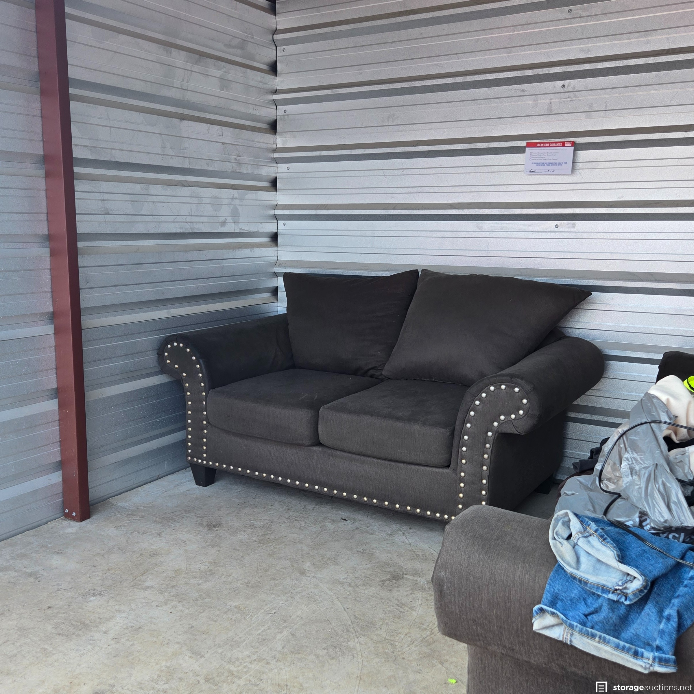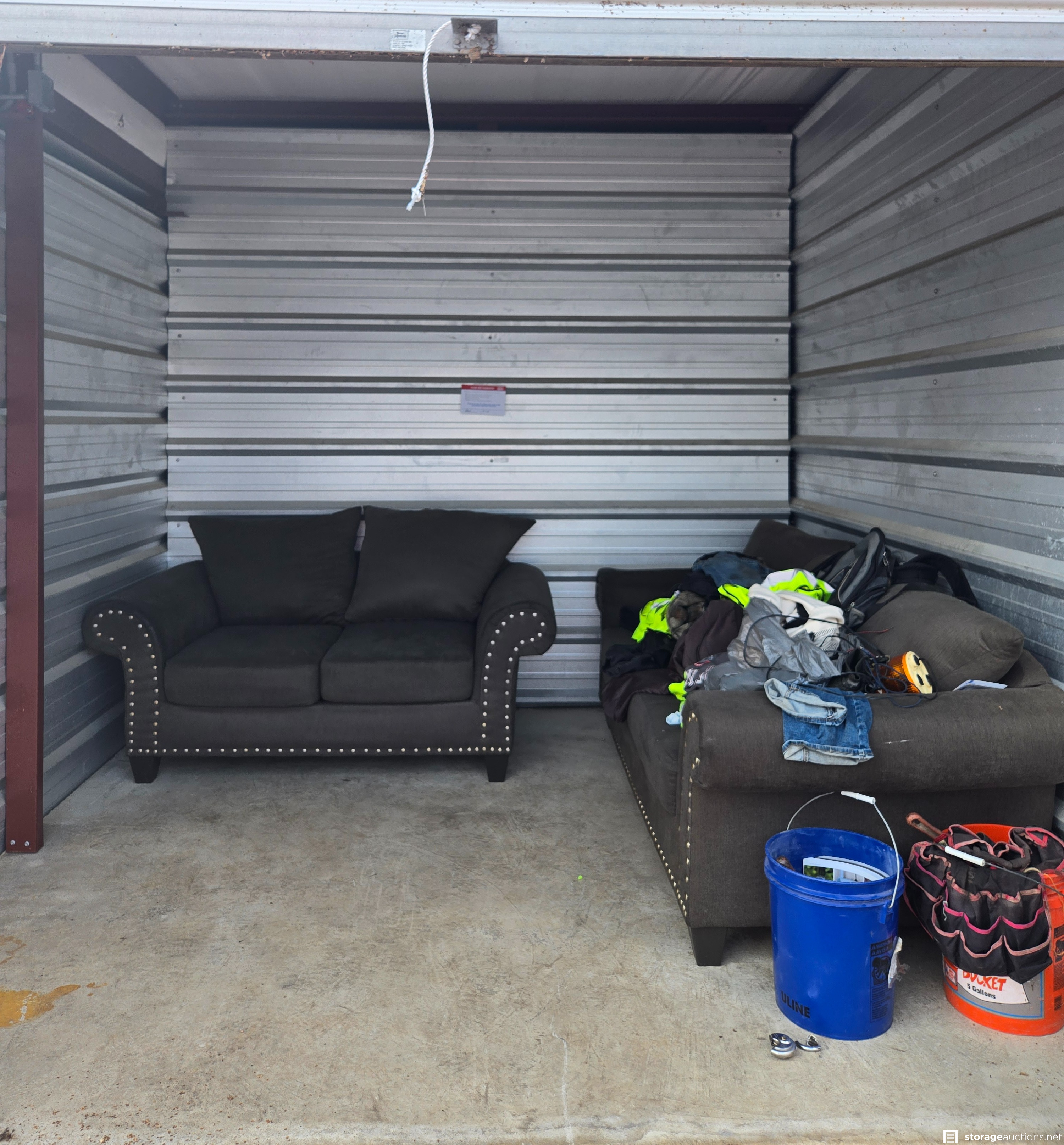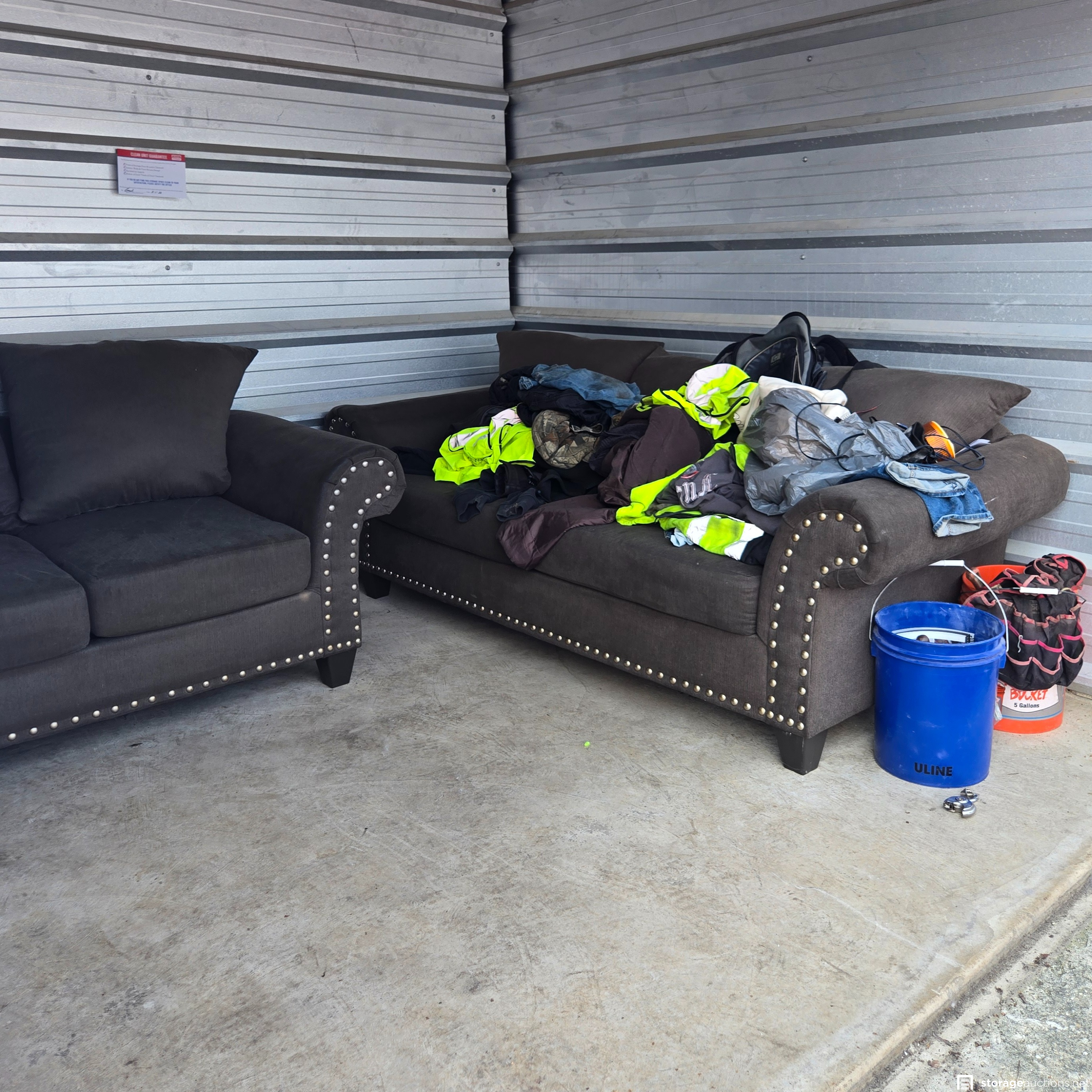 Additional Terms: VEHICLES NOT INCLUDED IN SALE!!!!!! 1. We reserve the right to refuse service to anyone at any time for any reason. Auctions are public, but do not guarantee that all the members of the public can participate. 2. TERMS: CASH ONLY on award of bid. All units must be paid for immediately no later than 5:00 pm on the day that Auction Bid is accepted. Winning bidder must appear in person with valid ID to pay and arrange for the clearance of the unit contents. 3. At discretion of Auctioneer, a minimum $200.00 refundable cleaning deposit per unit is required. CASH ONLY. The Storage Facility may charge a higher deposit on extra-large units. Do not use the facility's dumpsters for trash. All items must be removed from the premises within 72 hours from winning bid. 4. Bidder agrees, understands and abides by all rules and regulations posted by the facility. The Bidder shall have access to the facility and the unit only during posted office hours 9am to 6pm Monday through Saturday. 5. All units are sold AS IS, WHERE IS. Storageauctions.net, Facility Owner, Manager, or Agent makes no guarantees as to the contents of units. Box buyers: beware of the possibility that all boxes may be full of trash or empty. If so, they are still yours since unit is sold AS IS. Newspaper legal ad may not agree with the goods in the unit. Do not speculate on what may be in the units. In accordance to Federal laws we are restricted from selling Alcohol, Tobacco, Firearms, Explosives and Controlled Substances. You are required to surrender these items to the Storage Co. and they will be surrendered to the proper authorities. 6. All sales are final. No refunds, exchanges, or credits of any kind will be made. 7. All personal papers (birth certificates, tax records, pictures, yearbooks, checking account information, etc.) found in storage unit should be returned to the storage company. If any of these terms are unacceptable or offensive to you, do not participate in the sale. 8. Bidder shall be responsible for anyone who is acting on behalf of bidder in any capacity and shall indemnify the storage facility, its Owner, Managers, and Agents, and Employees, etc. for any action whatsoever that may be born in any manner and hereby waive any claims against the storage facility. This waiver and responsibility shall also include any personal property damage, property damage to the self-storage facility, its representatives, employees, occupants and customers. 9. The storage company is not responsible for losses due to fire, theft, vandalism, mysterious disappearances or any other events. Bidder shall provide insurance for losses incurred before, during and after sale. 10. The storage company reserves the right to bid. 11. Storage Company's liability for undeliverable units is limited to monies collected for purchase of unit(s) and cleaning deposit(s) only. The Storage Company will make all reasonable efforts to deliver unit or units to successful bidders. Bidder does not own these items until they are totally removed from the facility. The facility can claim items at any time without notice until they are totally removed. Any items that have been abandoned after 72 hours will be construed as abandoned property. Storage Company reserves the right to refuse to rent Storage Units to Auction Buyers. Bidder will not be refunded bid price and/or cleaning deposit. 12. The ultimate responsibility of the unit being emptied and cleaned is that of the buyer. The buyer is responsible no matter what arrangements have been made to have the unit emptied. Legal action will be taken against the buyer, for costs and/or time involved in cleaning any debris left behind. The bidder hereby agrees that the terms and conditions above as part of the Auction Terms & Conditions.
