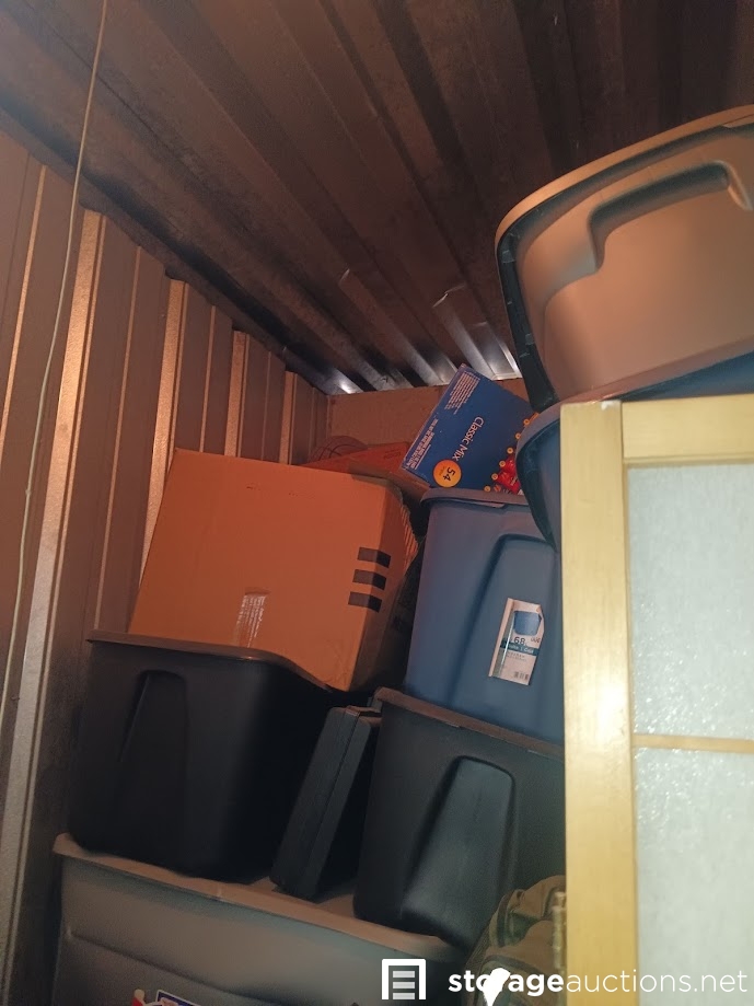 Additional Terms: VERY IMPORTANT - READ BEFORE YOU BID: -ALL ALCOHOL WILL BE REMOVED AFTER SALE -Contact the facility immediately when auction ends to arrange payment for and pick up of the unit contents -You will not be allowed to enter the storage unit or touch any items prior to bidding -StorageAuction.net has final say on all issues including whether to refuse a bid if a bidder has disrupted an auction or violated our Terms of Use PAYMENT AND TERMS: -Buyers must be at least 18 years old to bid -You must have a Paid Invoice in order to pick up unit contents -If you have an Unpaid Invoice, please update your credit card in your account and click Pay Now to generate a Paid Invoice -You must provide a valid Photo I.D. to the Site Manager -A refundable cleaning deposit may also be charged -Sales tax will be charged at the facility's office at the time of purchase unless a copy of a resale license is provided. -Immediate payment is required prior to gaining access to the unit -Sales are final and bids are for the entire unit -You must bring your own lock to secure the unit PICK UP AND DISPOSAL: -You must remove all contents and broom sweep the unit within the required clean-out time -You are not allowed to use the on-site dumpsters -If you would like to rent the unit after the auction, the manager can assist you -Smoking is prohibited on the property -Please advise the manager once you have completely emptied the unit. The manager will inspect that the unit is clean and then refund your cleaning deposit -Do not park in customer parking -No pets allowed at facility -Respect the property, managers, tenants, and other buyers at all times -PERSONAL ITEMS FOUND WITHIN THE UNIT SHOULD BE RETURNED TO THE SITE MANAGER IMMEDIATELY. Thank you!