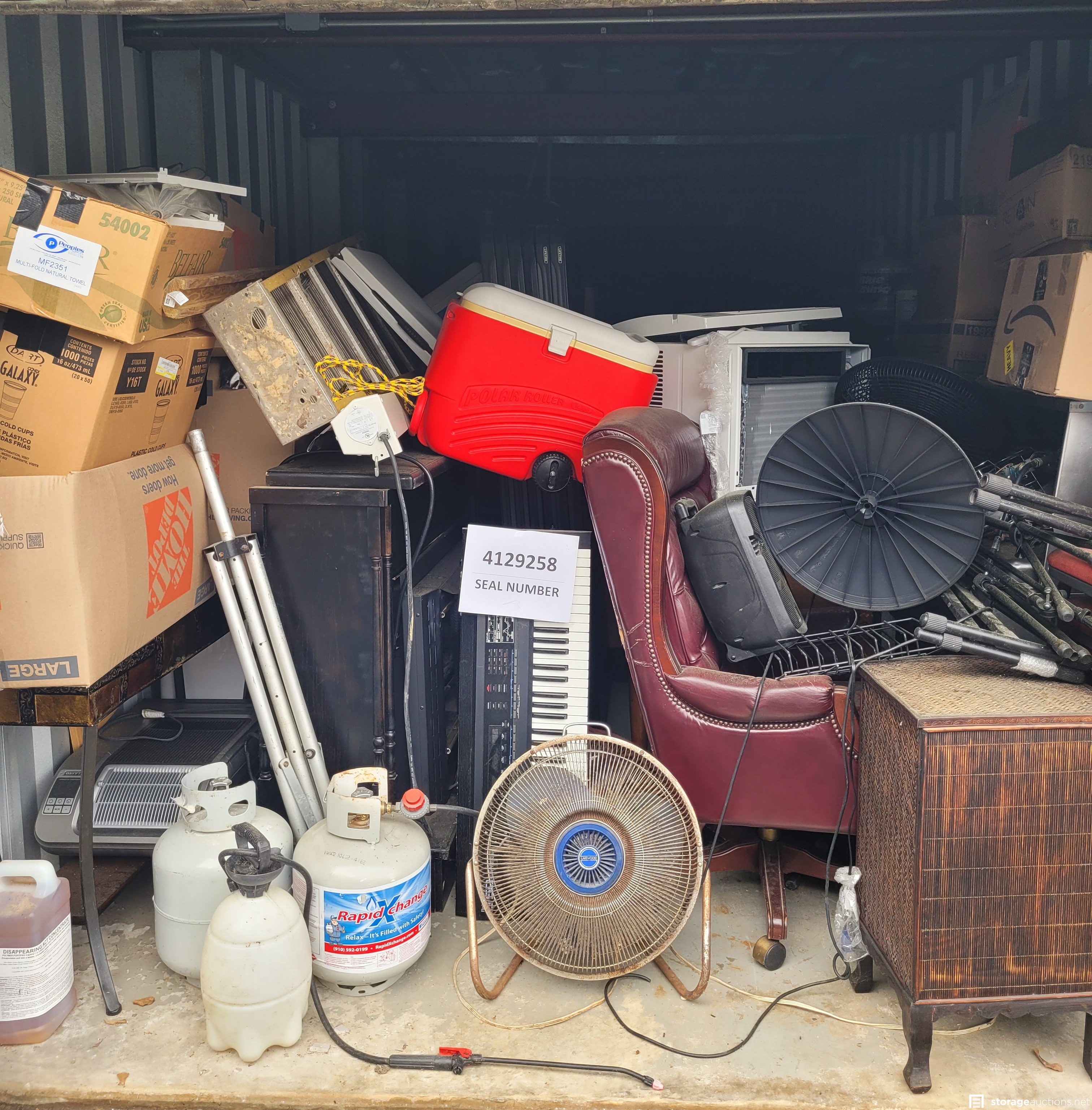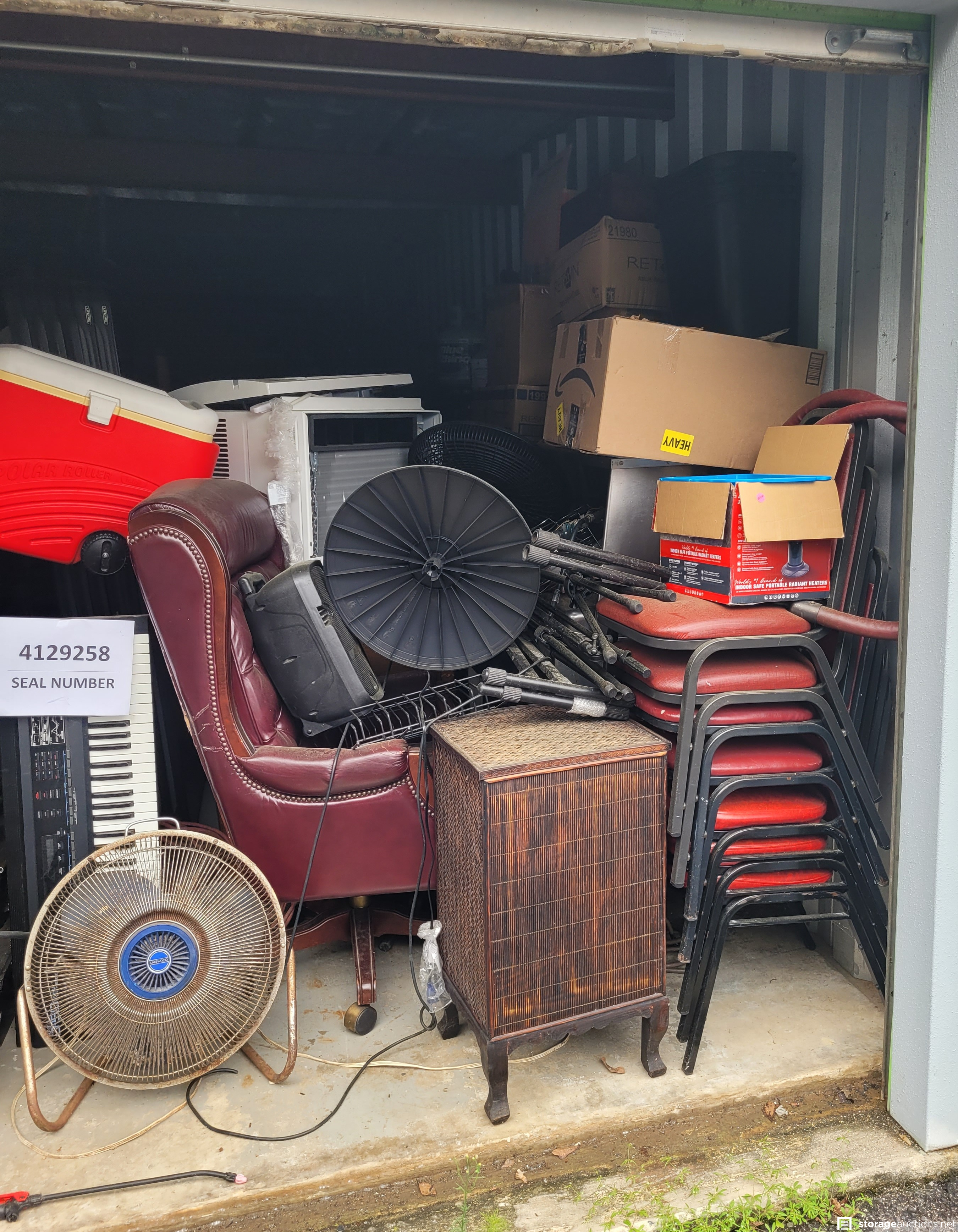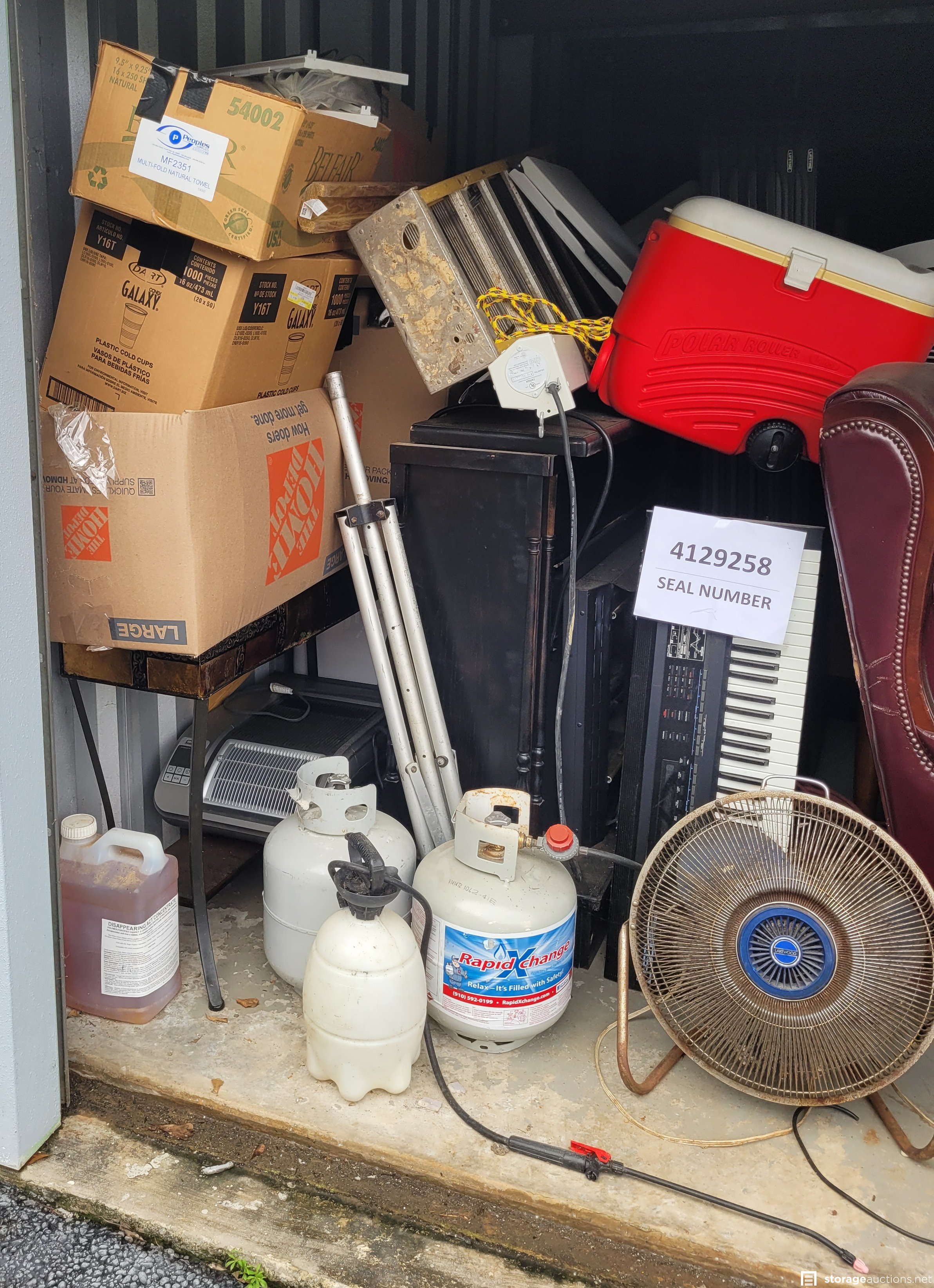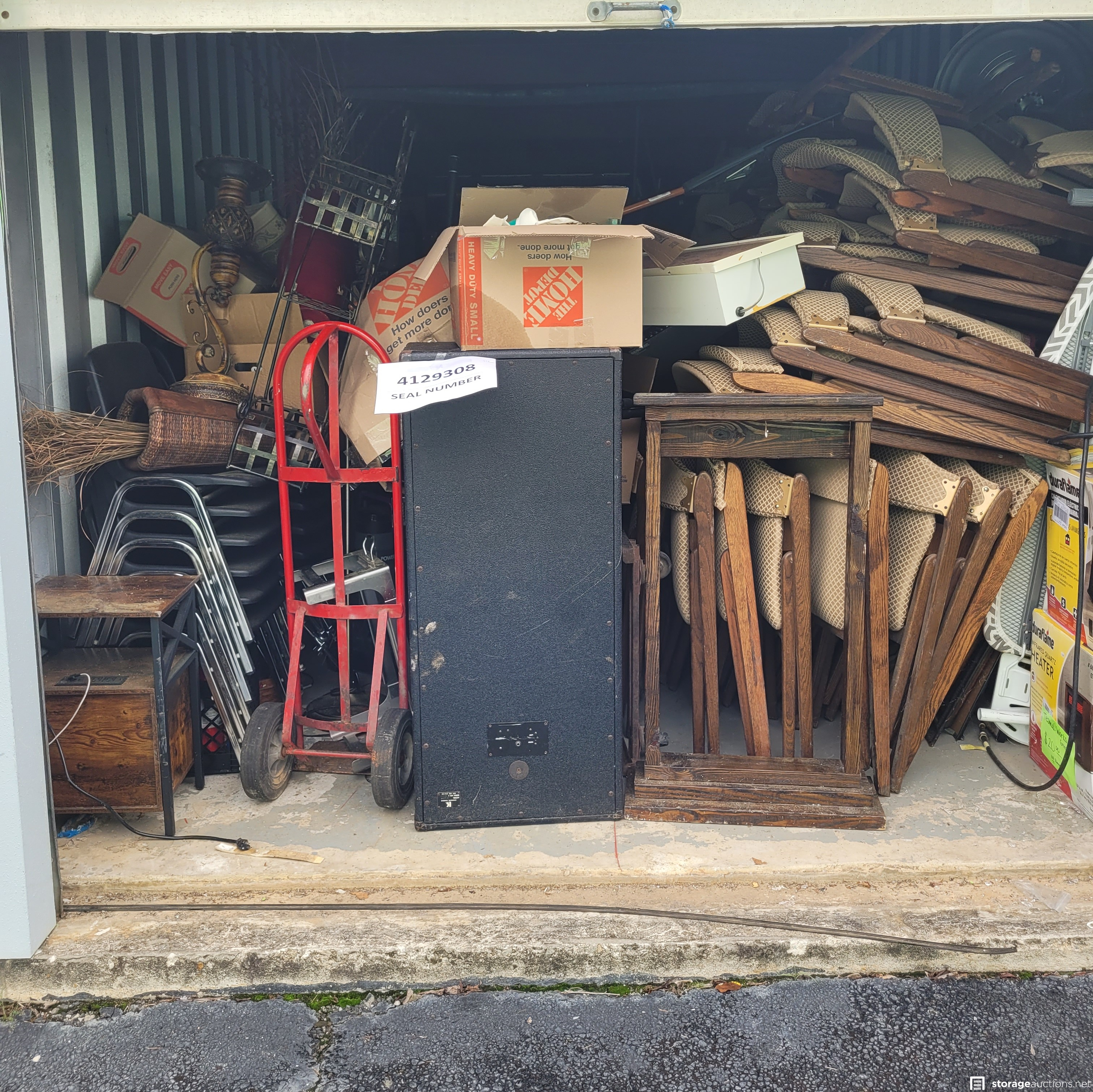 Additional Terms: All units must be paid for at the time of sale. Credit card and Money Orders will be the only forms of payment accepted. No checks or Cash. No one under the age of 18 is allowed to attend the sale. Each person attending must agree to follow all Rules and Regulations of the sale. The landlord reserves the right to bid at the sale. All purchased goods are sold "as is" and must be removed by 5:00 p.m. on the day following the sale. Buyers must provide a current, original or a photocopy of their original resale permit at time of sale in lieu of sales tax. This sale is subject to cancellation in the event of settlement between landlord and obligated party
