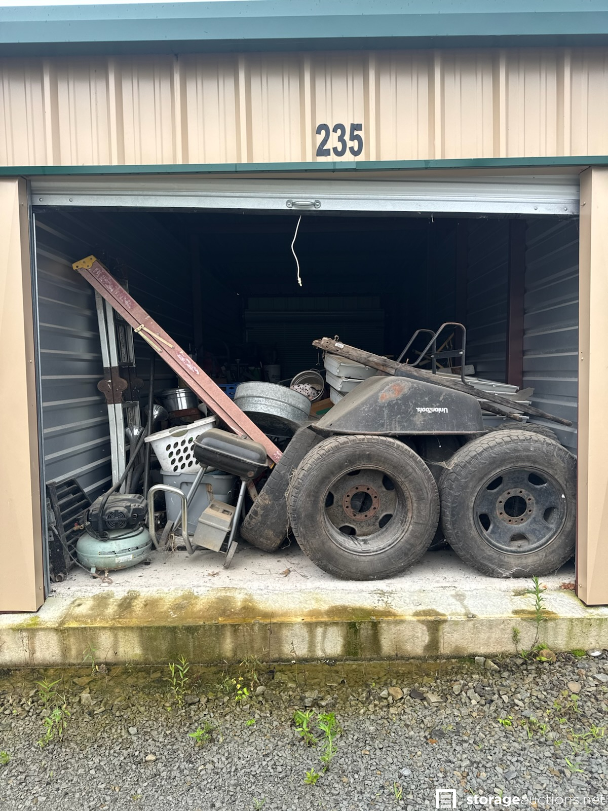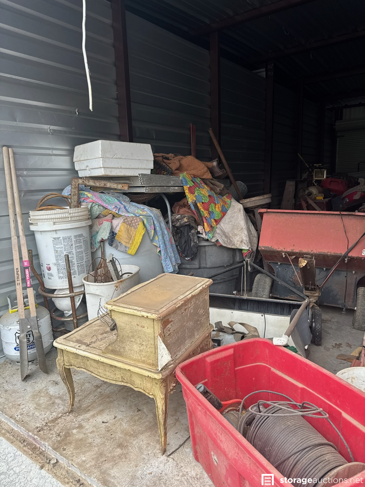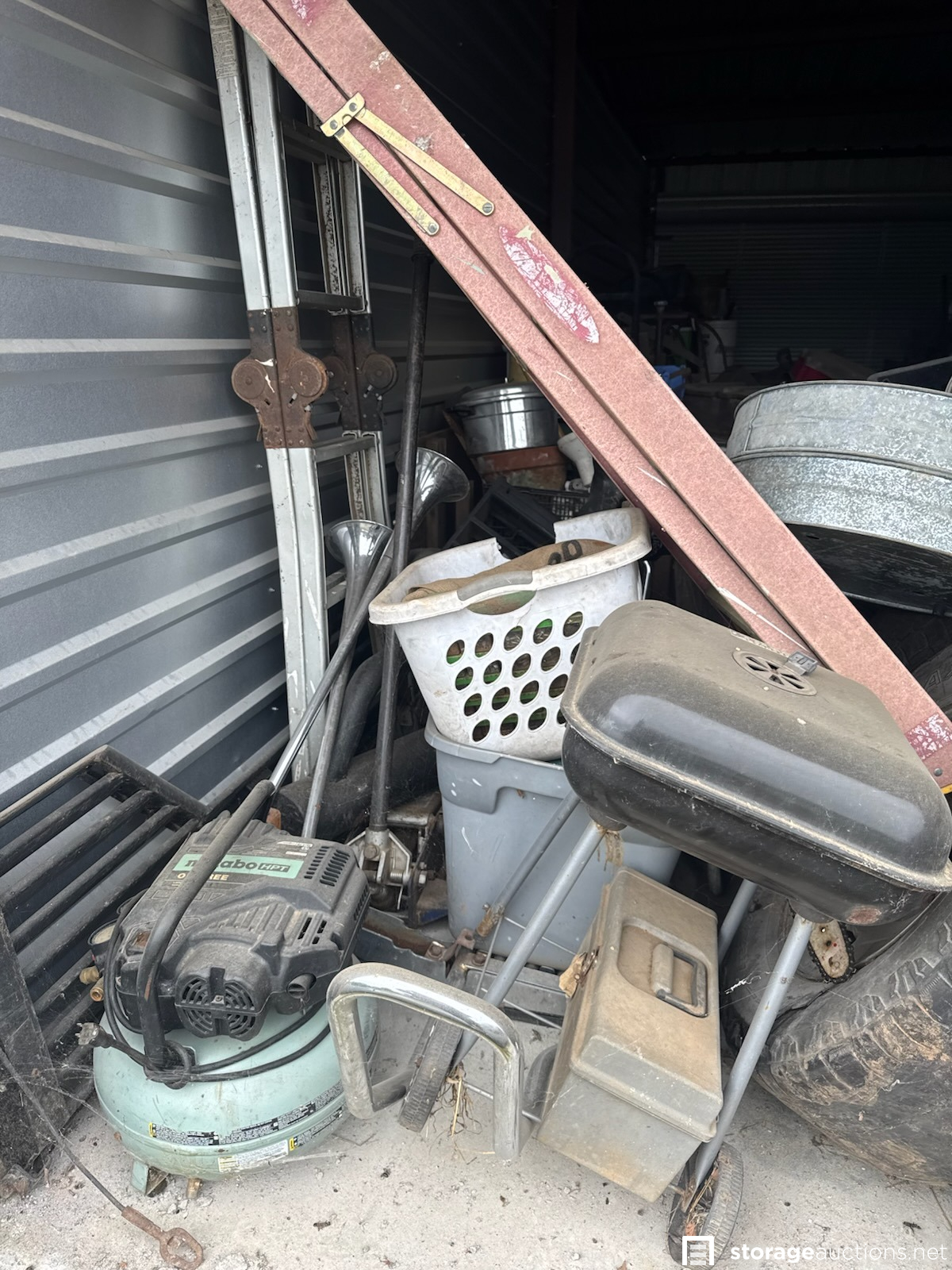 Unit is a 10x30. Inventory: tools, toolboxes, ladders, furniture, air compressors, tires, household goods, etc.