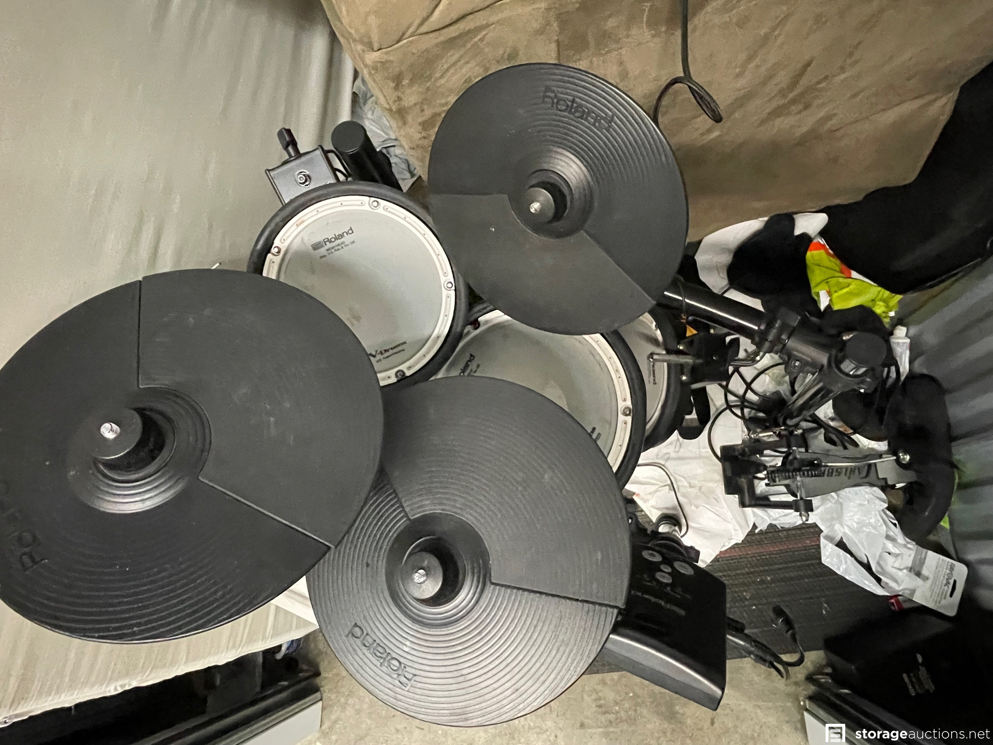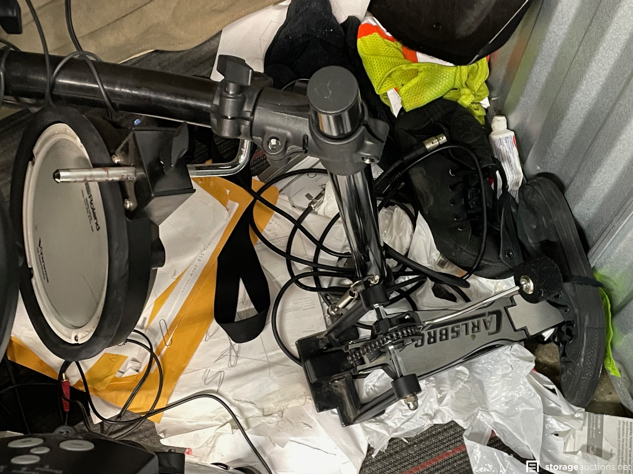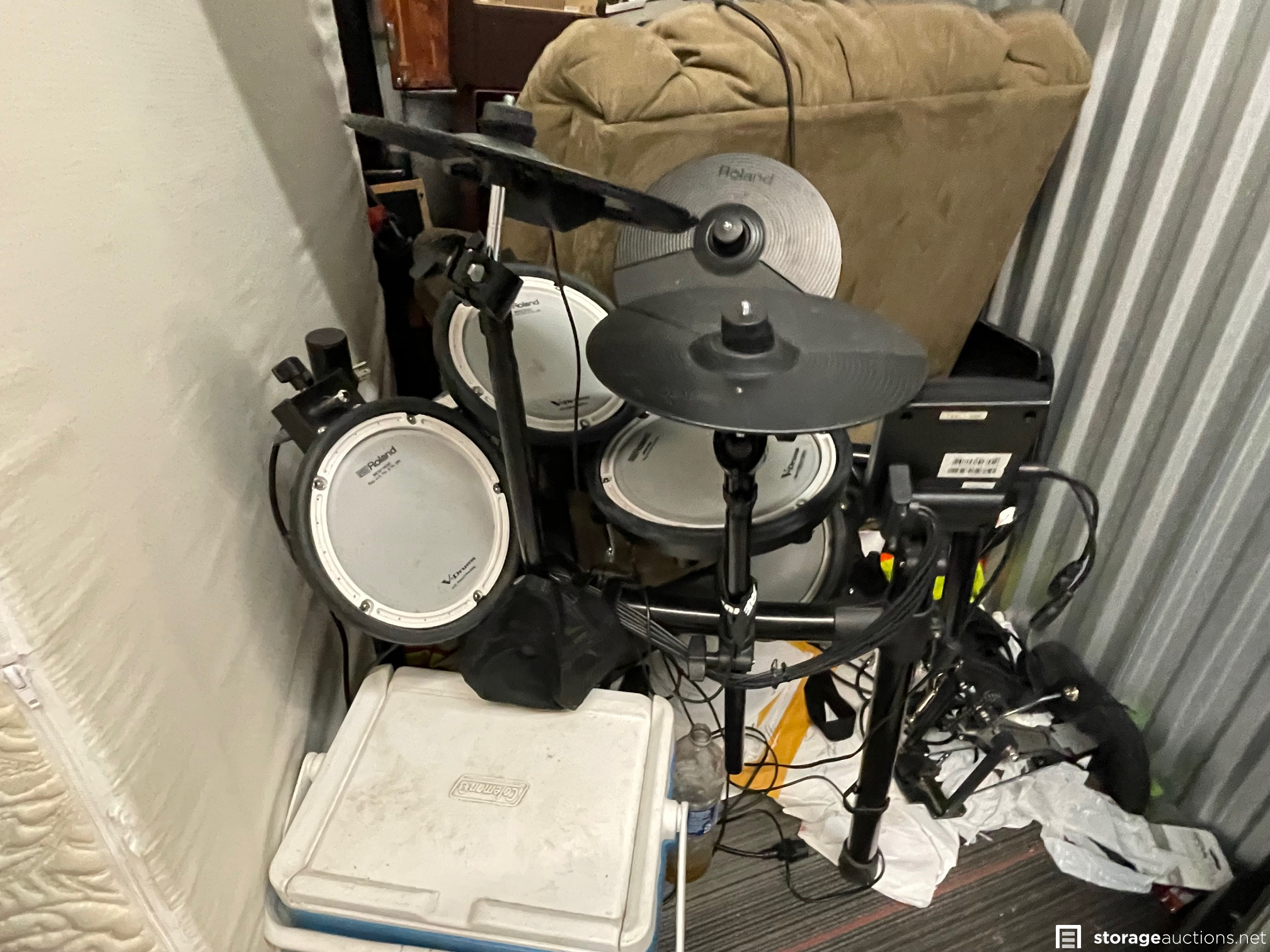 DRUM SET, STEREO, MATTRESS, RECLINER, COOLER, MISC TOTES, MISC ITEMS