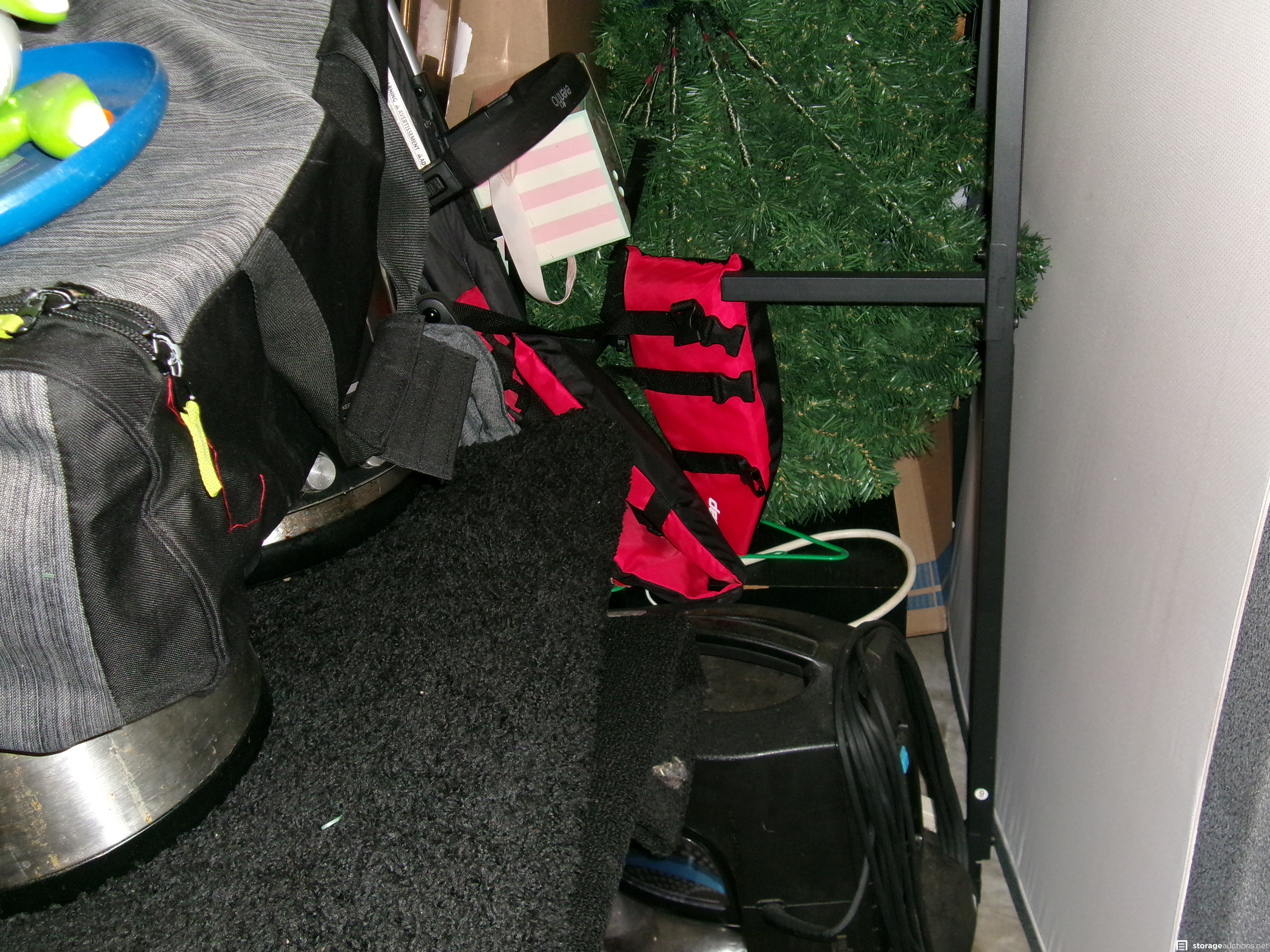 Kitchenware, Floor lamp, toys, xmas tree, life jacket, rug, bed frame, shelfs, stroller, totes, stuffed animals, duffle bag, speaker