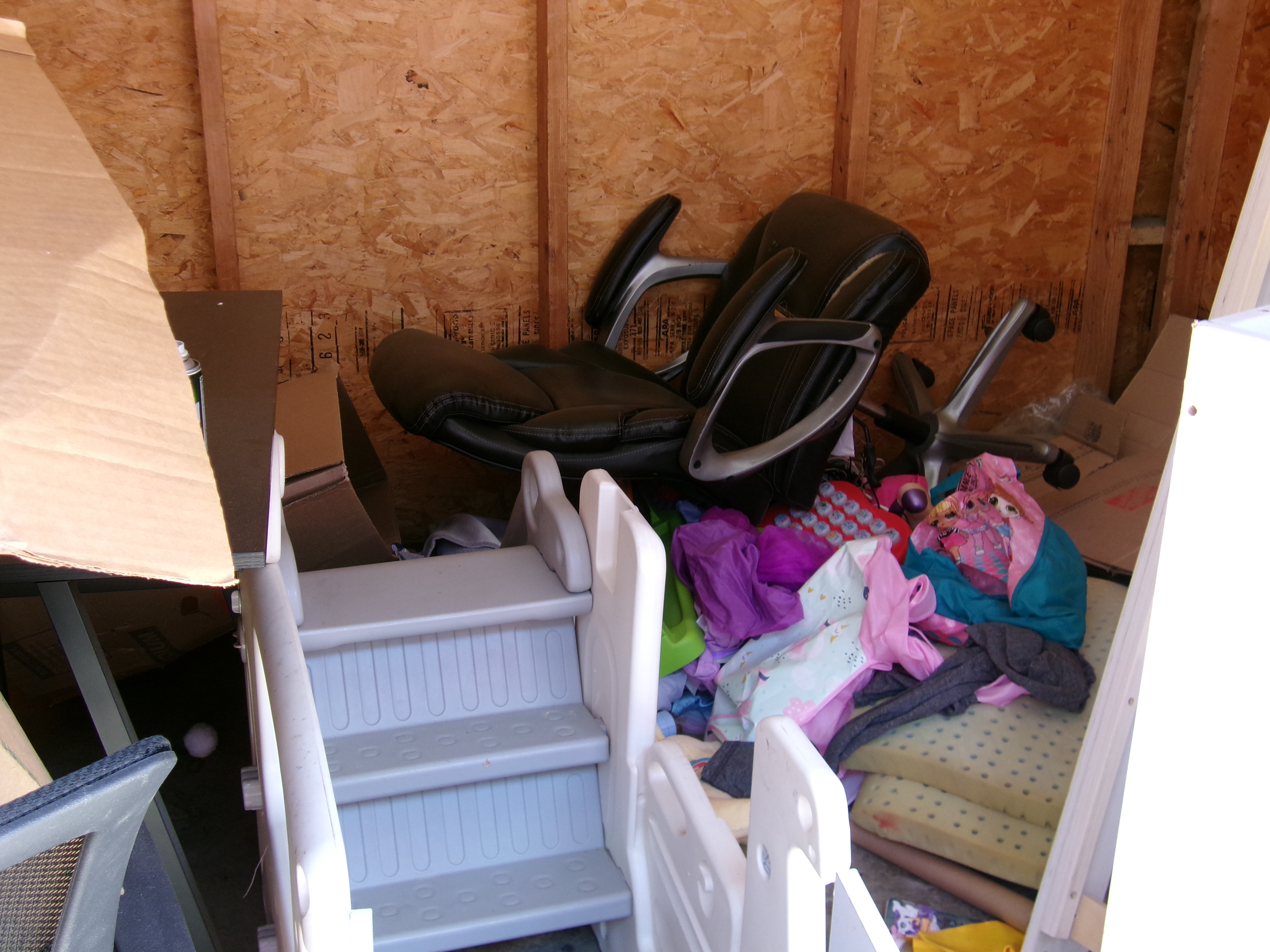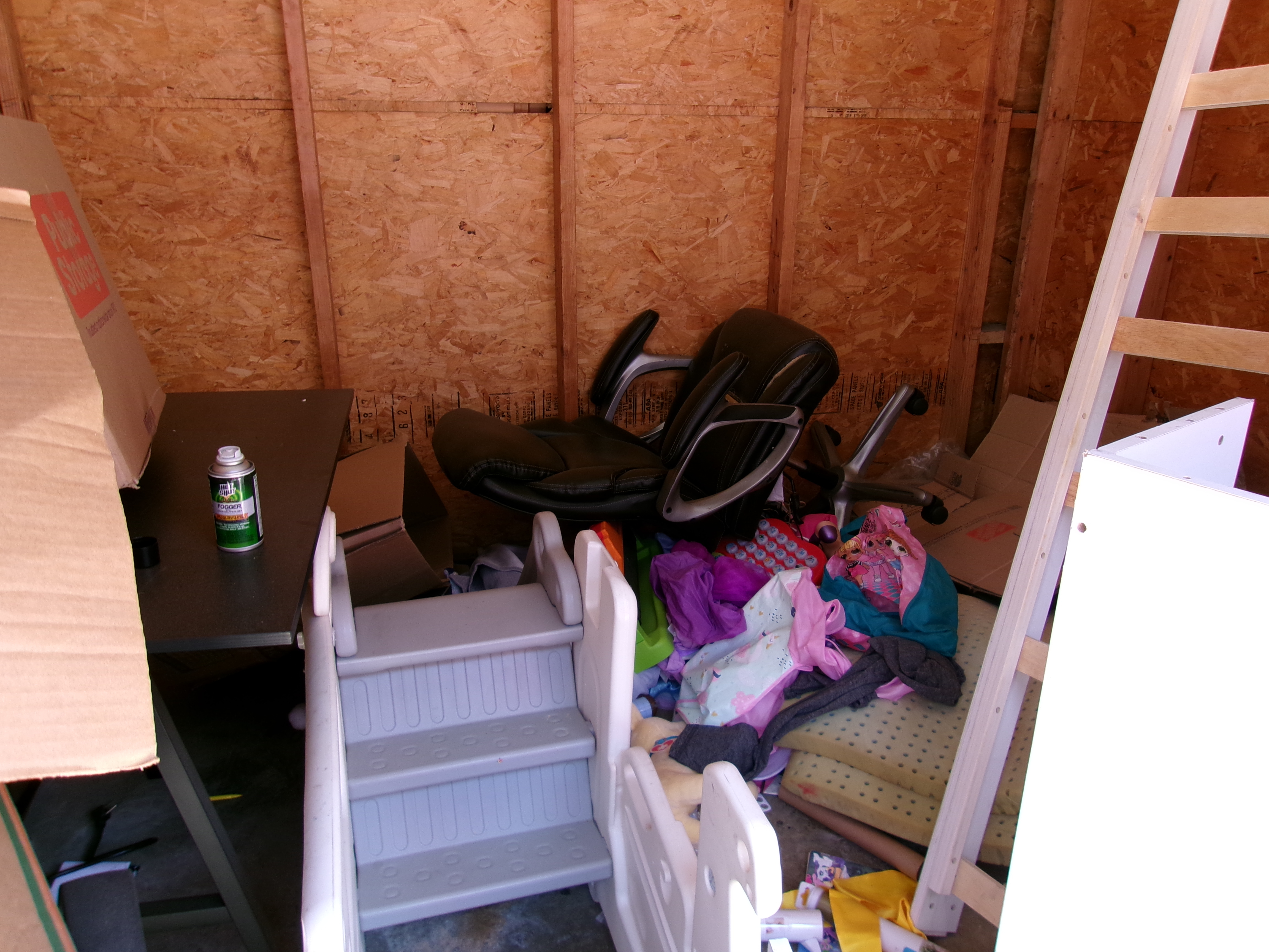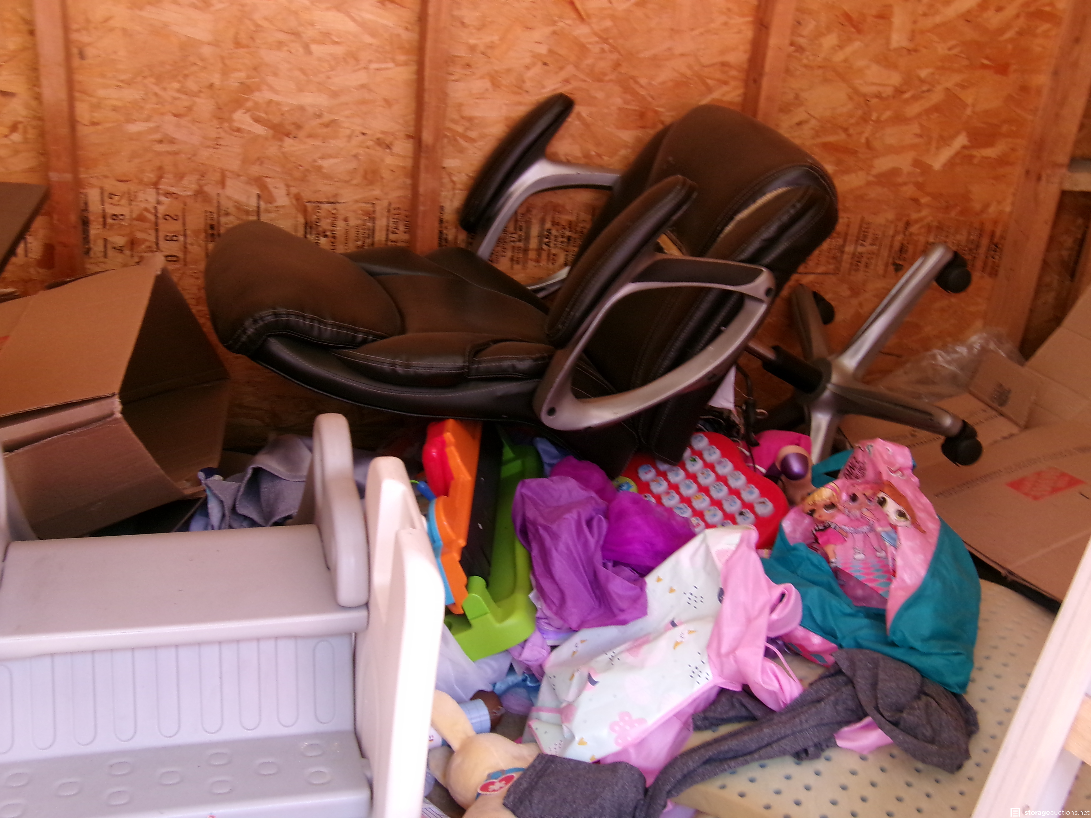 Office Chairs, Bunk bed frame, table, kids play set, boxes, wall art, side table