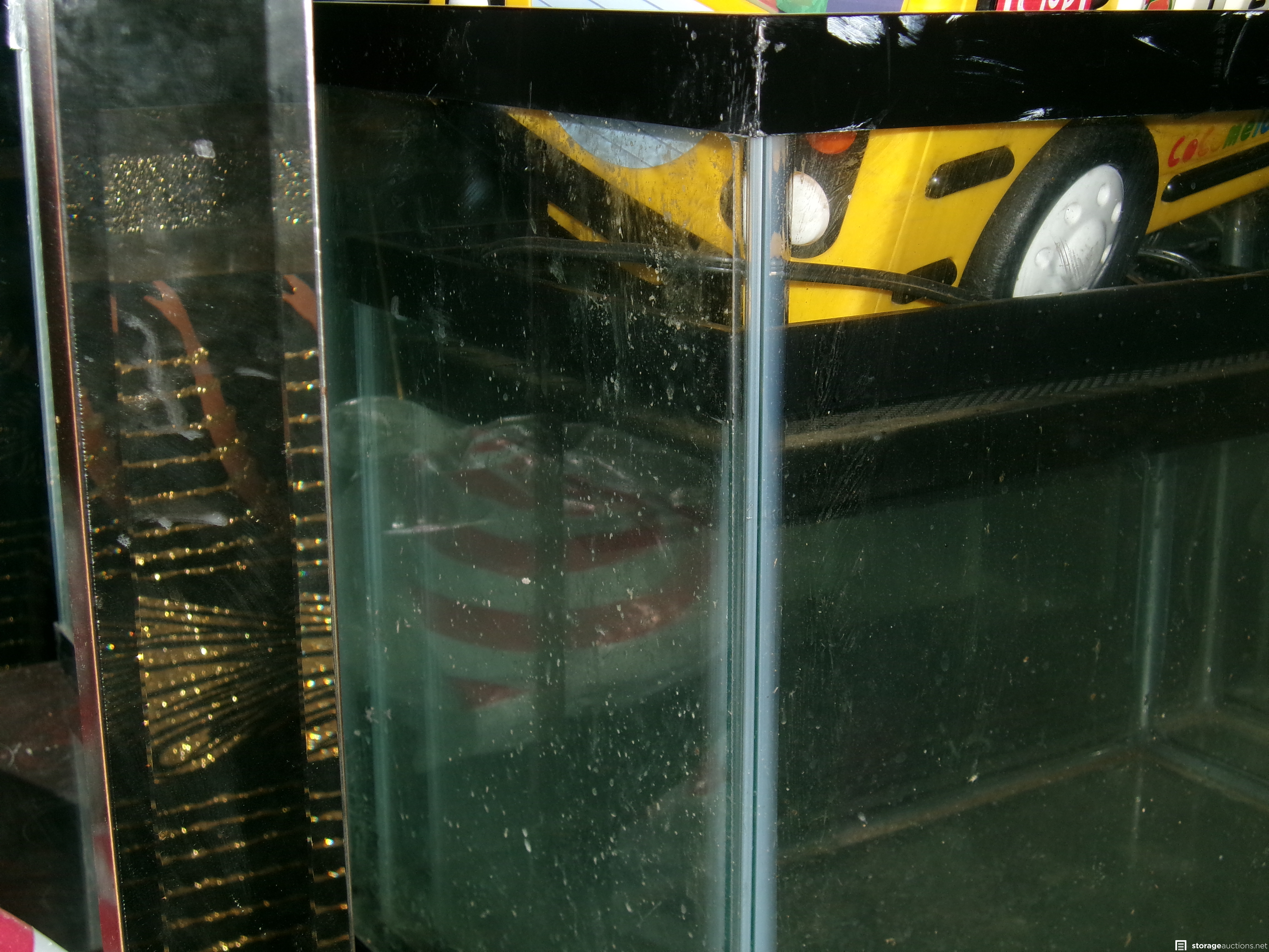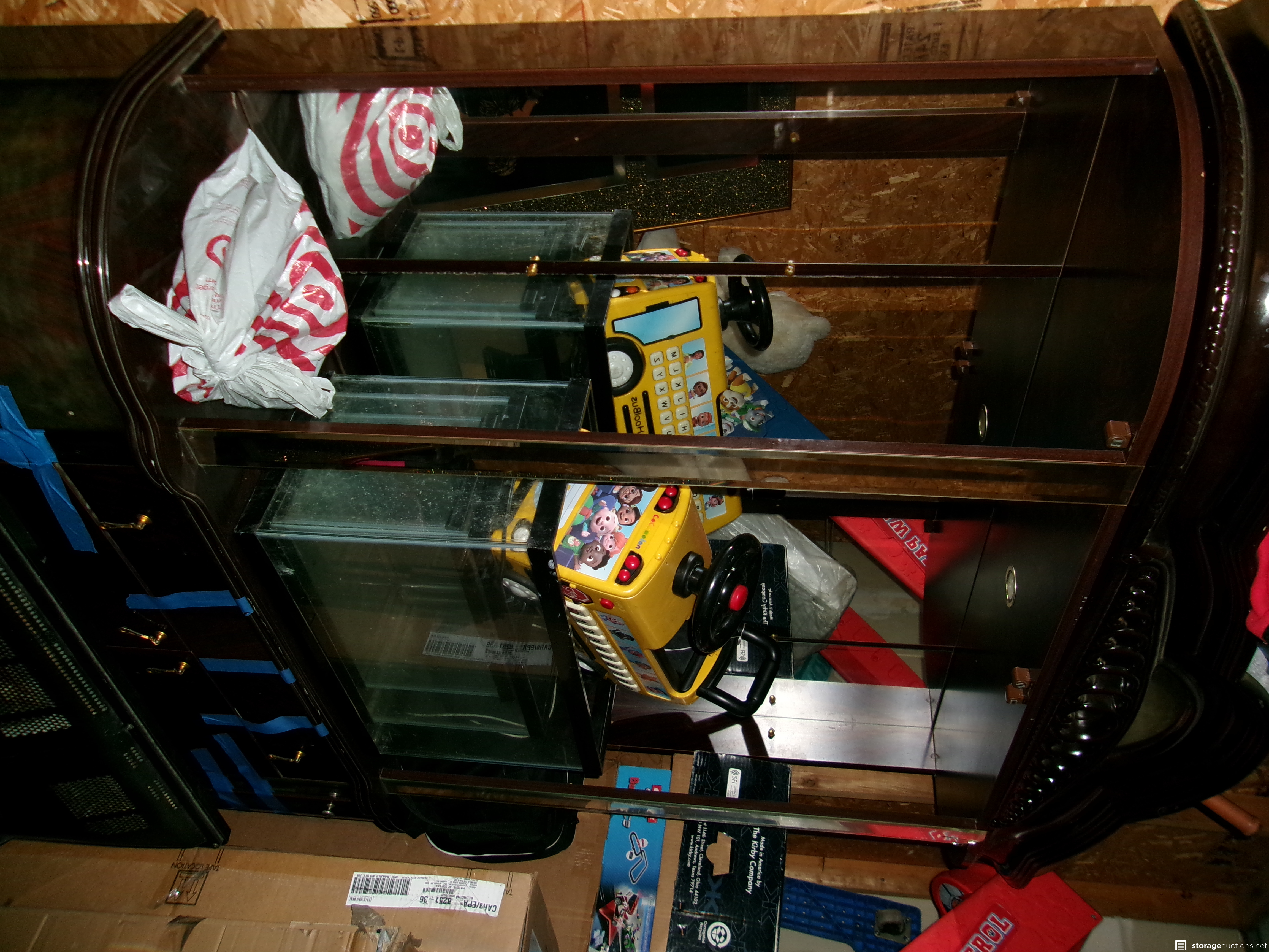 Glass Hutch, Flat screen TV, Kid Bed, Aquarium Tanks, Wall art, Stuffed animal, Toys, Boxes