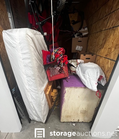 Additional Terms: 1. We reserve the right to refuse service to anyone at any time for any reason. Auctions are public, but do not guarantee that all the members of the public can participate. 2. TERMS: CASH ONLY on award of bid. All units must be paid for immediately no later than 5:00 pm on the day that Auction Bid is accepted. Winning bidder must appear in person with valid ID to pay and arrange for the clearance of the unit contents. 3. At discretion of Auctioneer, a minimum $200.00 refundable cleaning deposit per unit is required. CASH ONLY. The Storage Facility may charge a higher deposit on extra-large units. Do not use the facility's dumpsters for trash. All items must be removed from the premises within 72 hours from winning bid. 4. Bidder agrees, understands and abides by all rules and regulations posted by the facility. The Bidder shall have access to the facility and the unit only during posted office hours 9:30am to 5:00pm Tuesday through Saturday. 5. All units are sold AS IS, WHERE IS. Storageauctions.net, Facility Owner, Manager, or Agent makes no guarantees as to the contents of units. Box buyers: beware of the possibility that all boxes may be full of trash or empty. If so, they are still yours since unit is sold AS IS. Newspaper legal ad may not agree with the goods in the unit. Do not speculate on what may be in the units. In accordance to Federal laws we are restricted from selling Alcohol, Tobacco, Firearms, Explosives and Controlled Substances. You are required to surrender these items to the Storage Co. and they will be surrendered to the proper authorities. 6. All sales are final. No refunds, exchanges, or credits of any kind will be made. 7. All personal papers (birth certificates, tax records, pictures, yearbooks, checking account information, etc.) found in storage unit should be returned to the storage company. If any of these terms are unacceptable or offensive to you, do not participate in the sale. 8. Bidder shall be responsible for anyone who is acting on behalf of bidder in any capacity and shall indemnify the storage facility, its Owner, Managers, and Agents, and Employees, etc. for any action whatsoever that may be born in any manner and hereby waive any claims against the storage facility. This waiver and responsibility shall also include any personal property damage, property damage to the self-storage facility, its representatives, employees, occupants and customers. 9. The storage company is not responsible for losses due to fire, theft, vandalism, mysterious disappearances or any other events. Bidder shall provide insurance for losses incurred before, during and after sale. 10. The storage company reserves the right to bid. 11. Storage Company's liability for undeliverable units is limited to monies collected for purchase of unit(s) and cleaning deposit(s) only. The Storage Company will make all reasonable efforts to deliver unit or units to successful bidders. Bidder does not own these items until they are totally removed from the facility. The facility can claim items at any time without notice until they are totally removed. Any items that have been abandoned after 72 hours will be construed as abandoned property. Storage Company reserves the right to refuse to rent Storage Units to Auction Buyers. Bidder will not be refunded bid price and/or cleaning deposit. 12. The ultimate responsibility of the unit being emptied and cleaned is that of the buyer. The buyer is responsible no matter what arrangements have been made to have the unit emptied. Legal action will be taken against the buyer, for costs and/or time involved in cleaning any debris left behind. The bidder hereby agrees that the terms and conditions above as part of the Auction Terms & Conditions.