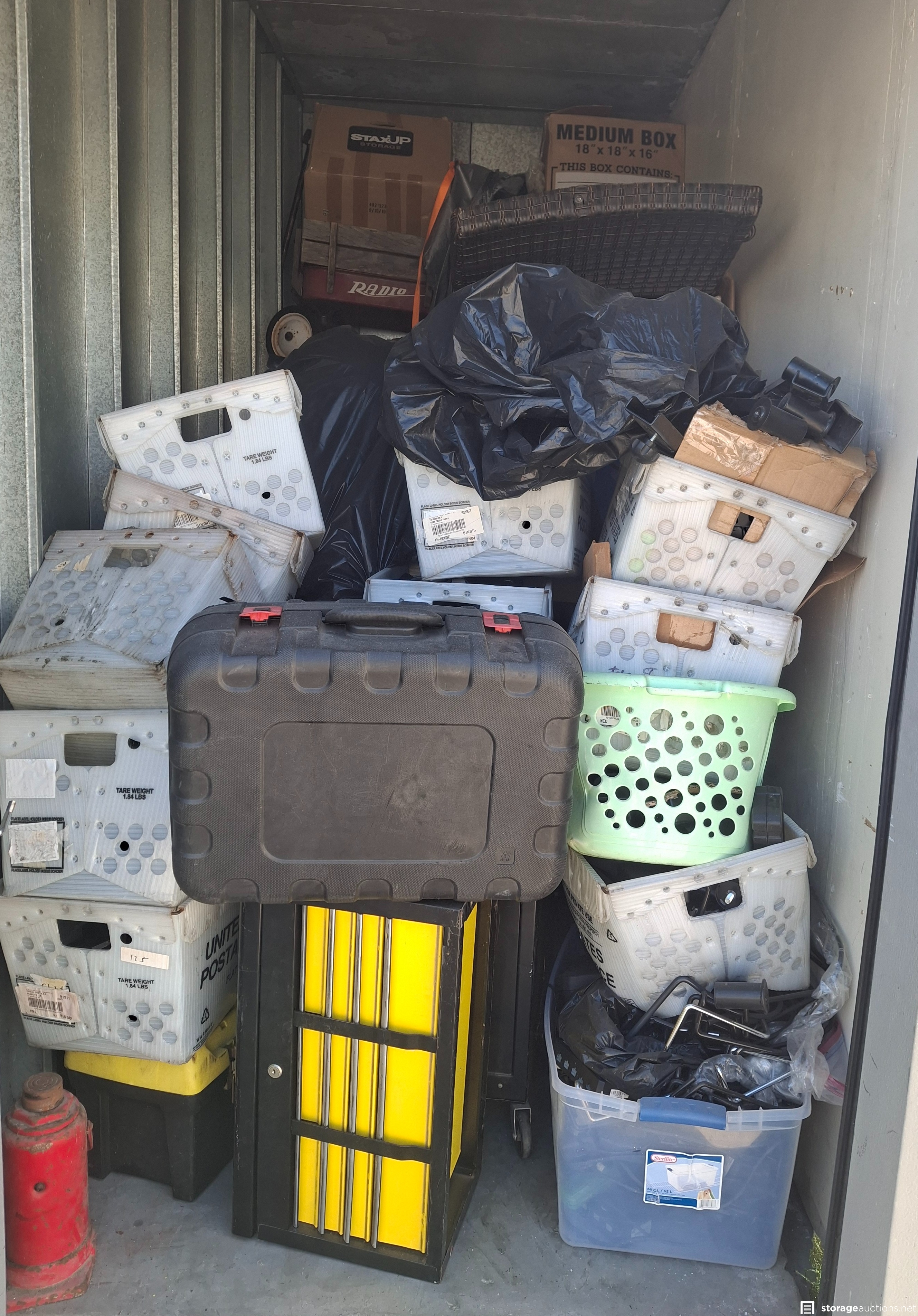 Additional Terms: VERY IMPORTANT - READ BEFORE YOU BID: -ALL ALCOHOL WILL BE REMOVED AFTER SALE -Contact the facility immediately when auction ends to arrange payment for and pick up of the unit contents -You will not be allowed to enter the storage unit or touch any items prior to bidding -StorageAuction.net has final say on all issues including whether to refuse a bid if a bidder has disrupted an auction or violated our Terms of Use PAYMENT AND TERMS: -Buyers must be at least 18 years old to bid -You must have a Paid Invoice in order to pick up unit contents -If you have an Unpaid Invoice, please update your credit card in your account and click Pay Now to generate a Paid Invoice -You must provide a valid Photo I.D. to the Site Manager -A refundable cleaning deposit may also be charged -Sales tax will be charged at the facility's office at the time of purchase unless a copy of a resale license is provided. -Immediate payment is required prior to gaining access to the unit -Sales are final and bids are for the entire unit -You must bring your own lock to secure the unit PICK UP AND DISPOSAL: -You must remove all contents and broom sweep the unit within the required clean-out time -You are not allowed to use the on-site dumpsters -If you would like to rent the unit after the auction, the manager can assist you -Smoking is prohibited on the property -Please advise the manager once you have completely emptied the unit. The manager will inspect that the unit is clean and then refund your cleaning deposit -Do not park in customer parking -No pets allowed at facility -Respect the property, managers, tenants, and other buyers at all times -PERSONAL ITEMS FOUND WITHIN THE UNIT SHOULD BE RETURNED TO THE SITE MANAGER IMMEDIATELY. Thank you!