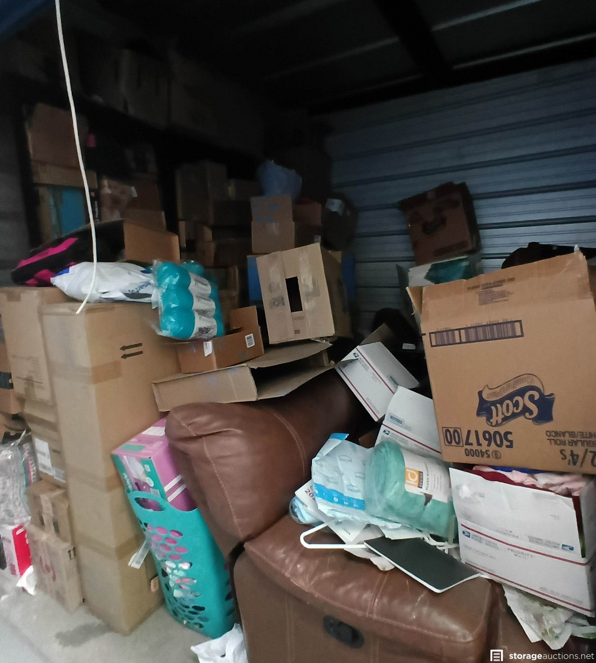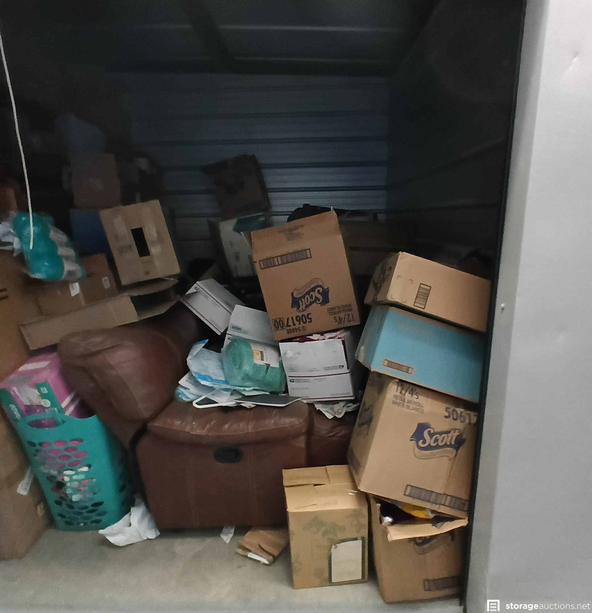 This Unit Contains: A couch, Boxes, Clothes, Tool Bag, Yarn