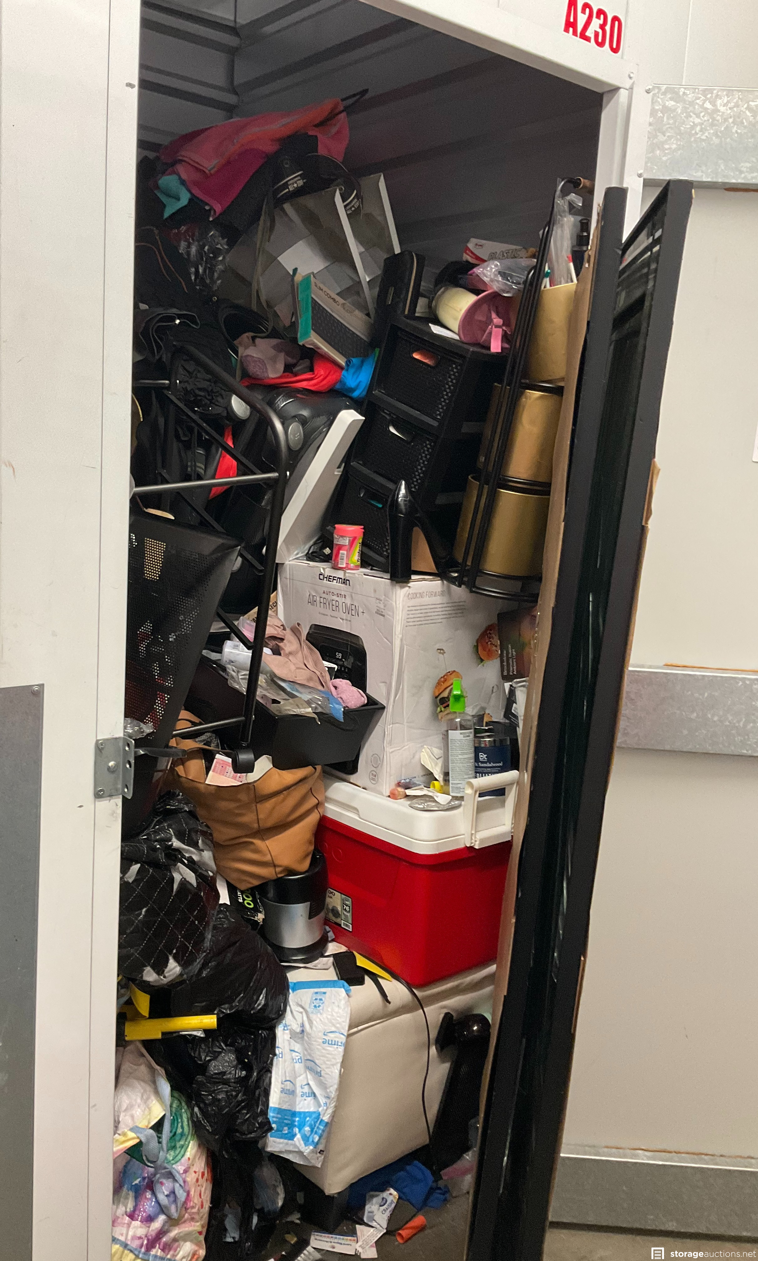 Additional Terms: AUCTION TERMS & CONDITIONS 1. We reserve the right to refuse service to anyone at any time for any reason. Auctions are public, but do not guarantee that all the members of the public can participate. 2. TERMS: CASH ONLY on award of bid. All units must be paid for immediately no later than 5:45 pm on the day the auction is final. 3. At discretion of Auctioneer, a minimum $100.00 refundable cleaning deposit per. unit is required. CASH ONLY. The Auctioneer may charge a higher deposit on extra-large units. Do not use the facility???s dumpsters for trash. All items must be removed from the premises within 72 hours from winning bid. 4. Bidder agrees, understands and abides by all rules and regulations posted by the facility. The Bidder shall have access to the facility and the unit only during posted office hours 9am to 6pm. 5. All units are sold ???AS IS, WHERE IS.??? The Auctioneer, Facility Owner, Manager, or Agent makes no guarantees as to the contents of units. Box buyers: beware of the possibility that all boxes may be full of trash or empty. If so, they are still yours since unit is sold ???AS IS.??? Newspaper legal ad may not agree with the goods in the unit. Do not speculate on what may be in the units. 6. All sales are final. No refunds, exchanges, or credits of any kind will be made. 7. All personal papers (birth certificates, tax records, pictures, yearbooks, checking account information, etc.) found in storage unit should be returned to the storage company. If any of these terms are unacceptable or offensive to you, do not participate in the sale. 8. Bidder shall be responsible for anyone who is acting on behalf of bidder in any capacity and shall indemnify the storage facility, its Owner, Managers, and Agents, and Employees, etc. for any action whatsoever that may be born in any manner and hereby waive any claims against the storage facility. This waiver and responsibility shall also include any personal property damage, property damage to the self storage facility, its representatives, employees, occupants and customers. 9. The storage company is not responsible for losses due to fire, theft, vandalism, mysterious disappearances or any other events. Bidder shall provide insurance for losses incurred before, during and after sale. 10. The storage company reserves the right to bid. 11. Storage Company???s liability for undeliverable units is limited to monies collected for purchase of unit(s) and cleaning deposit(s) only. The Auctioneer will make all reasonable efforts to deliver units to successful bidders. Bidder does not own these units until they are totally removed from the facility. The facility can claim units at any time without notice until they are totally removed. Any items that have been abandoned after seven days will be construed as abandoned property. Bidder will not be refunded bid price and/or cleaning deposit. 12. The ultimate responsibility of the unit being emptied and cleaned is that of the buyer. The buyer is responsible no matter what arrangements have been made to have the unit emptied. Legal action will be taken against the buyer, for costs and/or time involved in cleaning any debris left behind. The bidder hereby agrees that the terms and conditions above and on the reverse side are incorporated as part of the Auction Terms & Conditions.