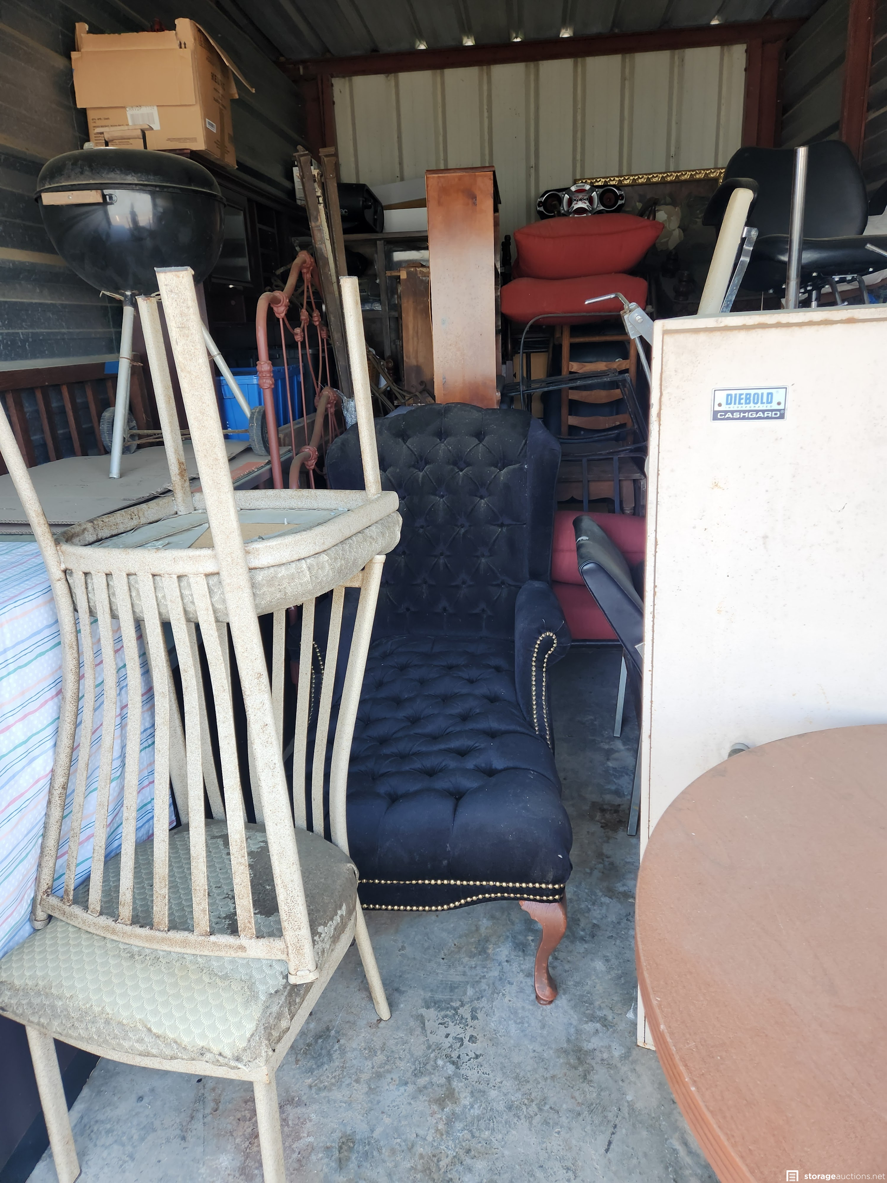 This unit contains household items. A safe,not opened, lots of misc. Items.