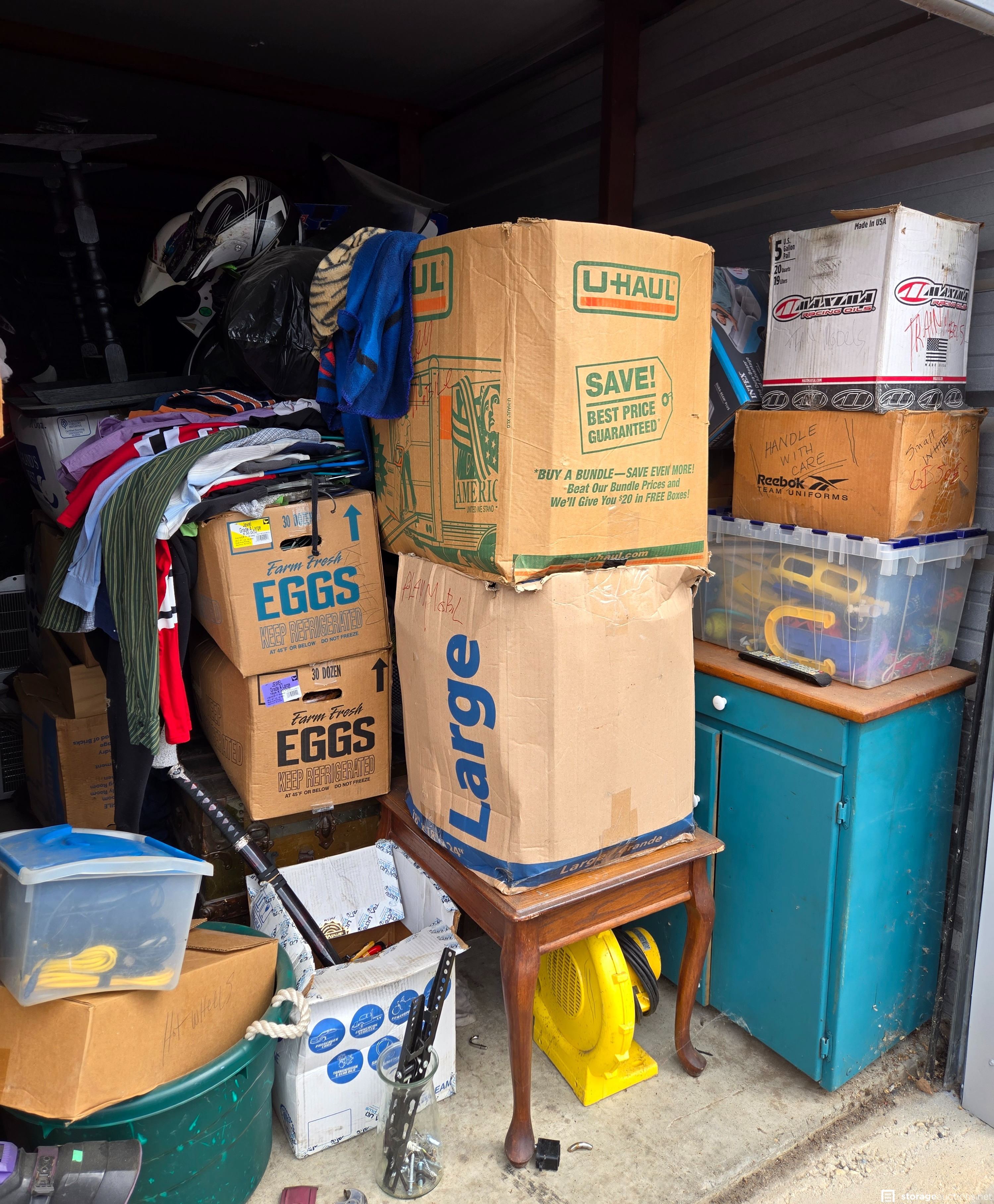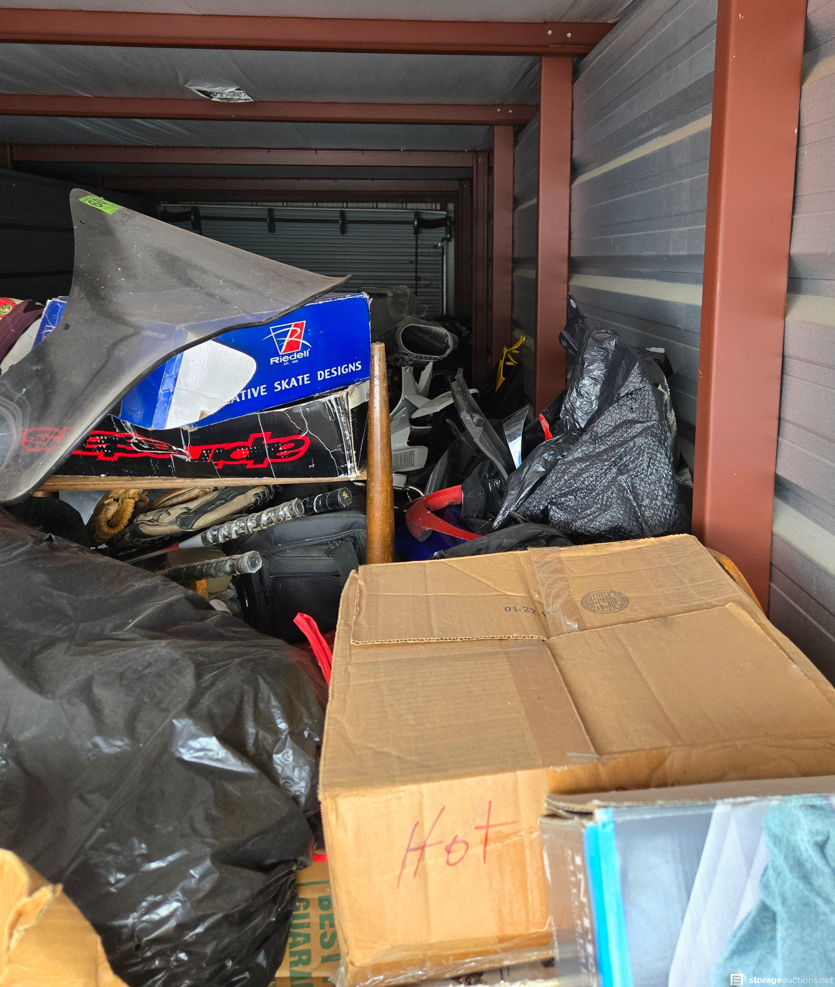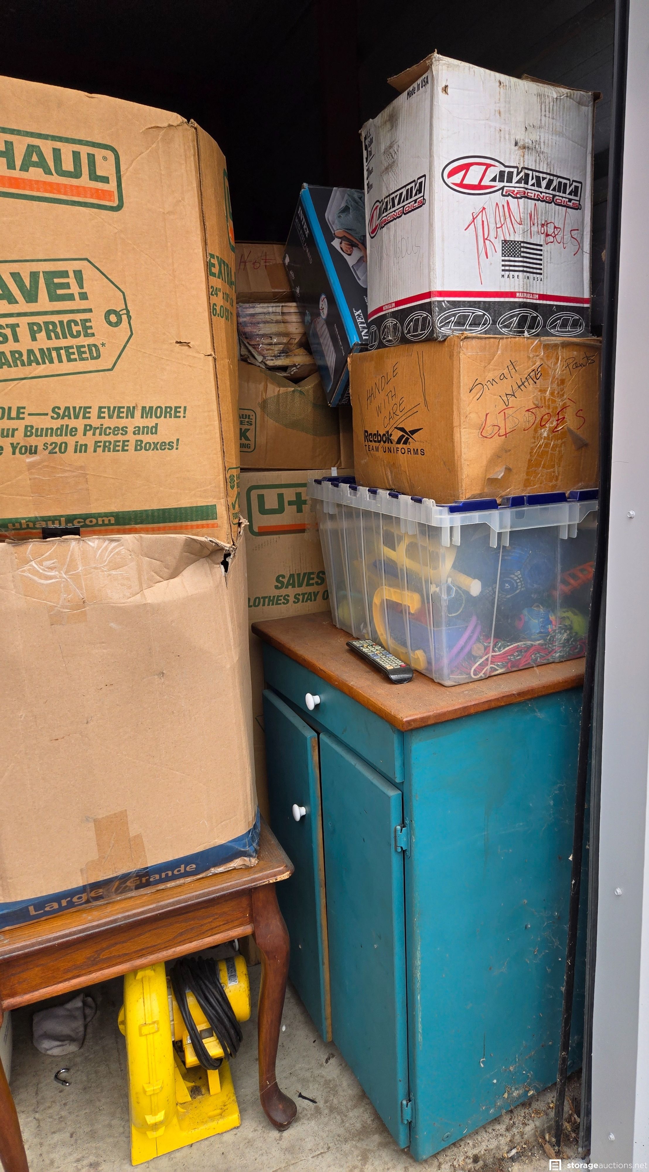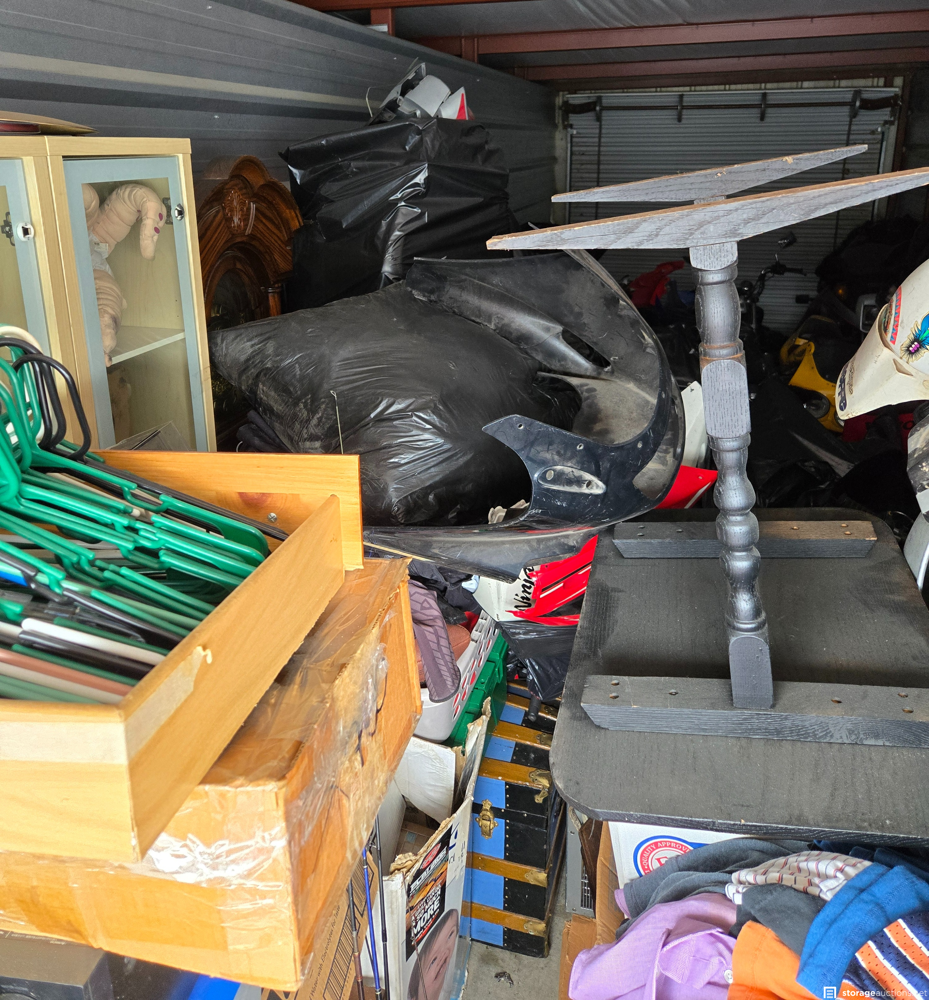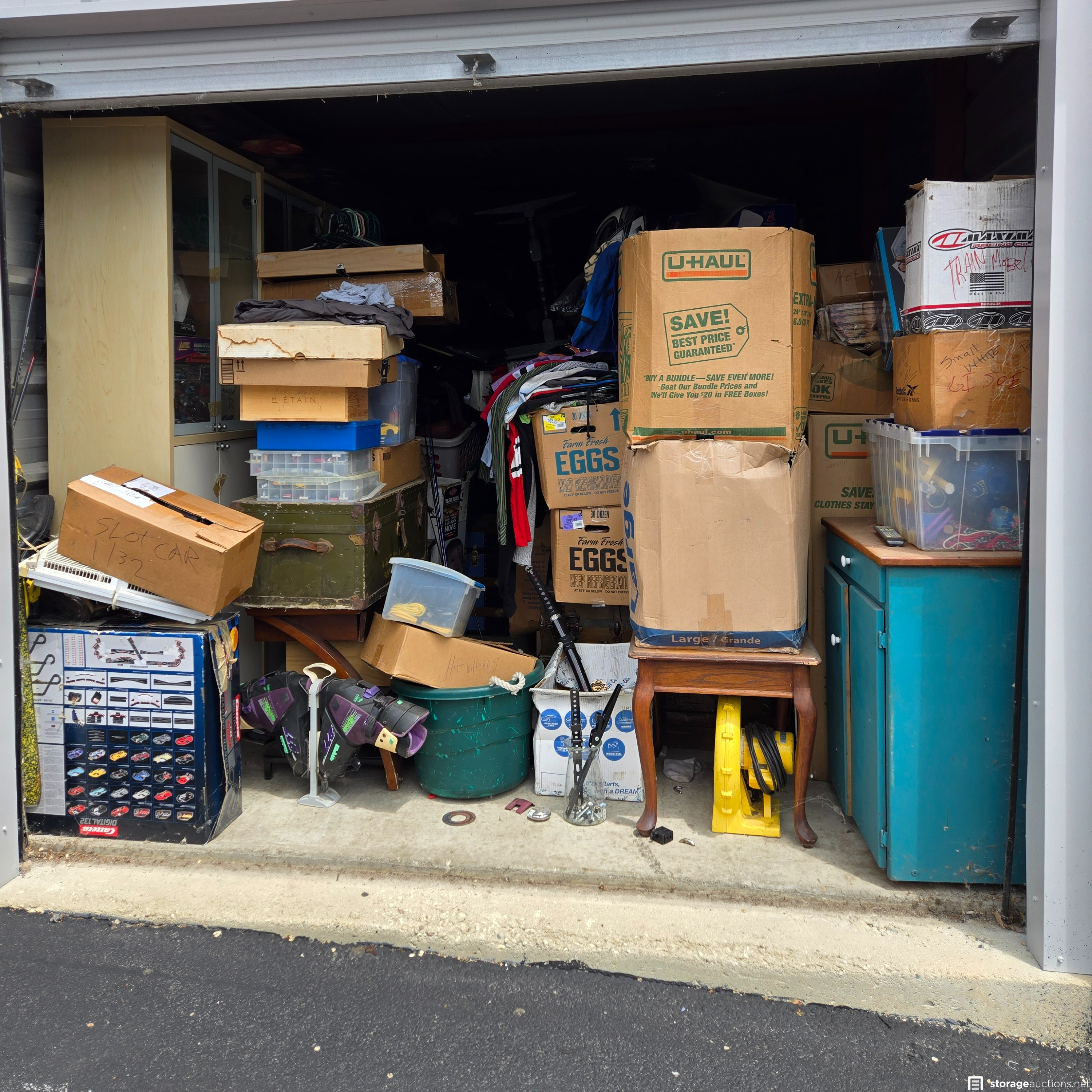 Additional Terms: VEHICLES NOT INCLUDED IN SALE!!!!!! 1. We reserve the right to refuse service to anyone at any time for any reason. Auctions are public, but do not guarantee that all the members of the public can participate. 2. TERMS: CASH ONLY on award of bid. All units must be paid for immediately no later than 5:00 pm on the day that Auction Bid is accepted. Winning bidder must appear in person with valid ID to pay and arrange for the clearance of the unit contents. 3. At discretion of Auctioneer, a minimum $200.00 refundable cleaning deposit per unit is required. CASH ONLY. The Storage Facility may charge a higher deposit on extra-large units. Do not use the facility's dumpsters for trash. All items must be removed from the premises within 72 hours from winning bid. 4. Bidder agrees, understands and abides by all rules and regulations posted by the facility. The Bidder shall have access to the facility and the unit only during posted office hours 9am to 6pm Monday through Saturday. 5. All units are sold AS IS, WHERE IS. Storageauctions.net, Facility Owner, Manager, or Agent makes no guarantees as to the contents of units. Box buyers: beware of the possibility that all boxes may be full of trash or empty. If so, they are still yours since unit is sold AS IS. Newspaper legal ad may not agree with the goods in the unit. Do not speculate on what may be in the units. In accordance to Federal laws we are restricted from selling Alcohol, Tobacco, Firearms, Explosives and Controlled Substances. You are required to surrender these items to the Storage Co. and they will be surrendered to the proper authorities. 6. All sales are final. No refunds, exchanges, or credits of any kind will be made. 7. All personal papers (birth certificates, tax records, pictures, yearbooks, checking account information, etc.) found in storage unit should be returned to the storage company. If any of these terms are unacceptable or offensive to you, do not participate in the sale. 8. Bidder shall be responsible for anyone who is acting on behalf of bidder in any capacity and shall indemnify the storage facility, its Owner, Managers, and Agents, and Employees, etc. for any action whatsoever that may be born in any manner and hereby waive any claims against the storage facility. This waiver and responsibility shall also include any personal property damage, property damage to the self-storage facility, its representatives, employees, occupants and customers. 9. The storage company is not responsible for losses due to fire, theft, vandalism, mysterious disappearances or any other events. Bidder shall provide insurance for losses incurred before, during and after sale. 10. The storage company reserves the right to bid. 11. Storage Company's liability for undeliverable units is limited to monies collected for purchase of unit(s) and cleaning deposit(s) only. The Storage Company will make all reasonable efforts to deliver unit or units to successful bidders. Bidder does not own these items until they are totally removed from the facility. The facility can claim items at any time without notice until they are totally removed. Any items that have been abandoned after 72 hours will be construed as abandoned property. Storage Company reserves the right to refuse to rent Storage Units to Auction Buyers. Bidder will not be refunded bid price and/or cleaning deposit. 12. The ultimate responsibility of the unit being emptied and cleaned is that of the buyer. The buyer is responsible no matter what arrangements have been made to have the unit emptied. Legal action will be taken against the buyer, for costs and/or time involved in cleaning any debris left behind. The bidder hereby agrees that the terms and conditions above as part of the Auction Terms & Conditions.