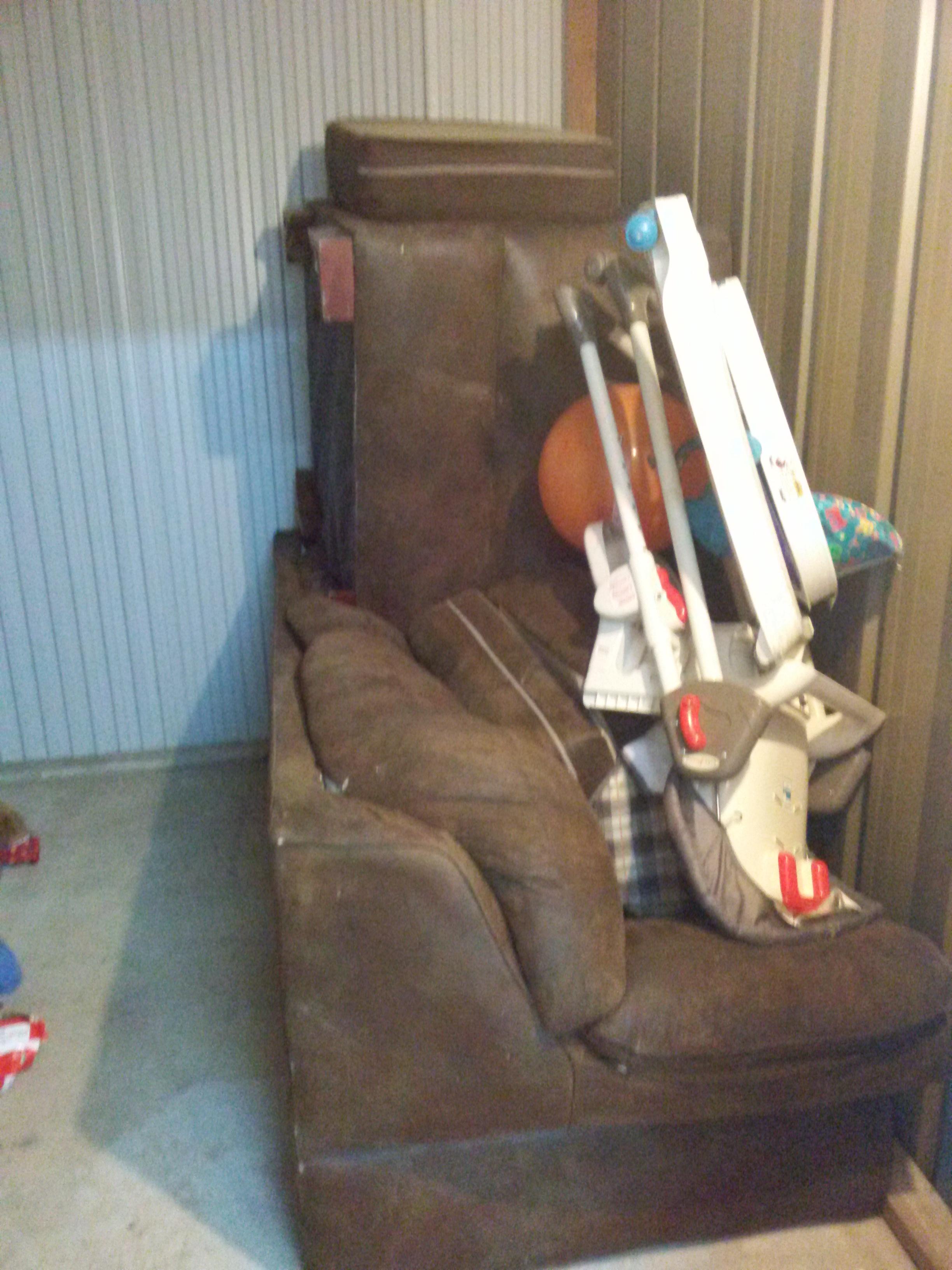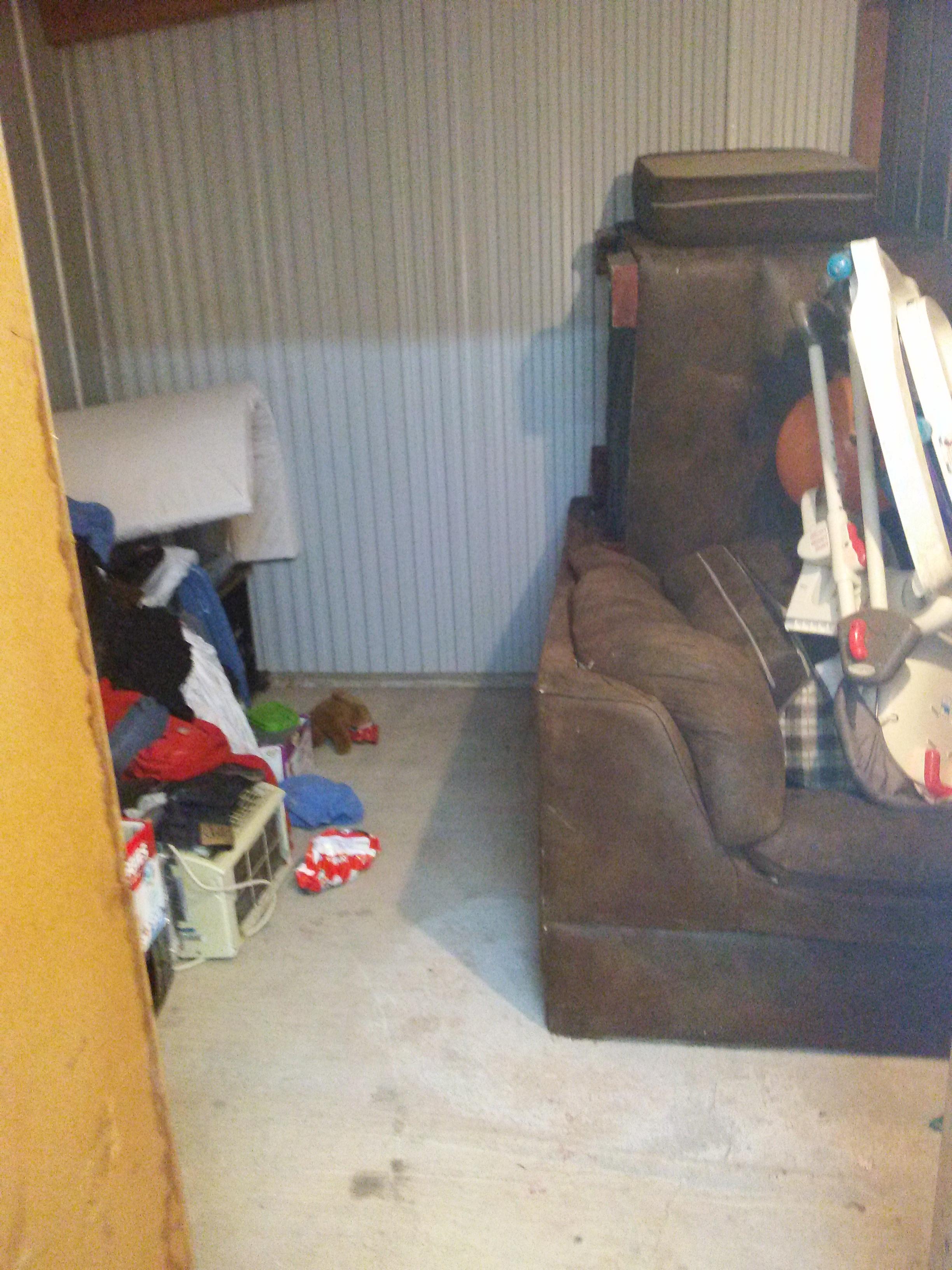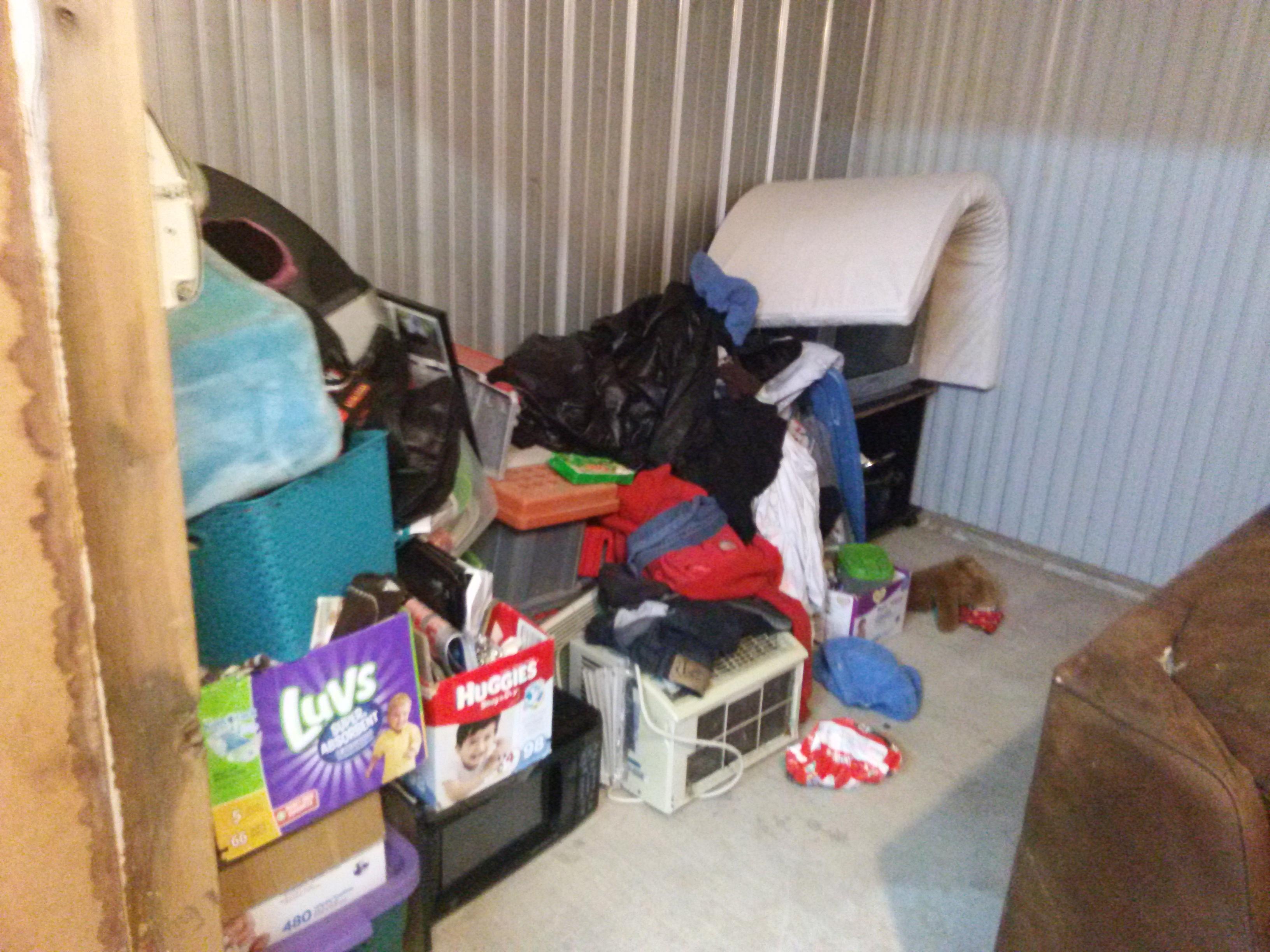 This unit appears to contain boxes, baby items couch and other household items.