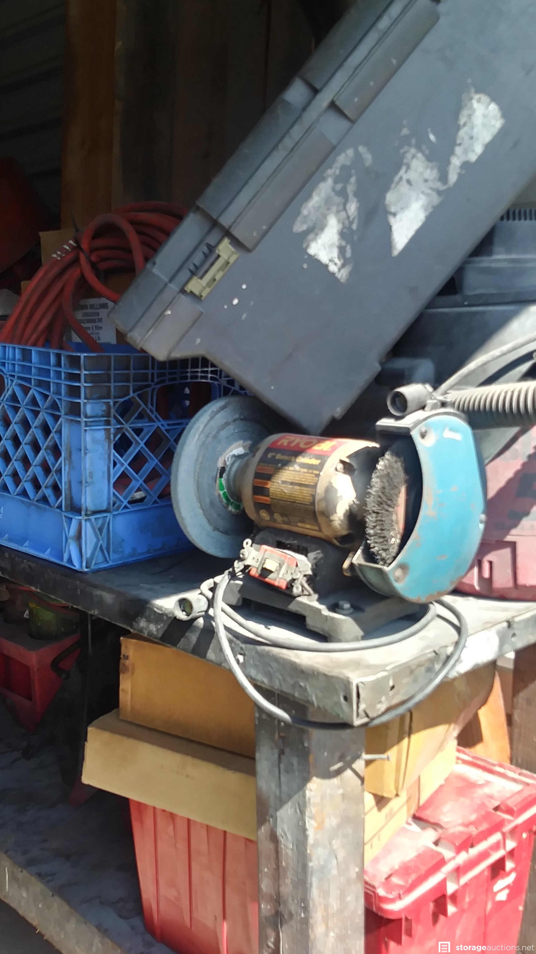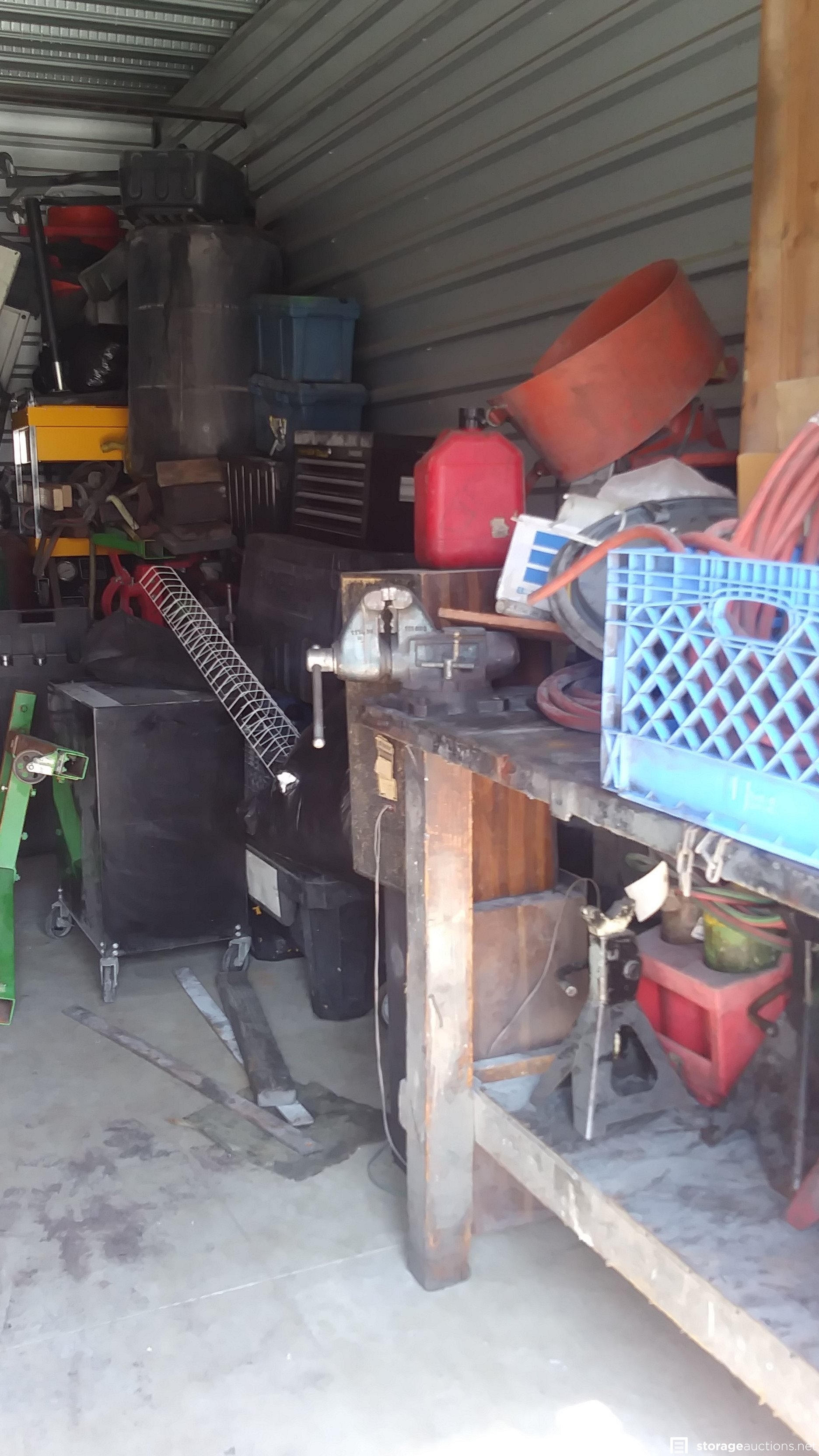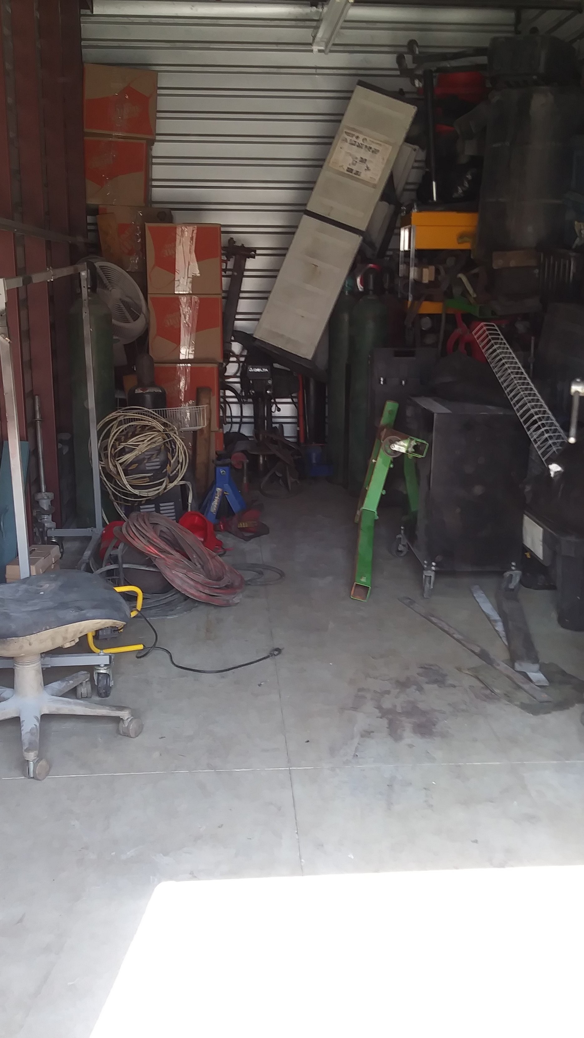 unit appears to contain: tools, boxes, tool cabinets, totes, tool chest, tool cart, speakers, welding supplies