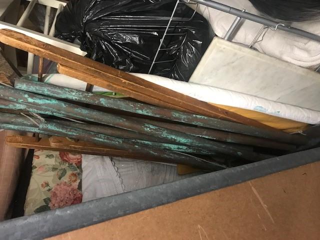 Mattress, Vacuum, Chairs, Bags, Stool, Wood Furniture, Wire headboard, Dresser, Dog Carrier, Large Wind chime, Bed Frame.