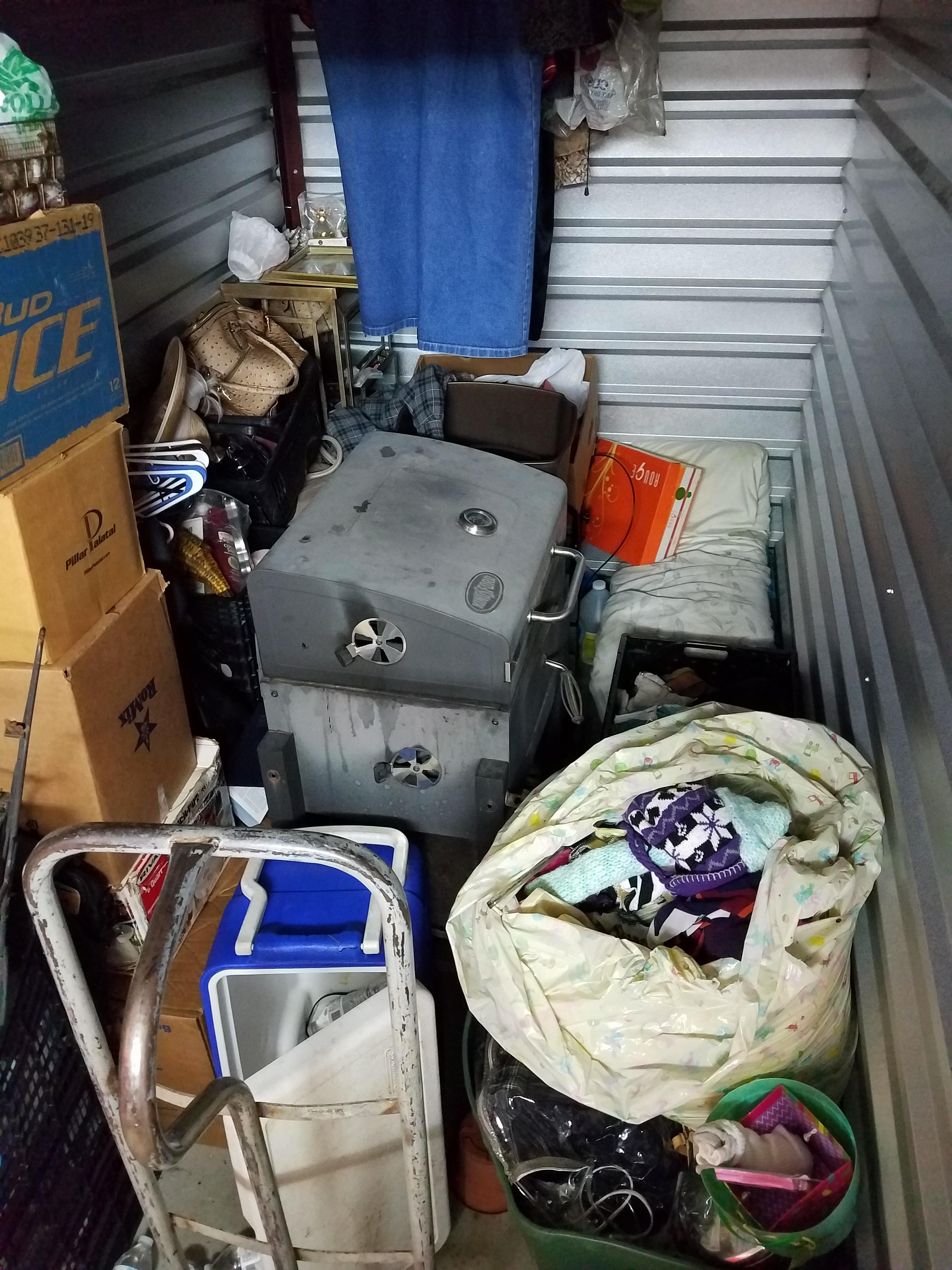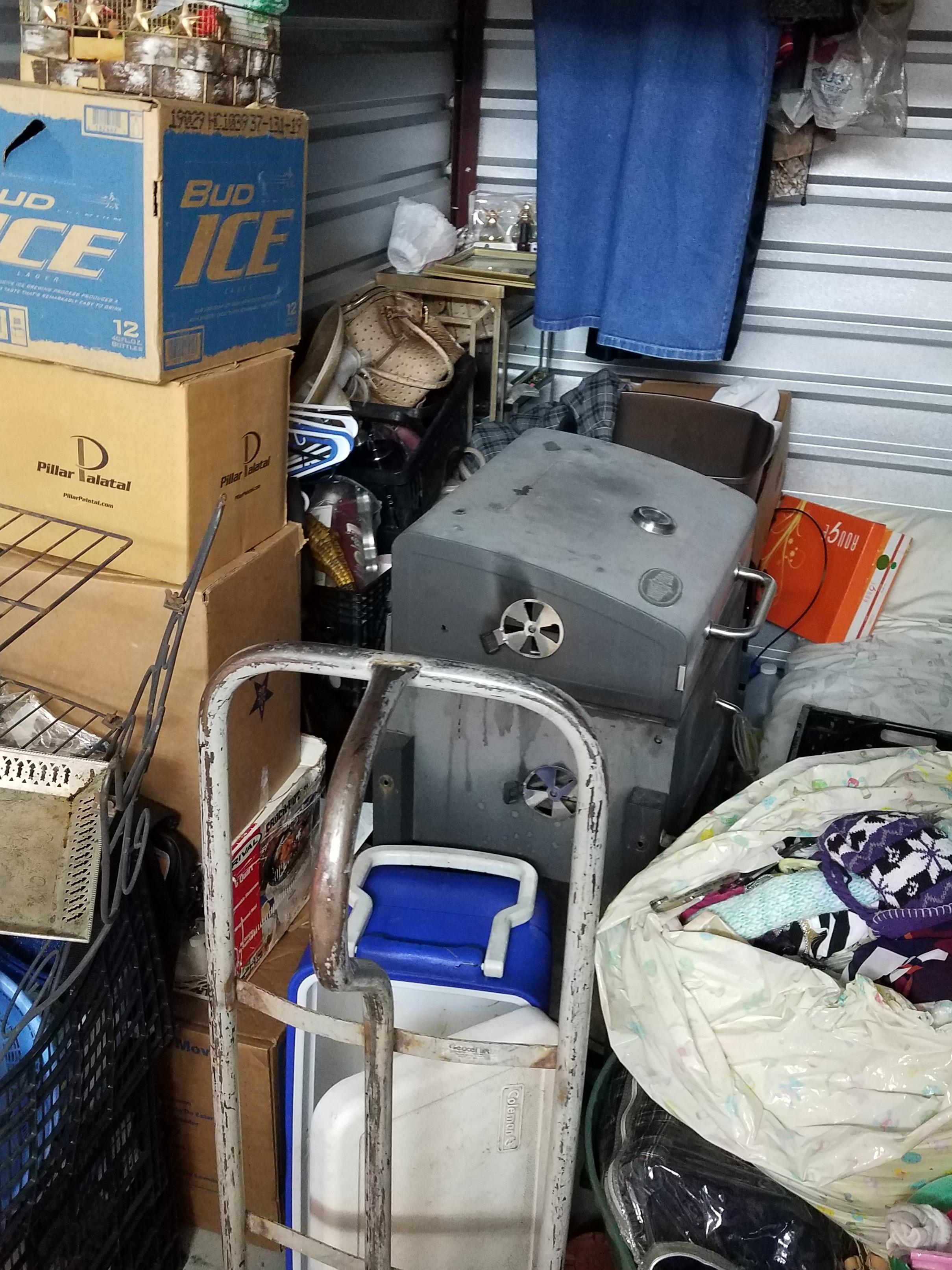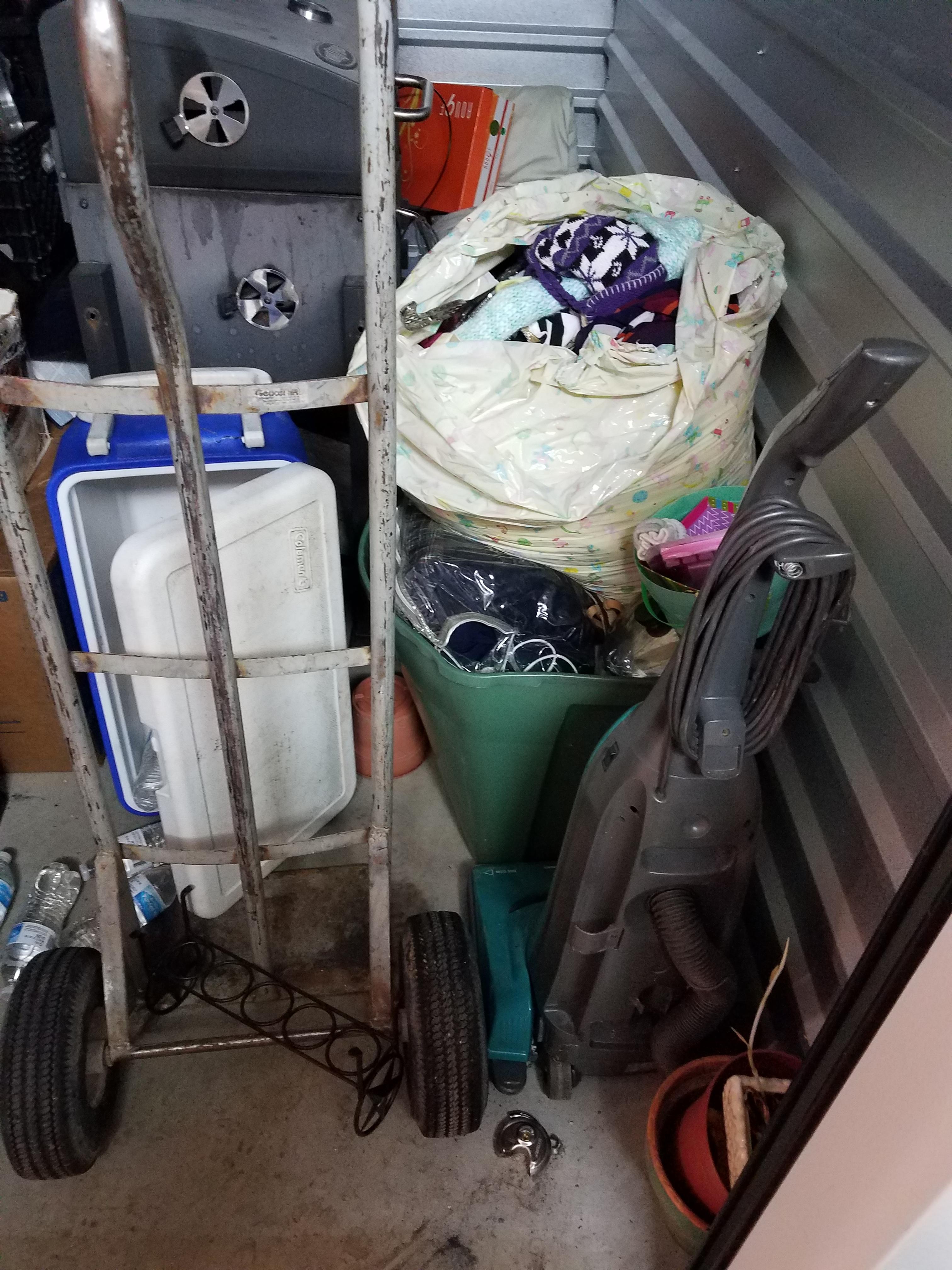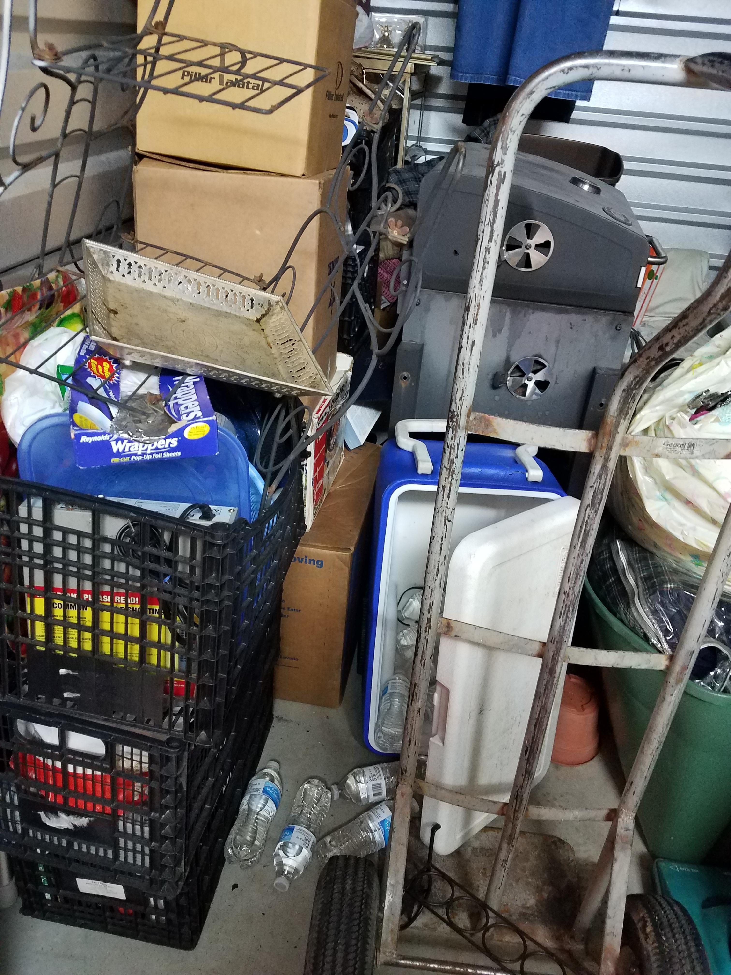 Dolly, Vac, Smoker, Cooler, Clothes, Boxes, House goods.