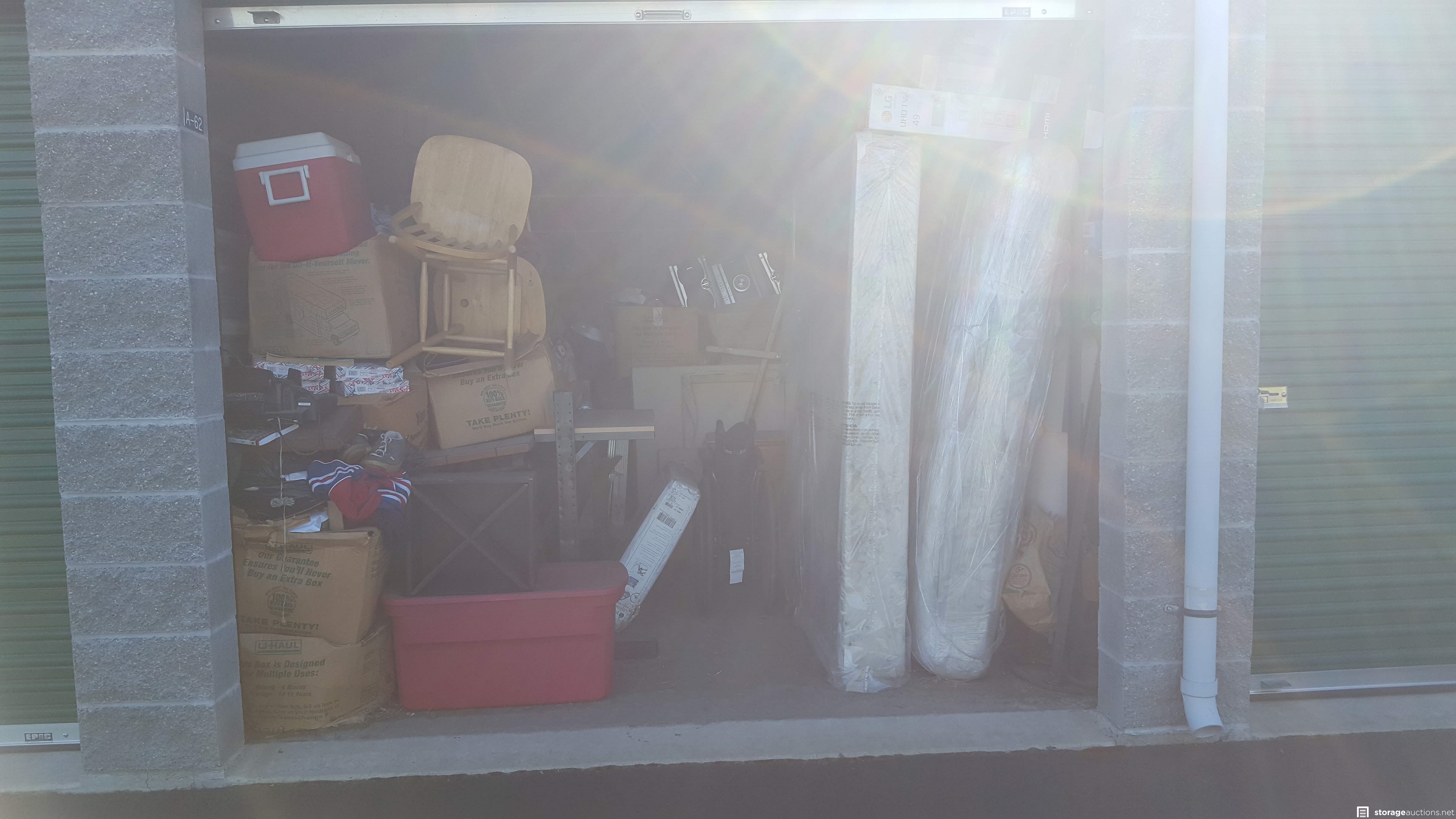 Additional Terms: **Tenants bidding on their own unit do not alleviate their debt obligation and will still owe the full balance due on the unit.** 1. Auction units must be paid in Cash Only at the facility where the unit is located. 2. Cleaning Deposit paid in Cash and only returned after approved inspection of unit. 3. Auction Buyer needs to fill out facility buyer's agreement. 4. Auction buyer must show ID or have letter stating buyer's representative name and they must show ID to gain access to unit. 5. Auction Buyers must contact the storage facility office where the unit is located within 72 hours after the auction ends. 6. Buyer must clean unit out during office hours only. No gate access code will be given out. * Contact facility immediately when auction ends, to make arrangements to pay for and pick up the unit. * You must have a Paid Invoice in order to pick up unit. * If you have an Unpaid Invoice, please update your credit card in your account and click *Pay Now* to generate a Paid Invoice. * Do not park in customer parking; facility manager will let you know where to park. * You must be 18 years old to bid. *** You must provide a valid photo I.D. to the Site Manager. *** You must bring your own lock to secure the unit. *** You will not be allowed to enter the storage unit or touch any items prior to bidding. *** Sales are final and bids are for the entire unit. *** The Auctioneer has final say on all issues, including whether to refuse a bid if a bidder has disrupted an auction or violated any rules. *** Immediate cash payment is required when you purchase a unit. *** Sales tax may apply. If you have a resale license, bring a copy and present before payment. *** You have 72 hours to remove the contents entirely and ***broom sweep*** the unit. *** A $50 refundable cleaning deposit is also charged on every unit you buy. *** You must remove all of the contents and trash from the unit and facility grounds. *** You are not allowed to use the dumpsters on the facility property. *** Please advise the manager once you have completely emptied the unit. The manager will inspect that the unit is clean and then refund your cleaning deposit. *** If you would like to rent the unit after the auction, the manager can assist you. *** Smoking is prohibited on storage facility properties. *** No Pets allowed at facility *** Respect the Property, Managers, Tenants and other Buyers at all times. *** PERSONAL ITEMS FOUND WITHIN THE UNIT SHOULD BE RETURNED TO THE SITE MANAGER IMMEDIATELY. Thank you!