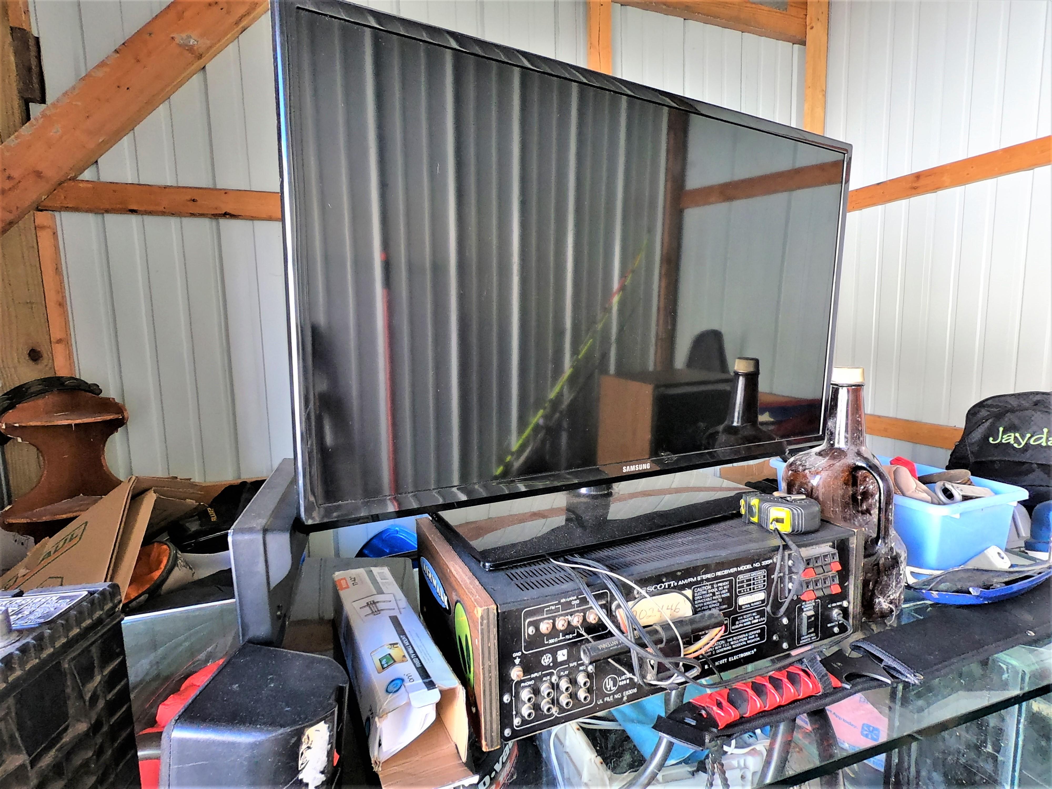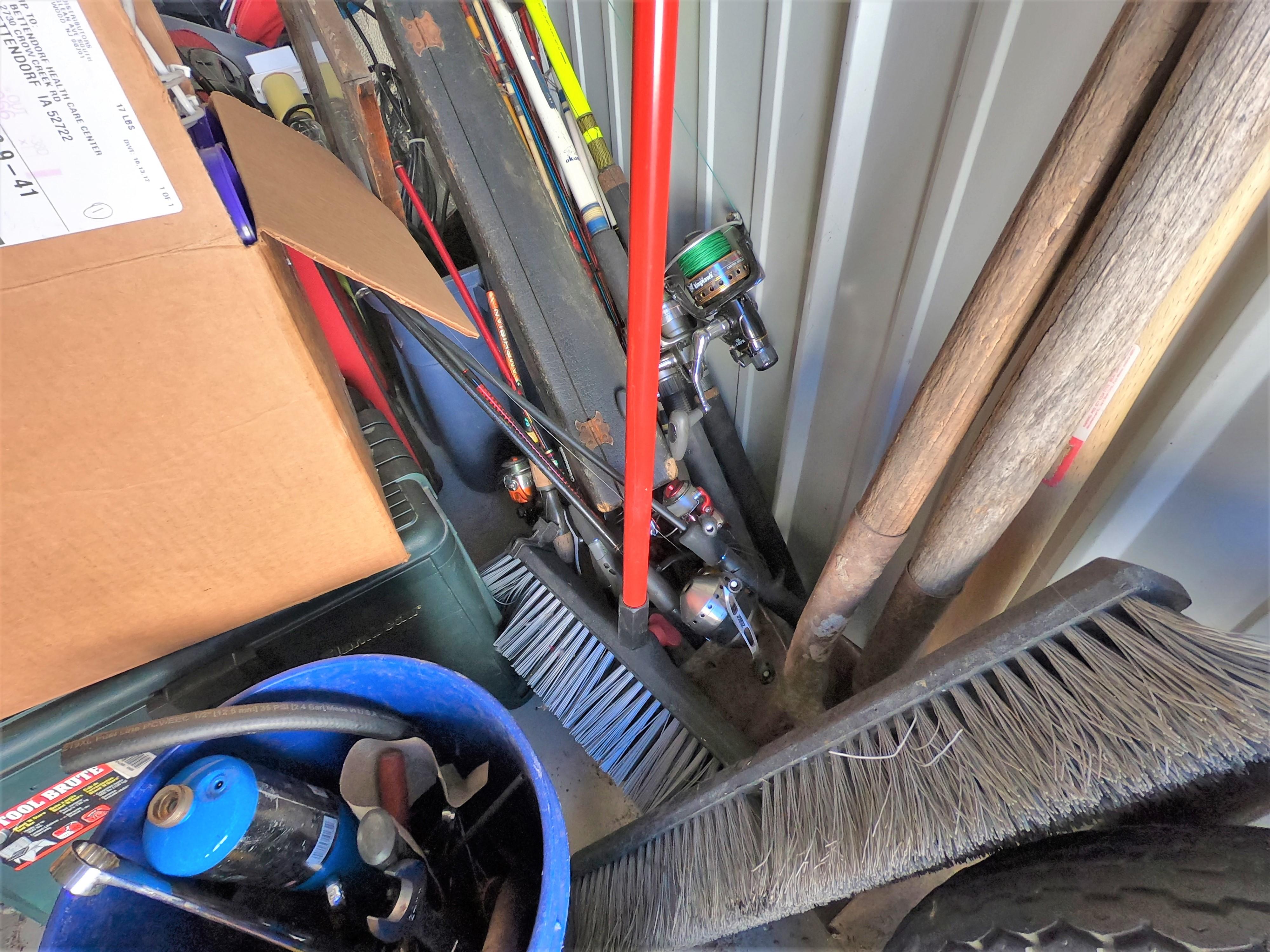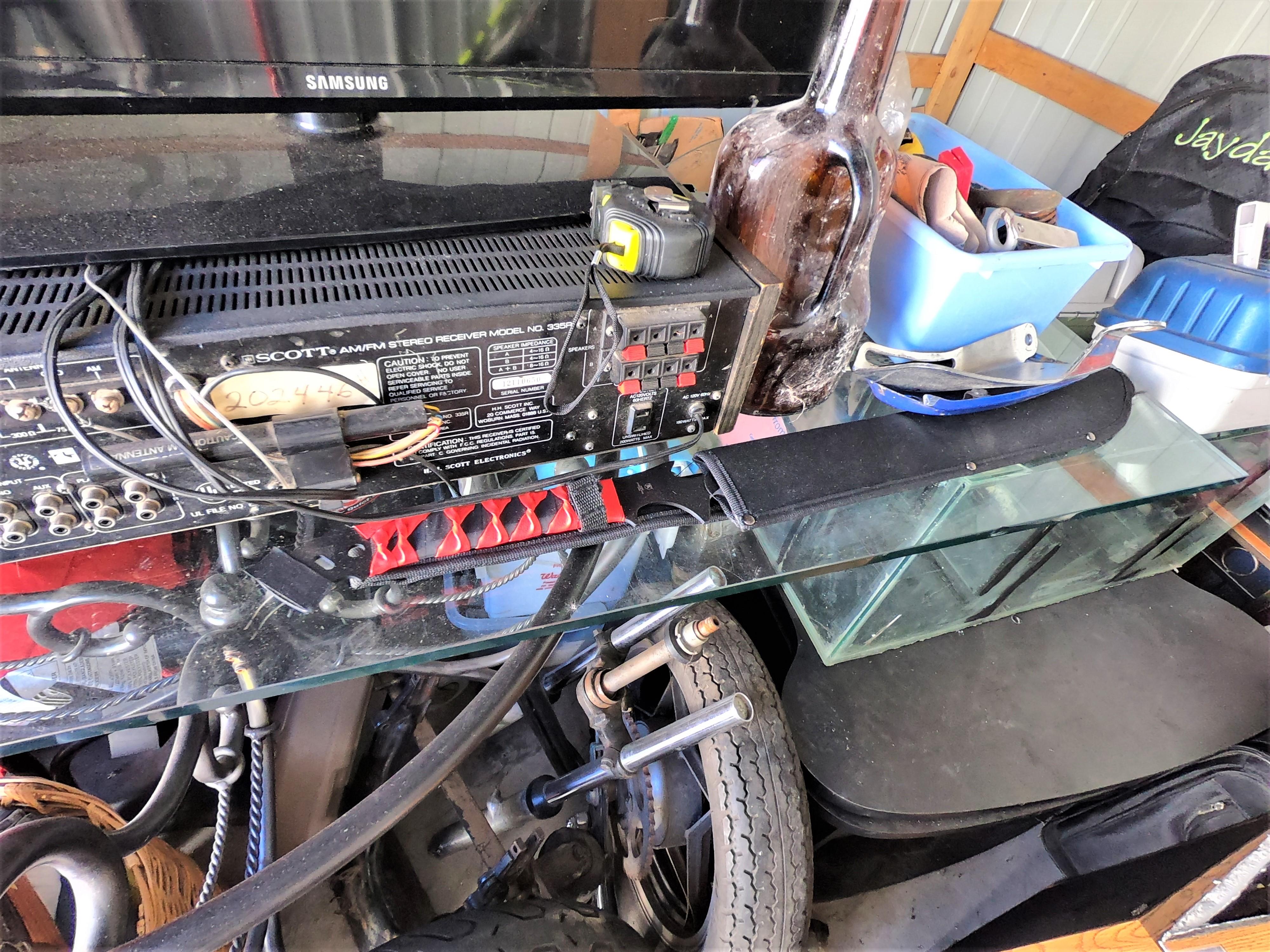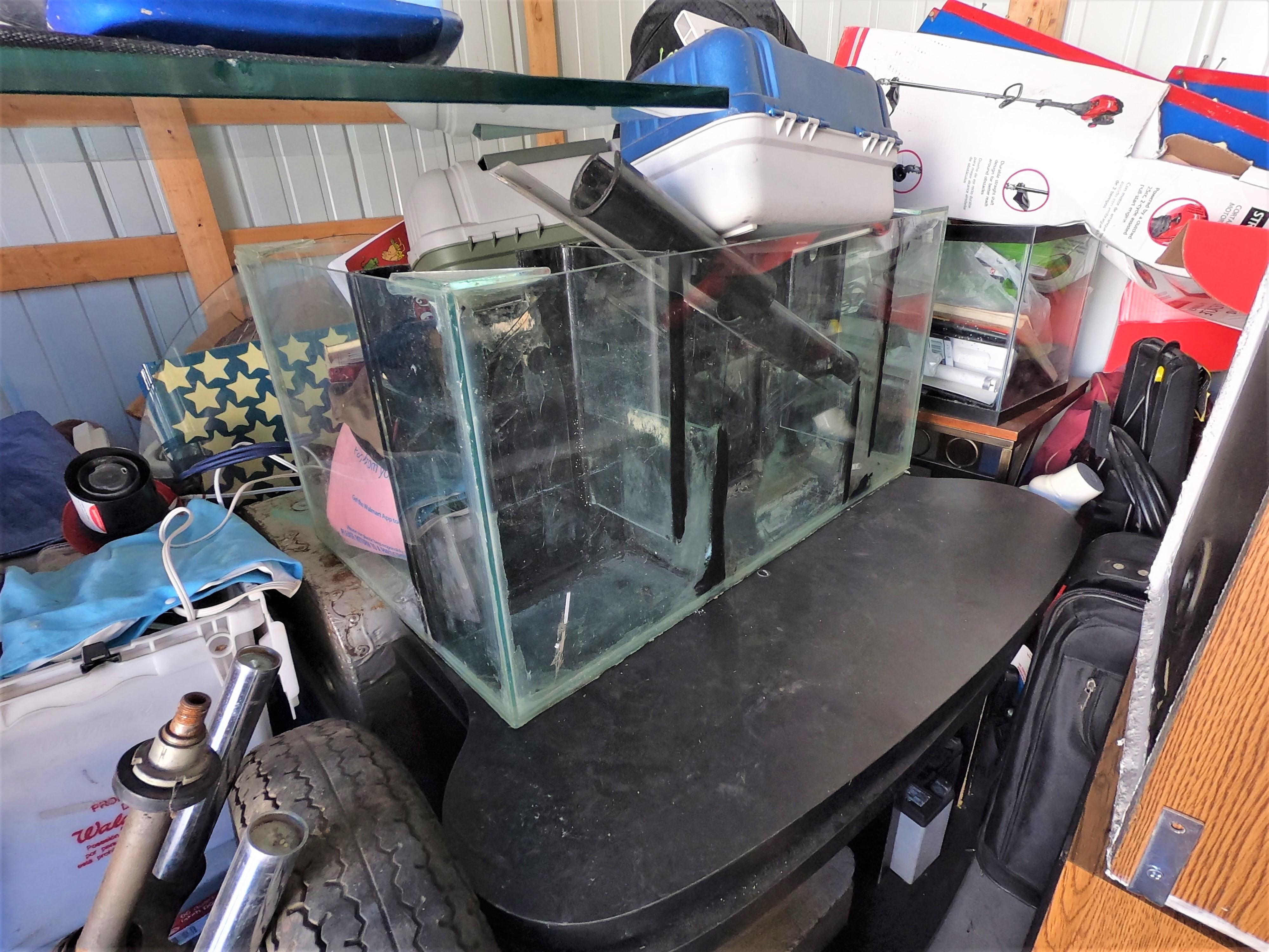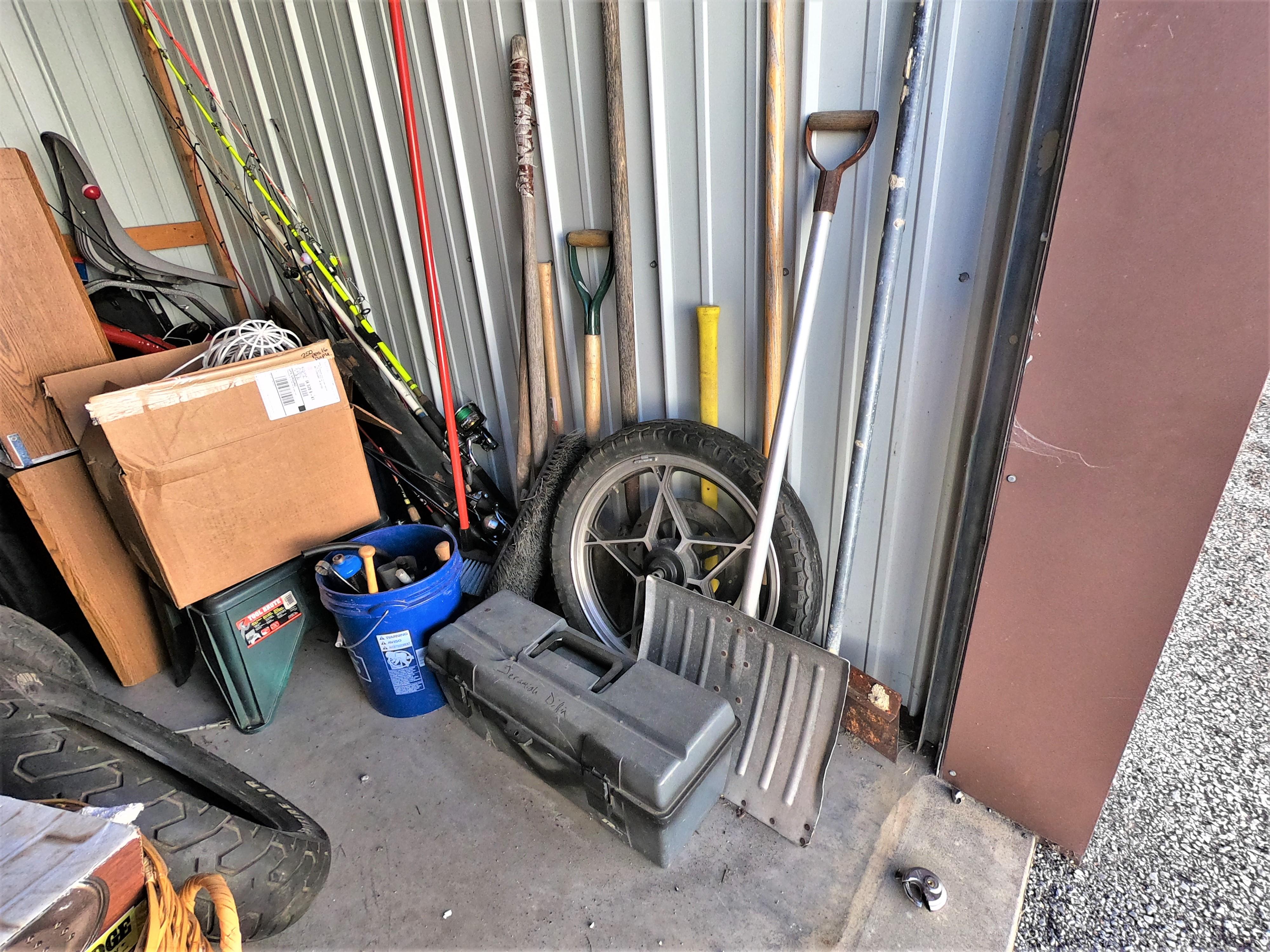 motorcycle parts, flat screen TV, aquariums, shop vac, tools, fishing poles