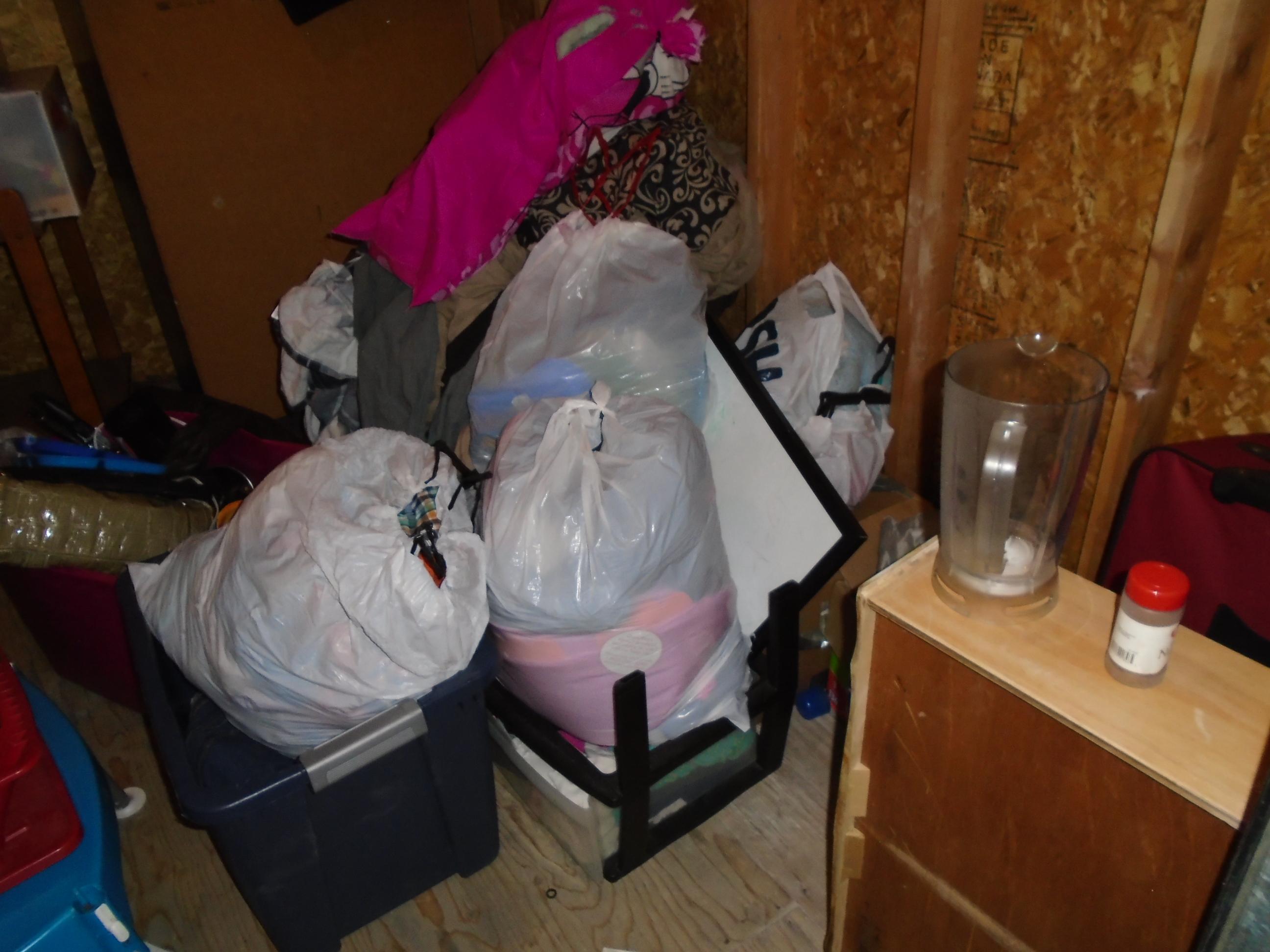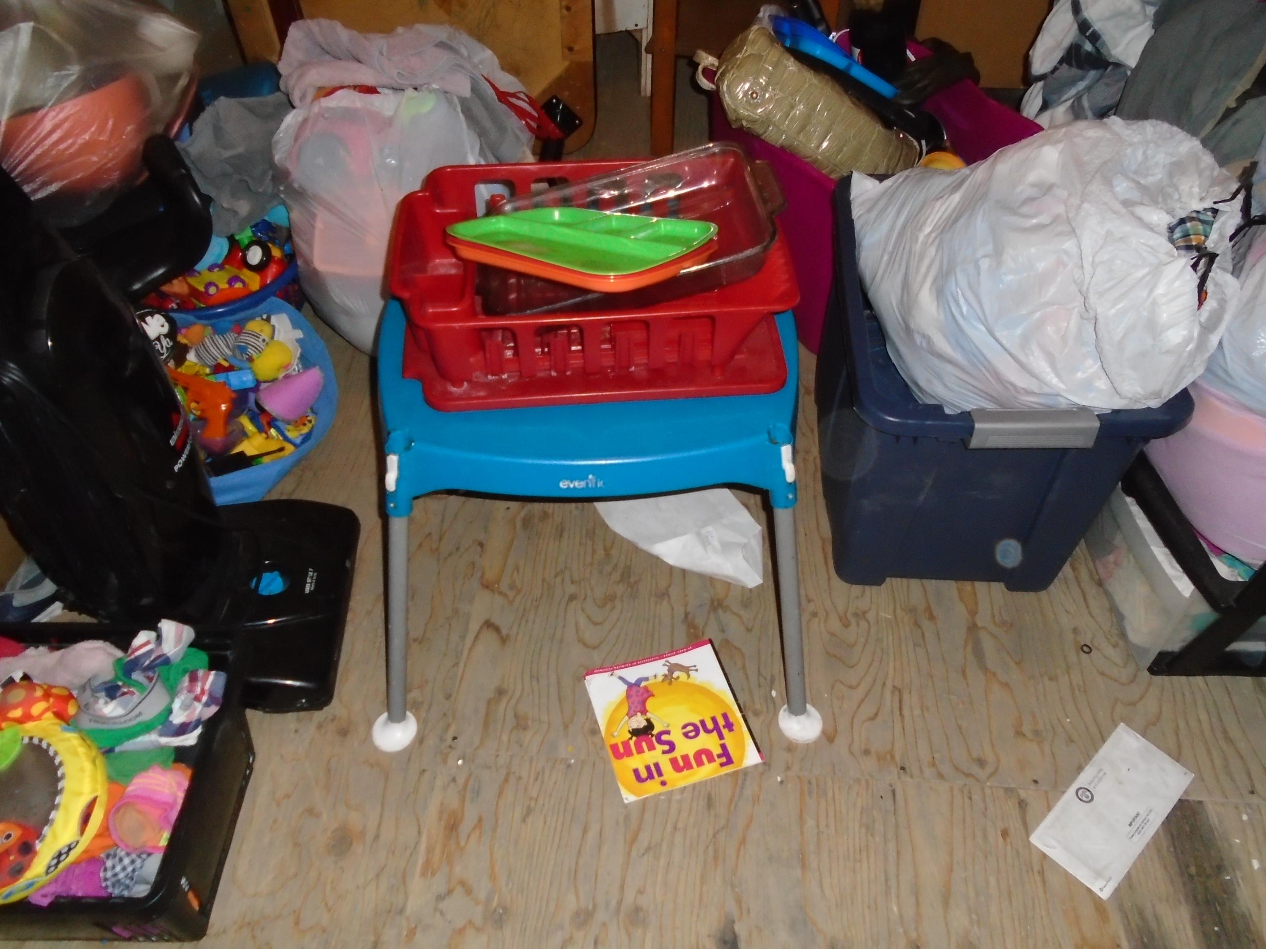 UNIT APPEARS TO CONTAIN: Small Table, Vacuum Cleaner, Toys, Possible Dolce & Gabbana bag, Clothes, Dresser