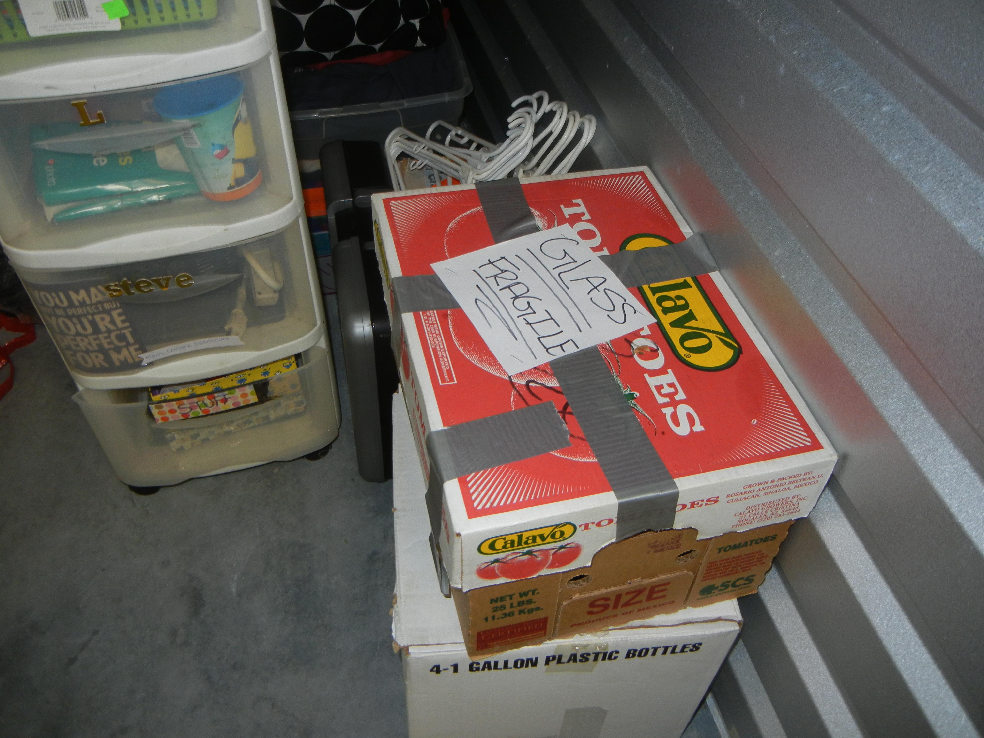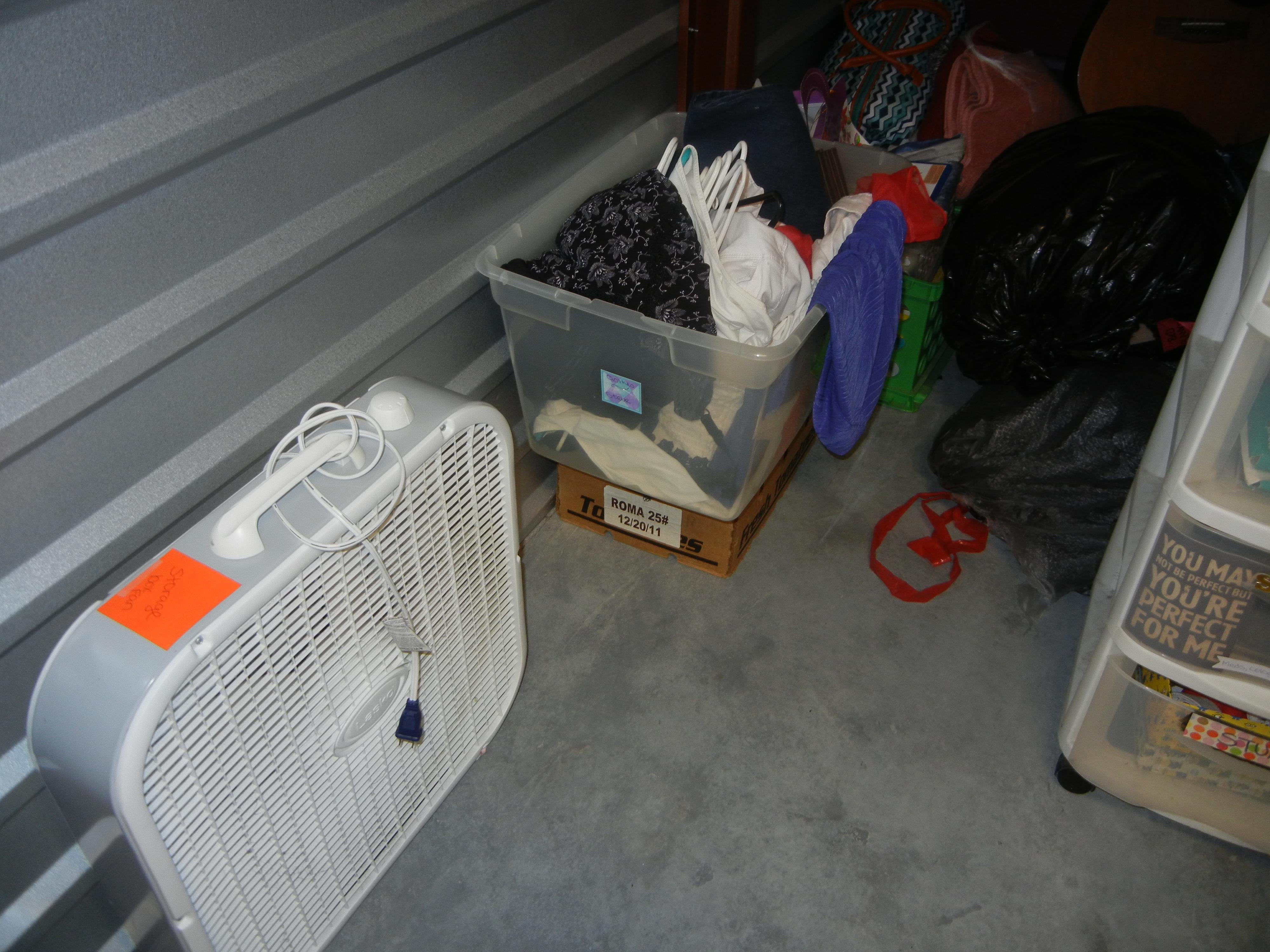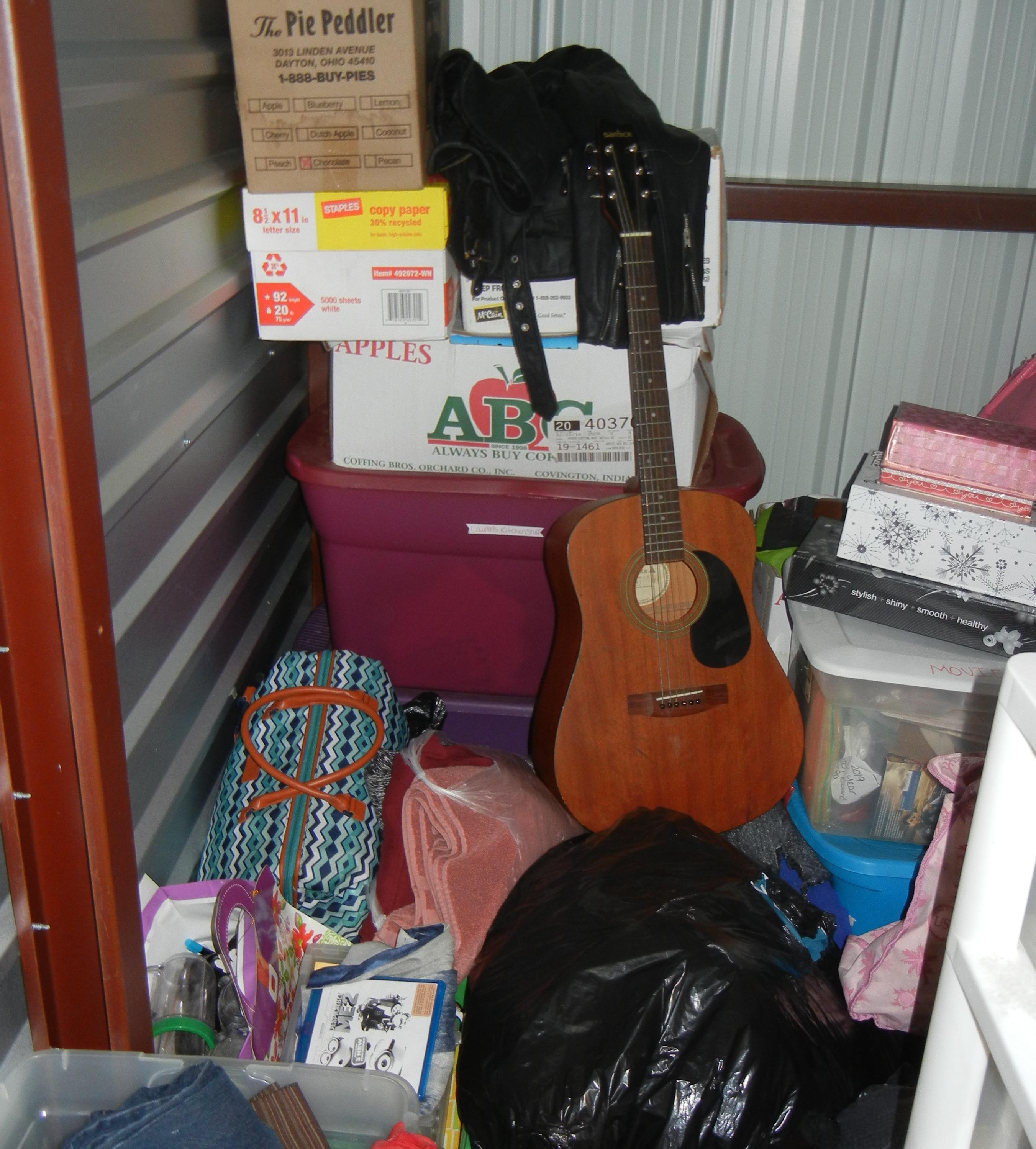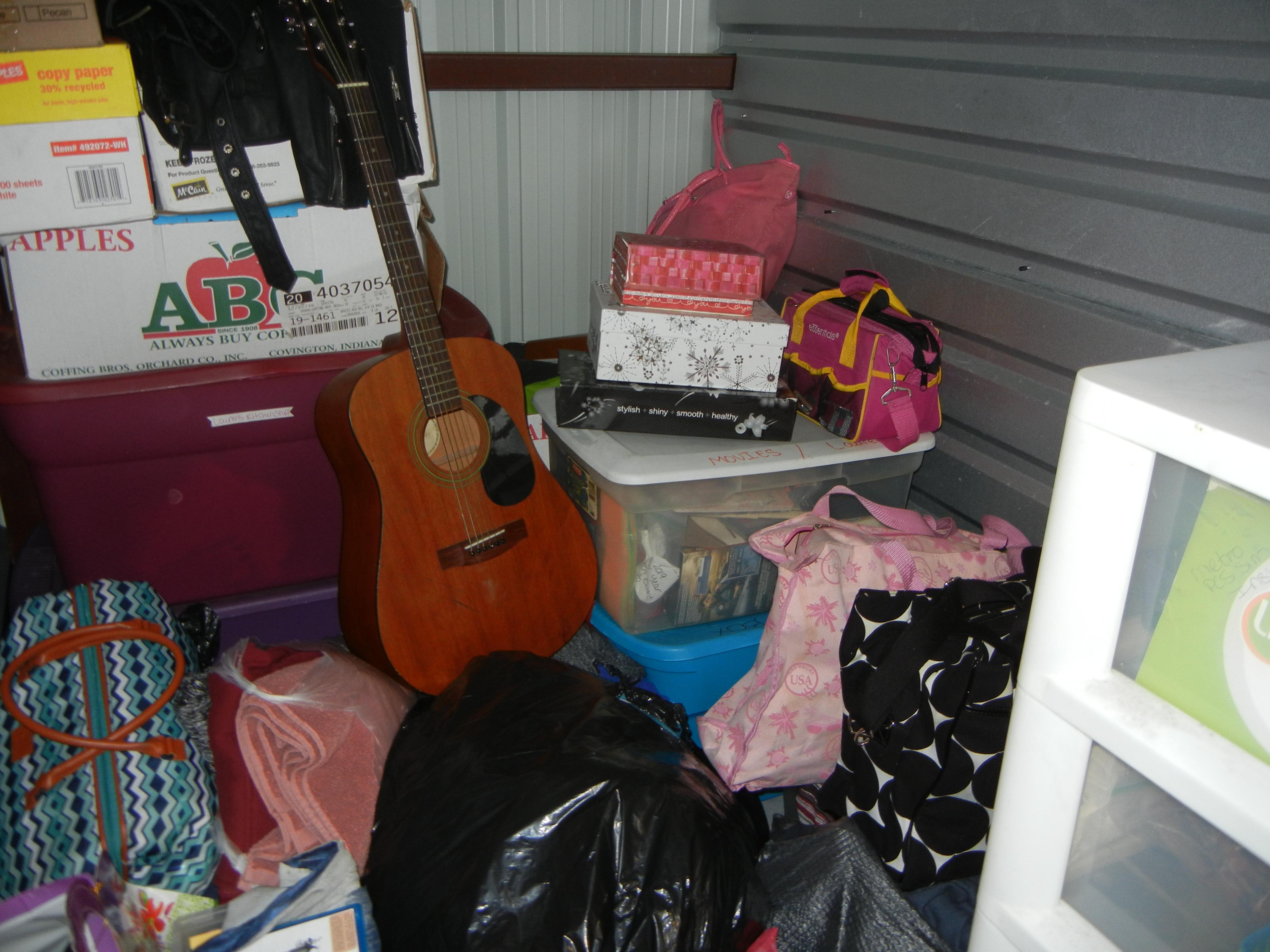 Guitar, Box Fan, Luggage, Clothes, Boxes, Bins