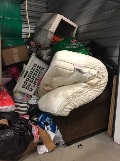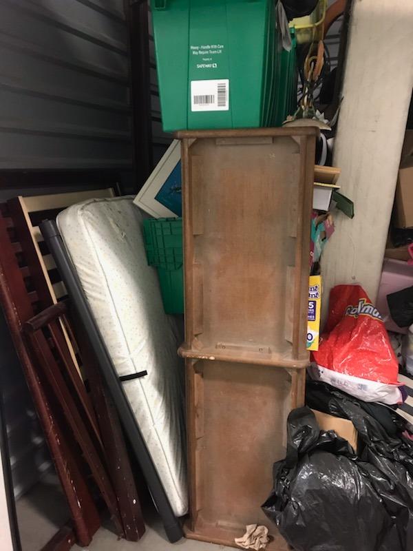 Mattress, bins, couch, baby seat, crib, picture frames, clothes, home decor